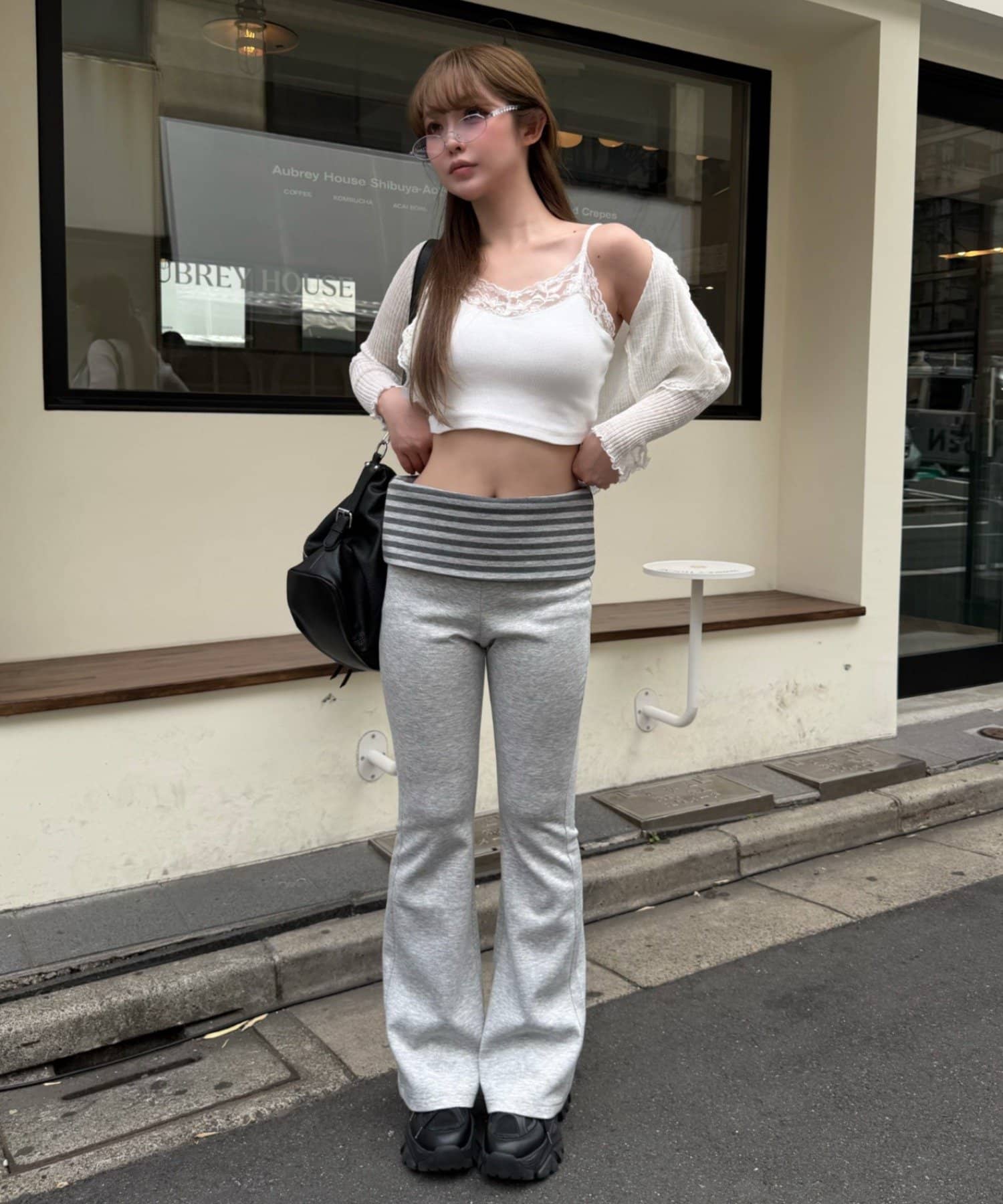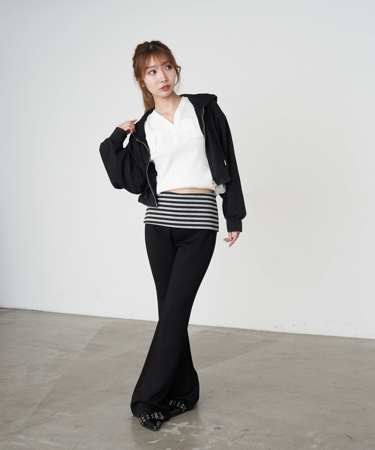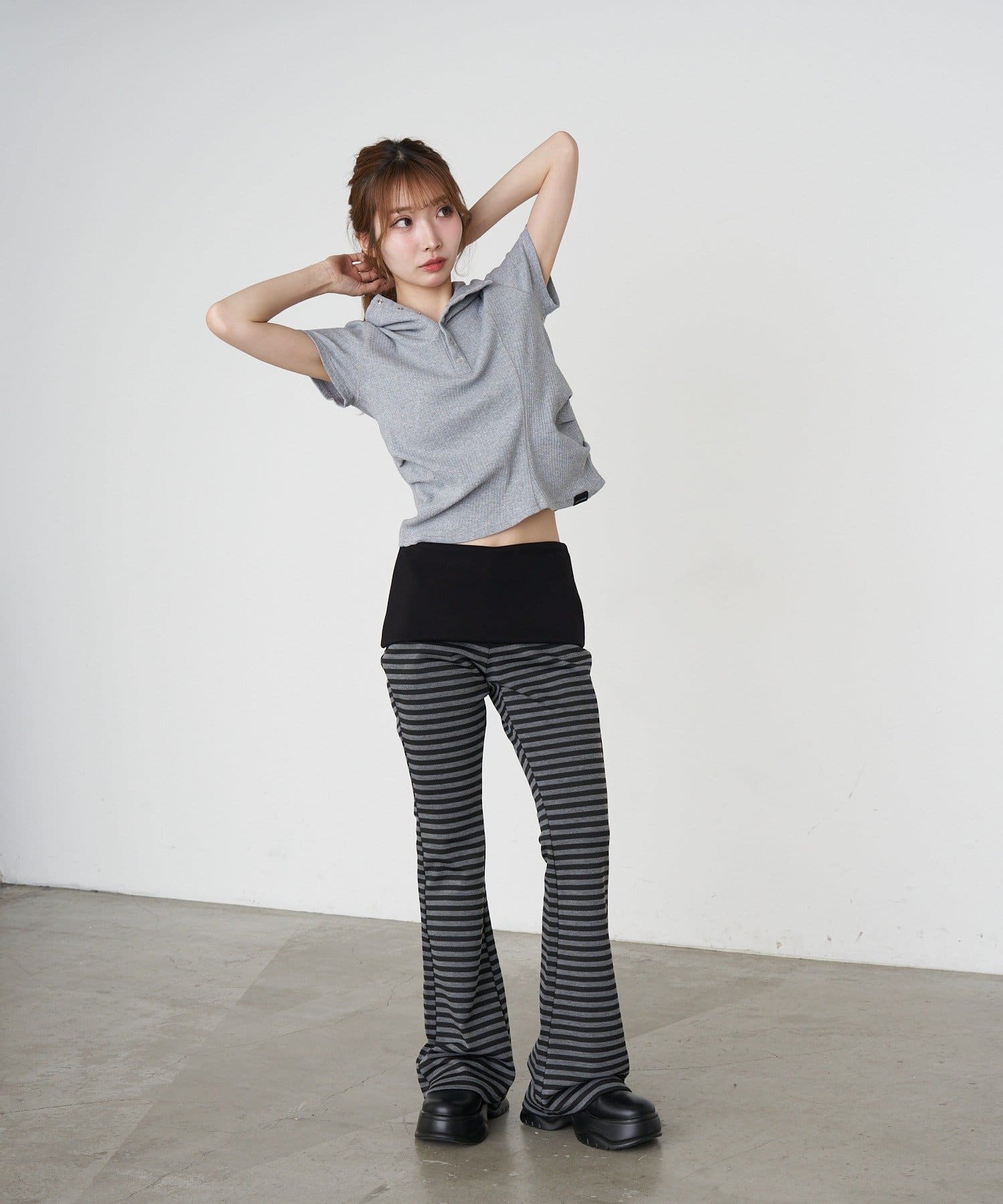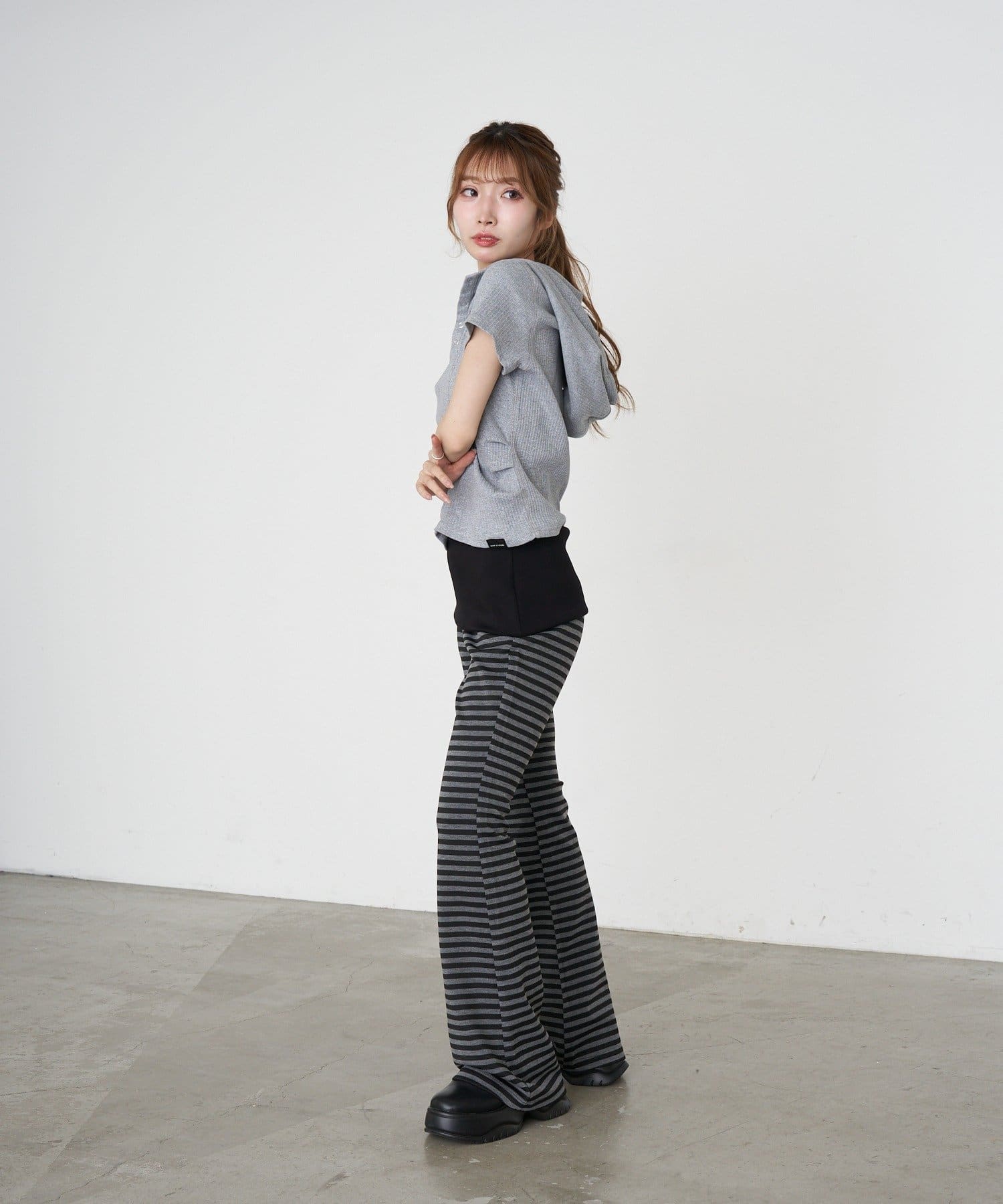 ボーダー / カットパンツ / 韓国ファッション / フレアパンツ