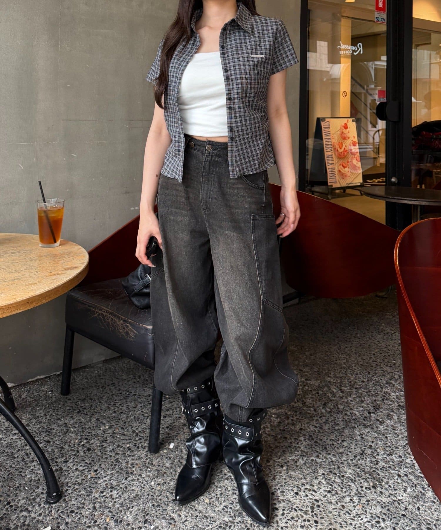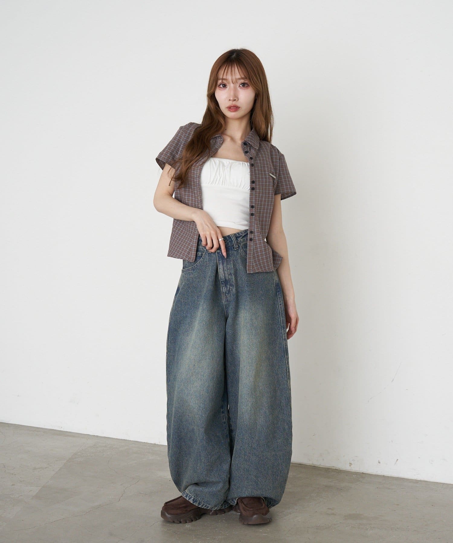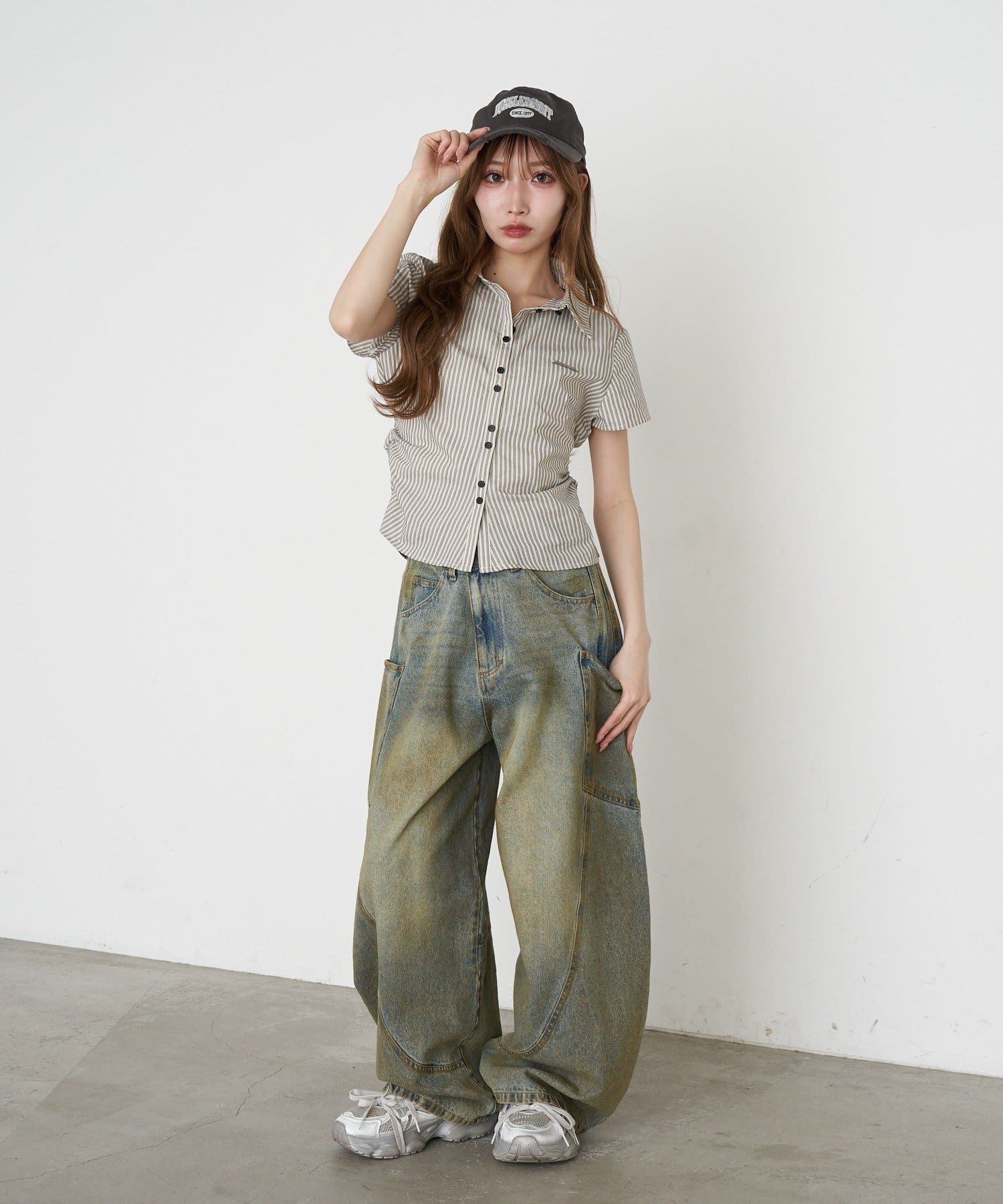 ・ワイドデニムやバレルレッグデニム、スウェットと合わせた海外ガールのようなスタイリング◎