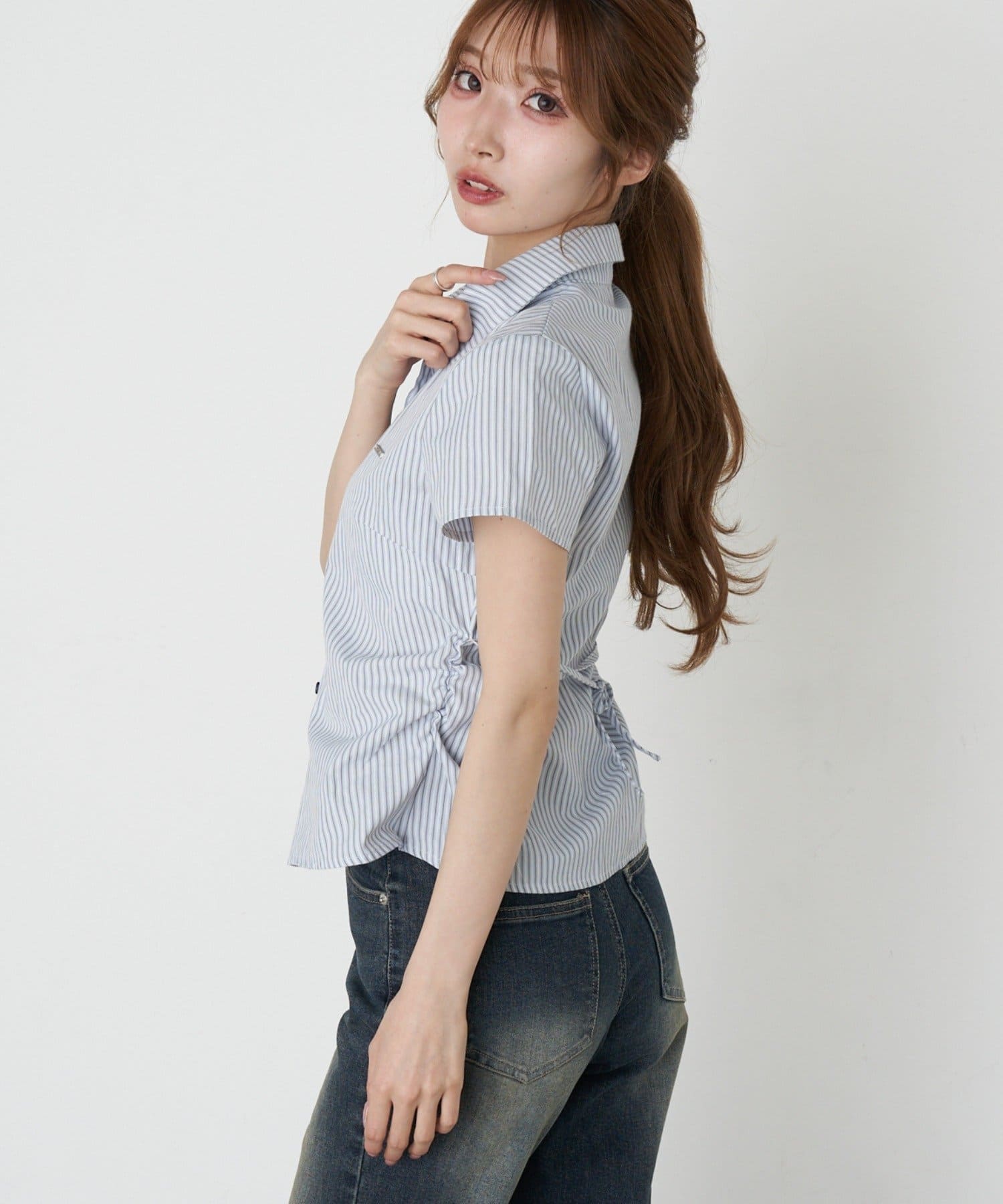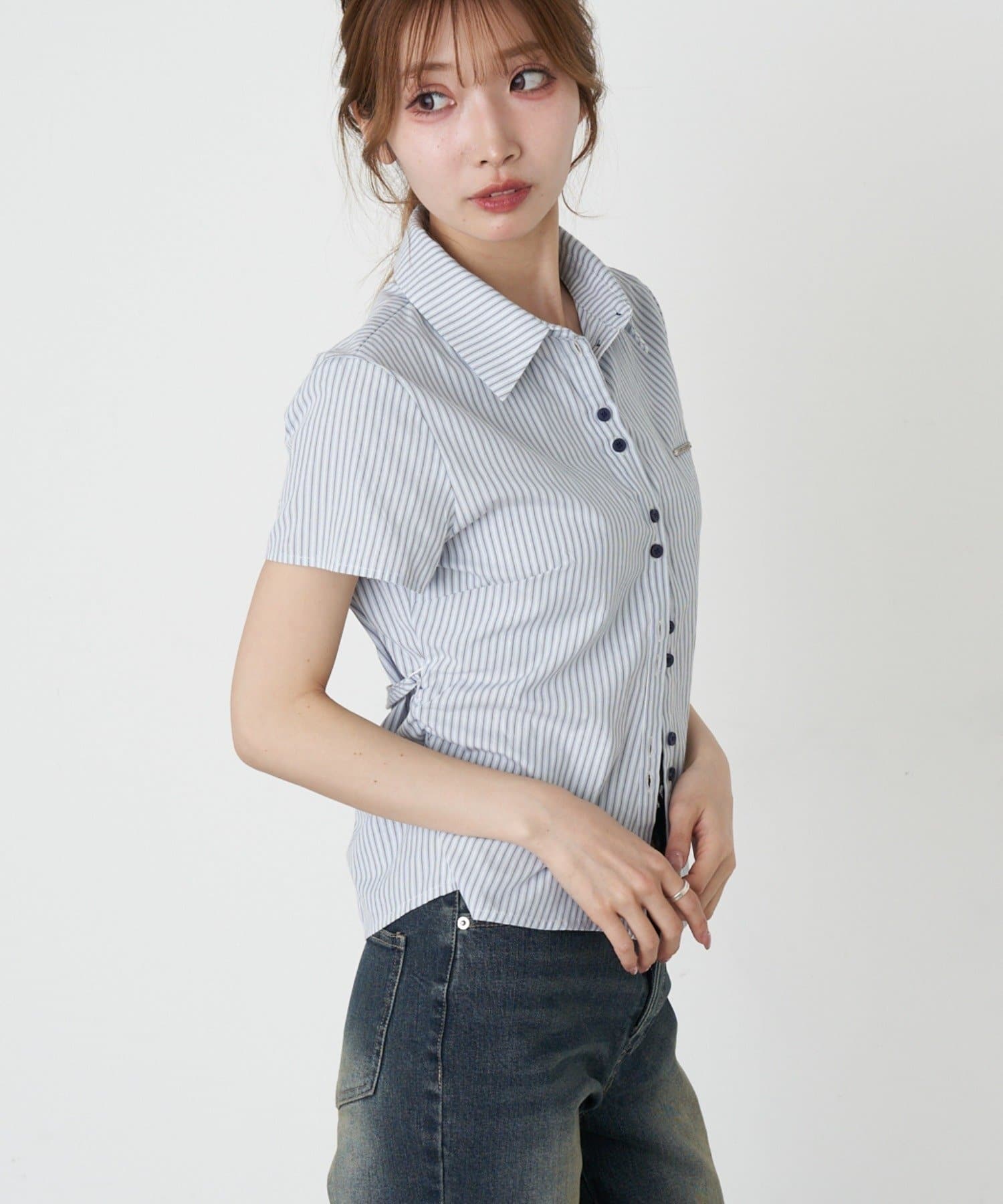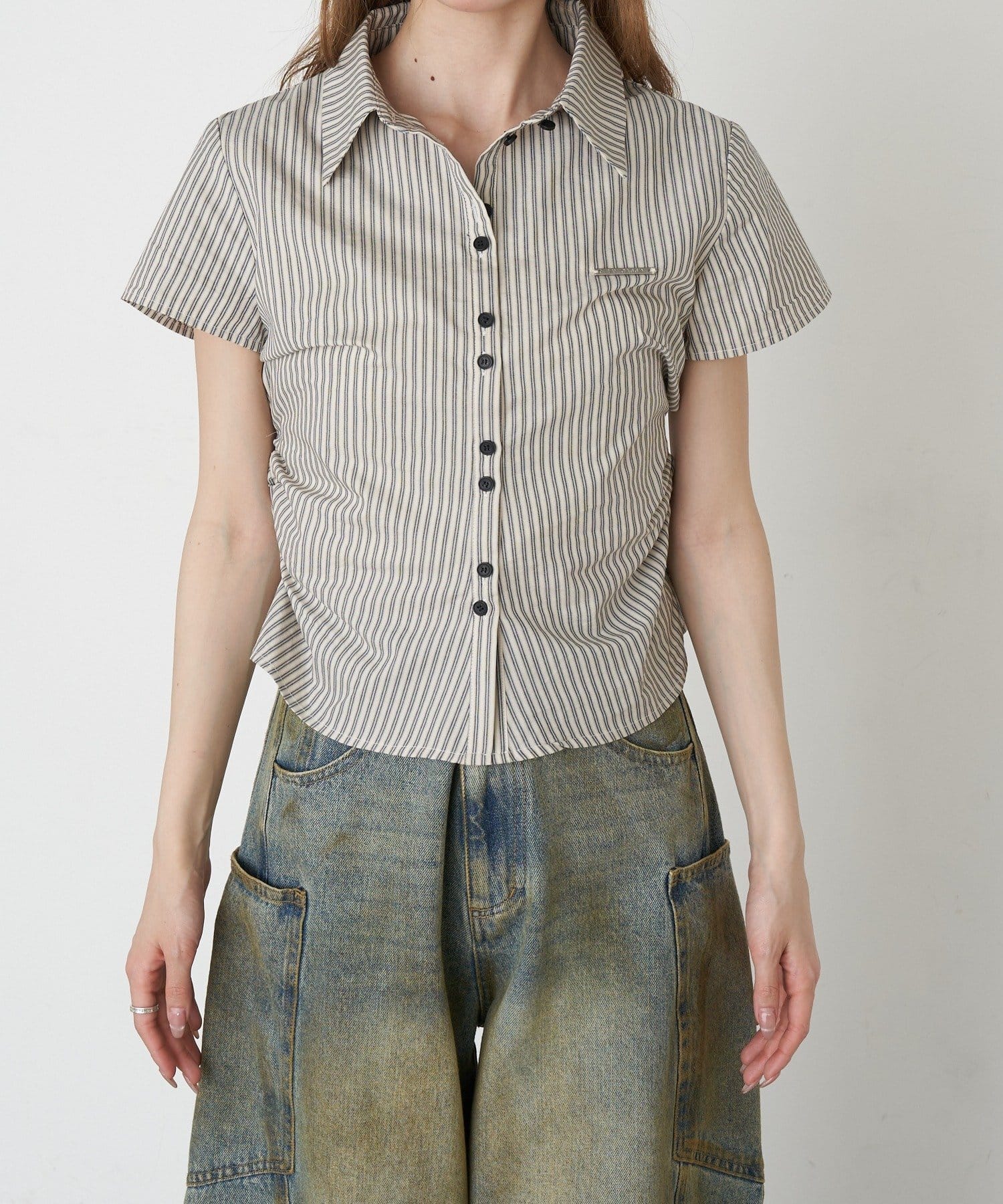 サイドギャザーで着瘦せ効果抜群のシャツが半袖Ver.に