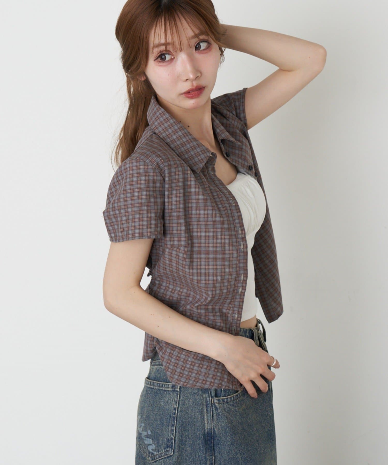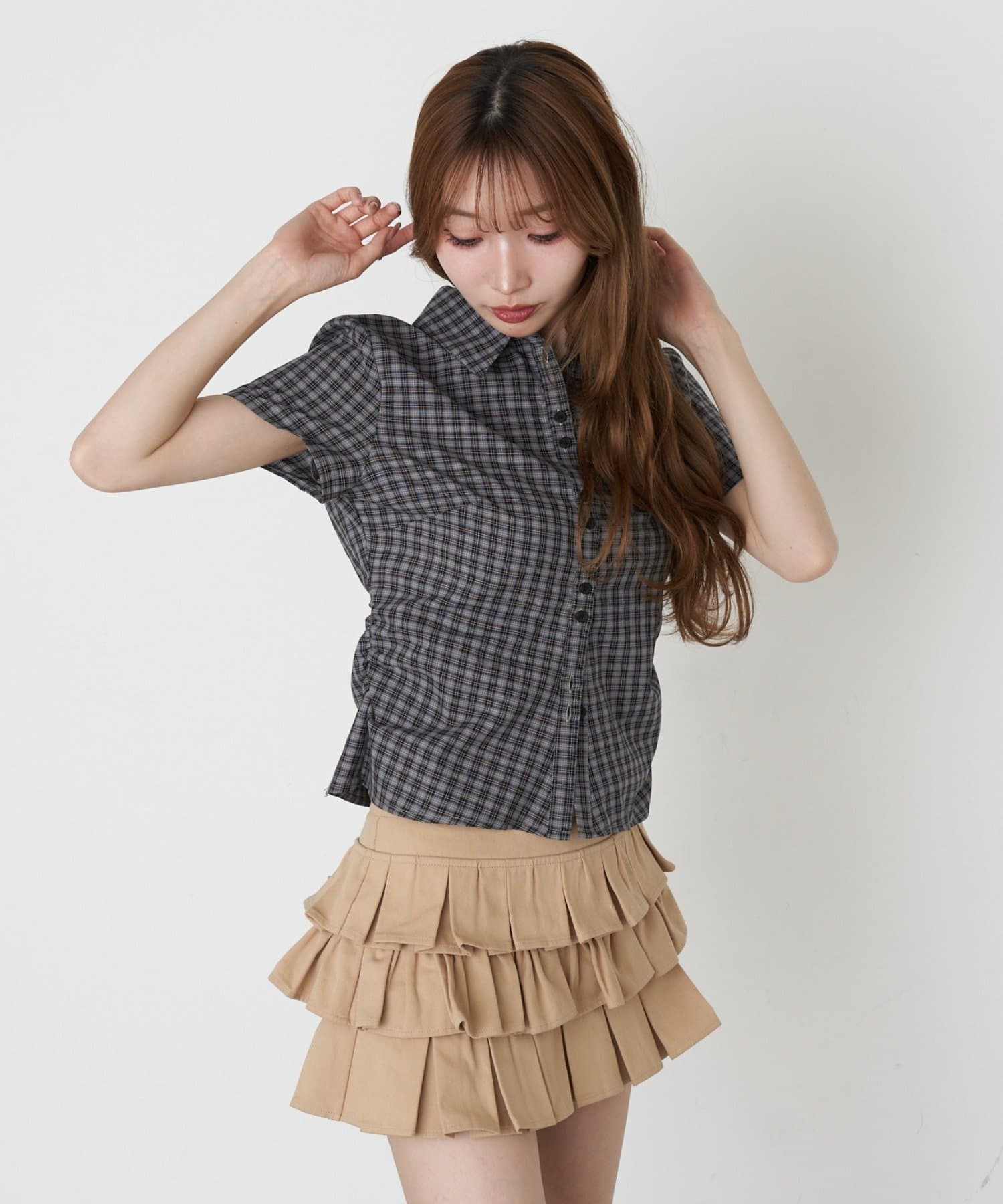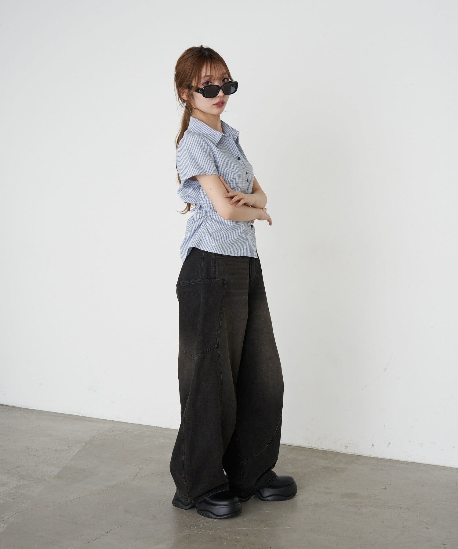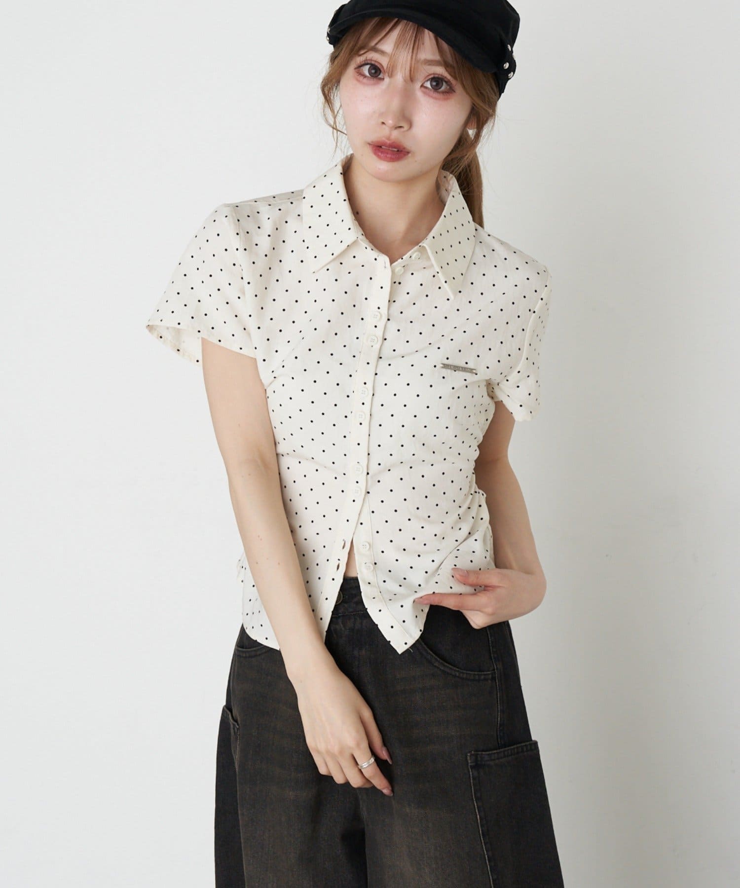 サイドギャザーで着瘦せ効果抜群のシャツが半袖Ver.に