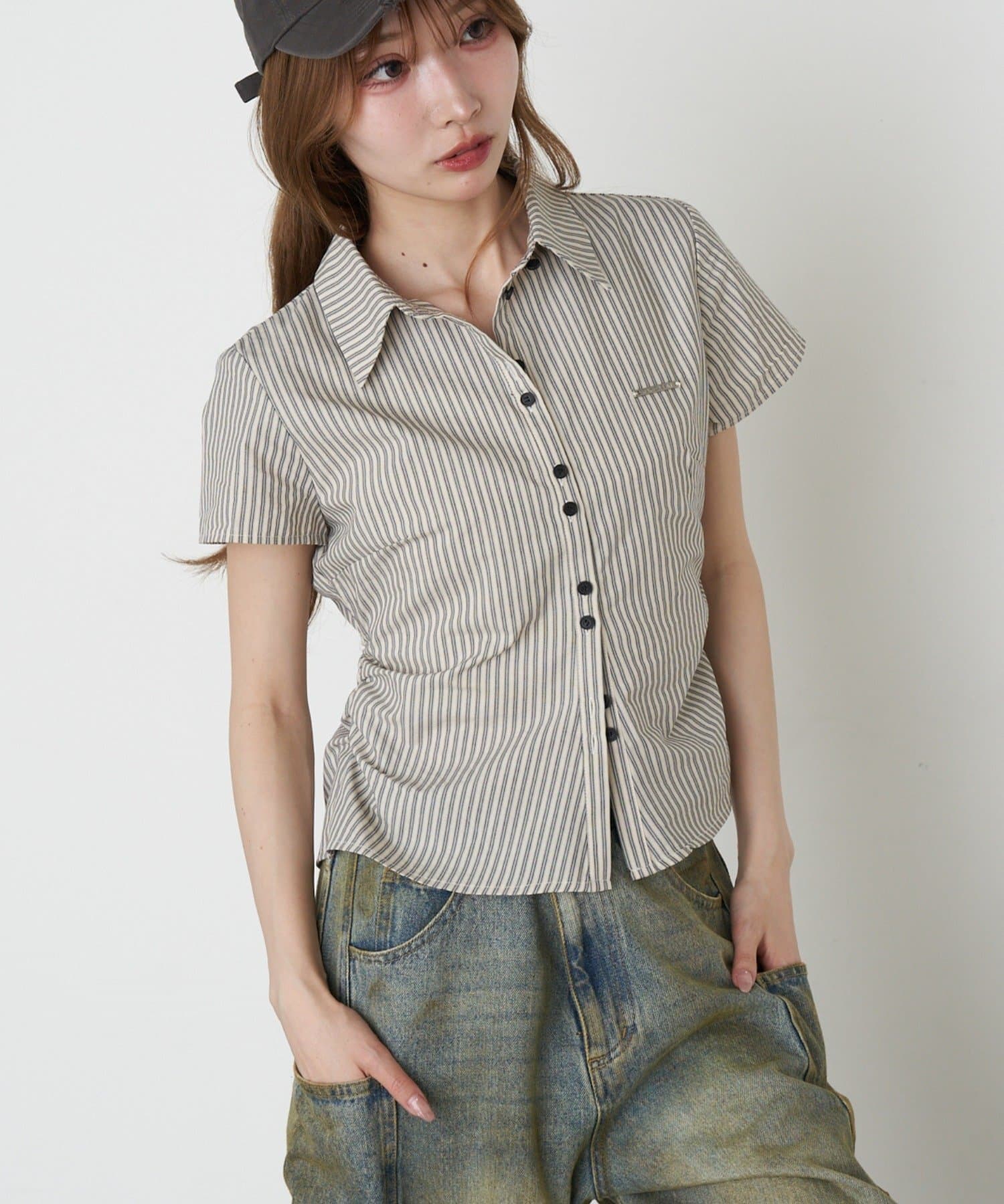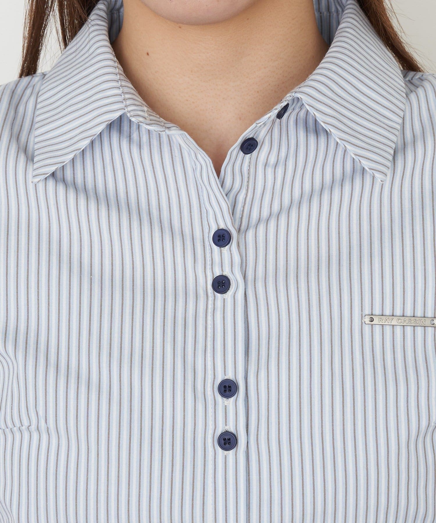 TOP > RAY CASSIN > レディース > トップス > シャツ/ブラウス(ボタン) > 【7色展開】胸刺繍コンパクト半袖シャツ