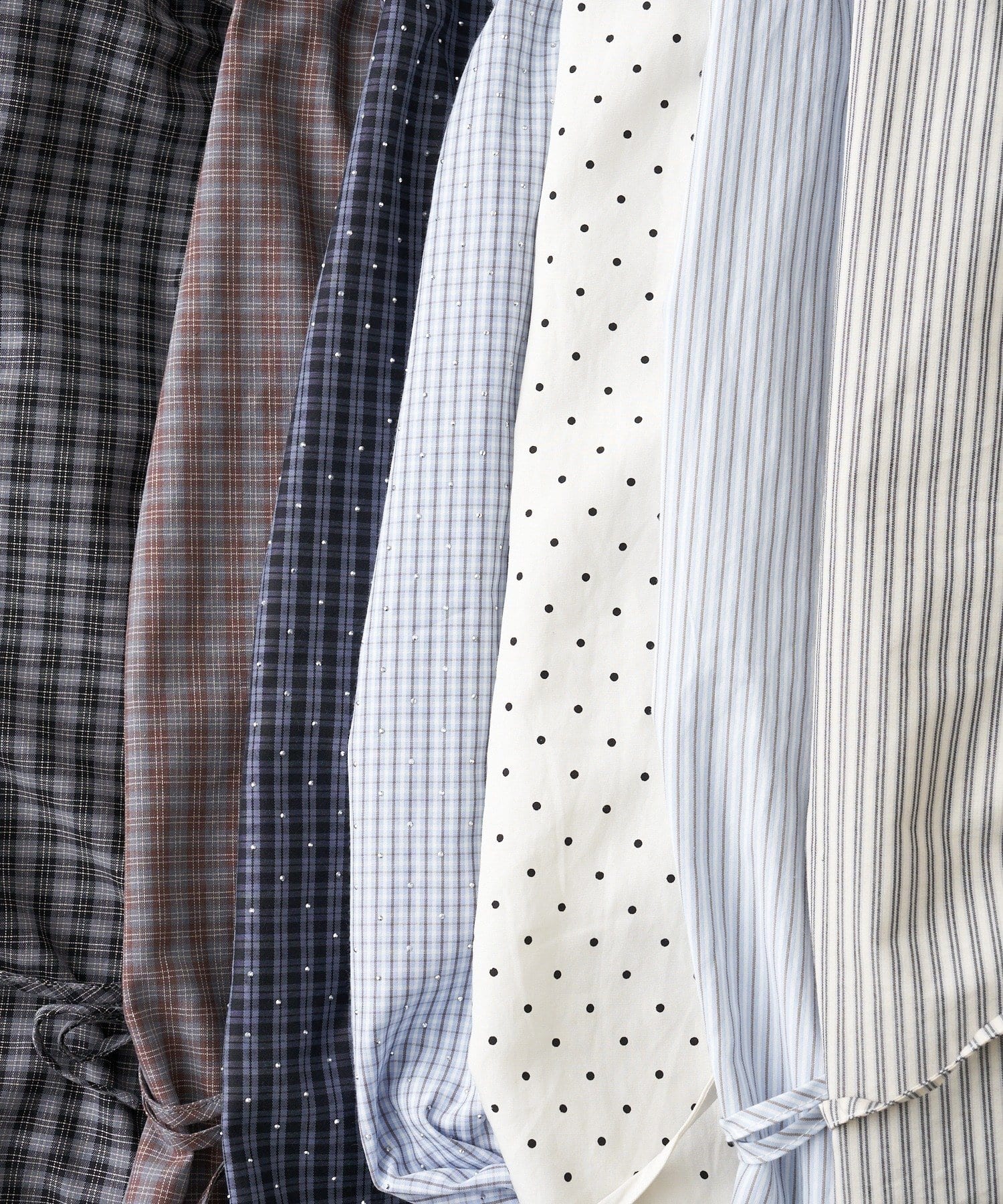 ・ストライプ、ドット、チェック、ラインストーン付の豊富なカラー展開で、お好みの柄がきっと見つかる1着です。