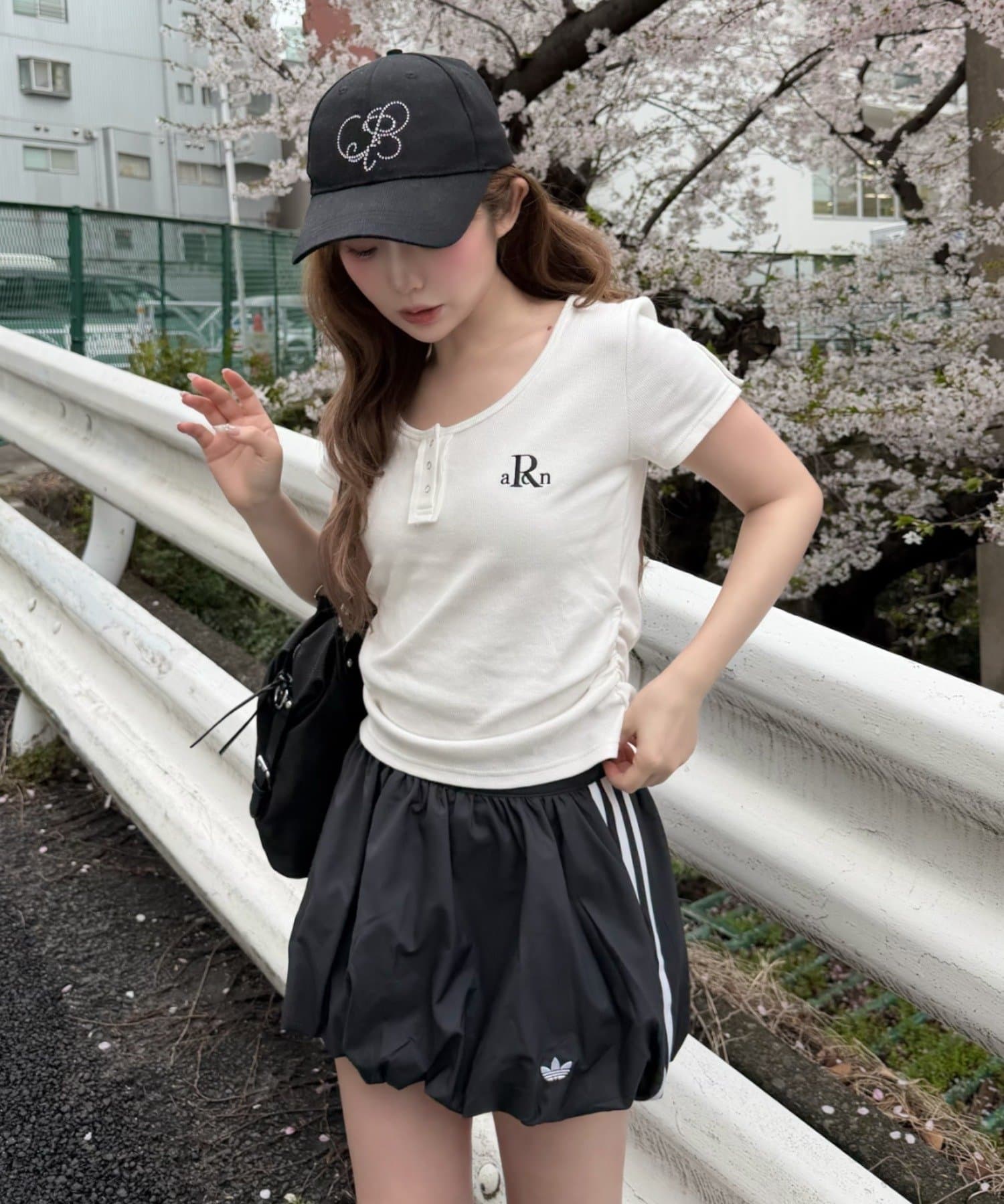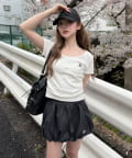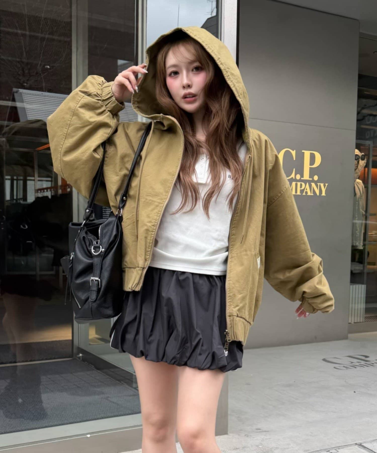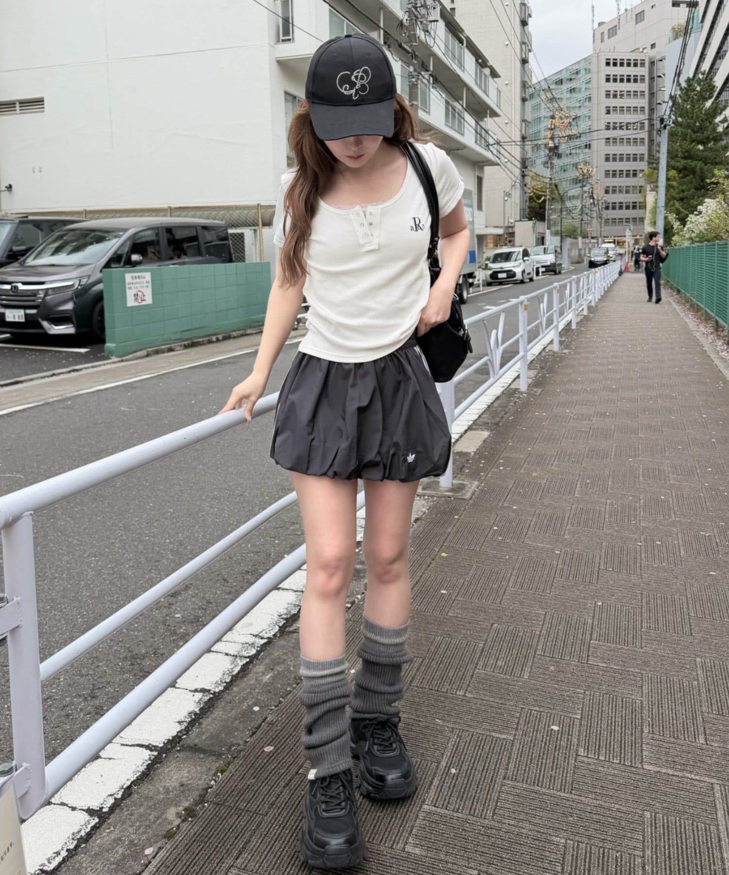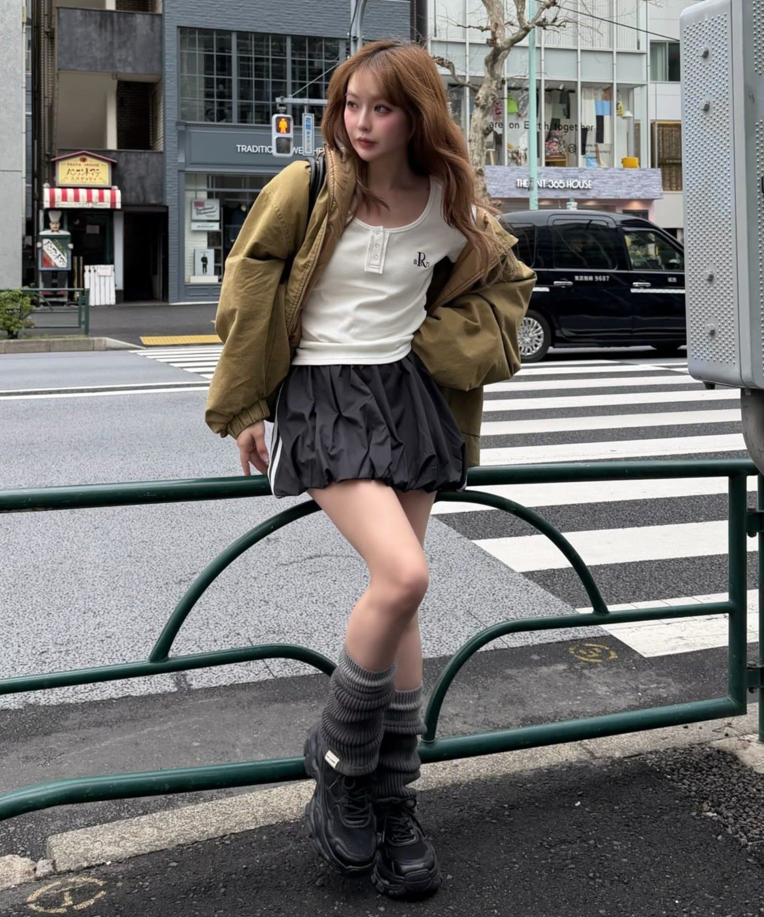 ・プリーツミニなどと合わせれば、韓国ファッション風なスタイルに。