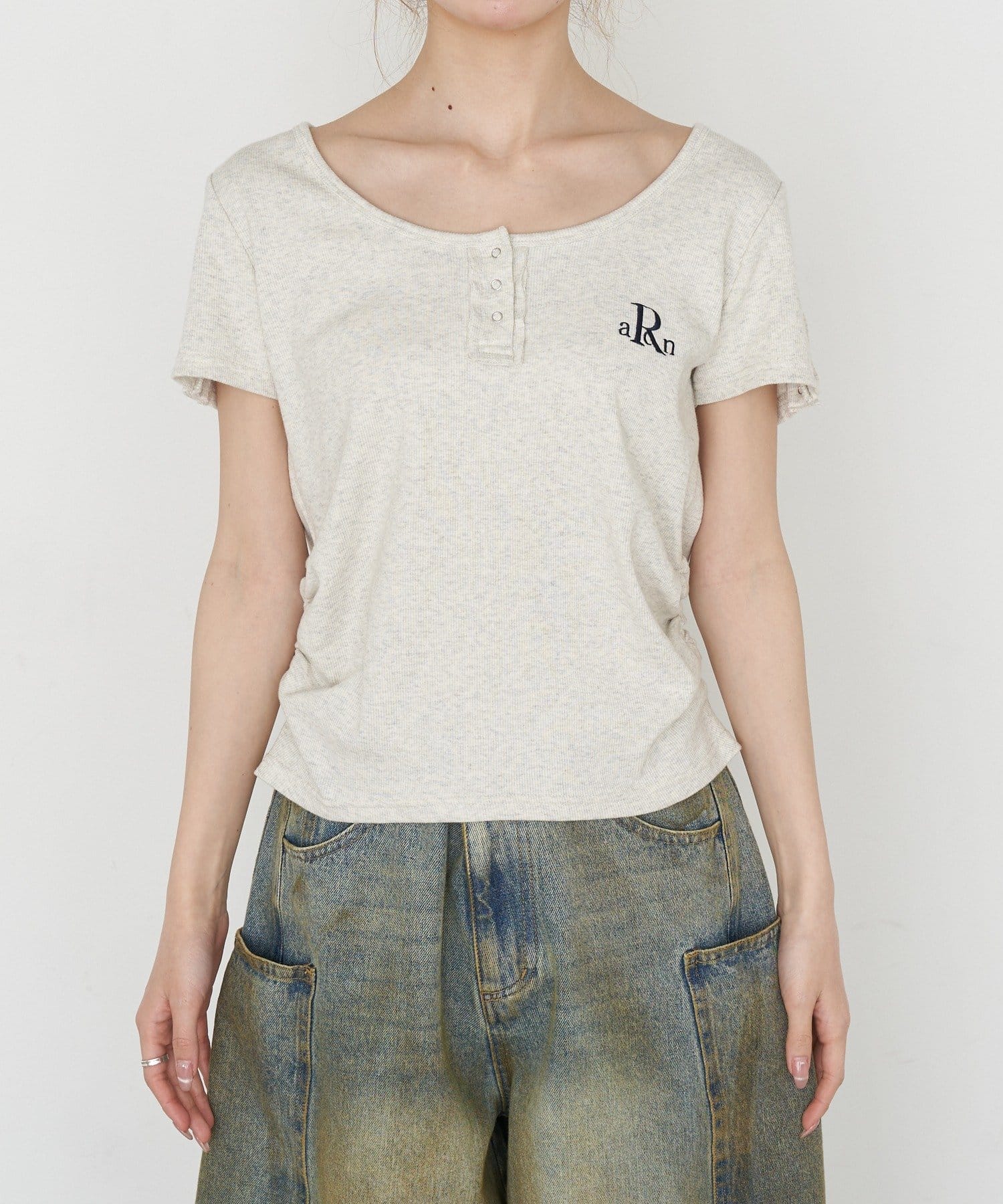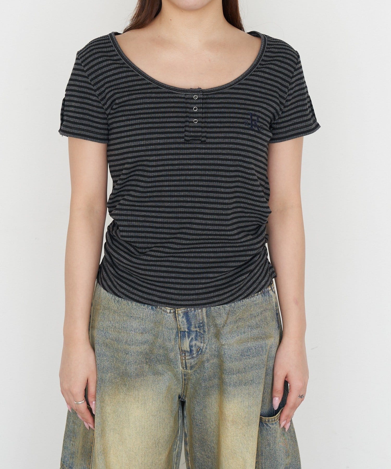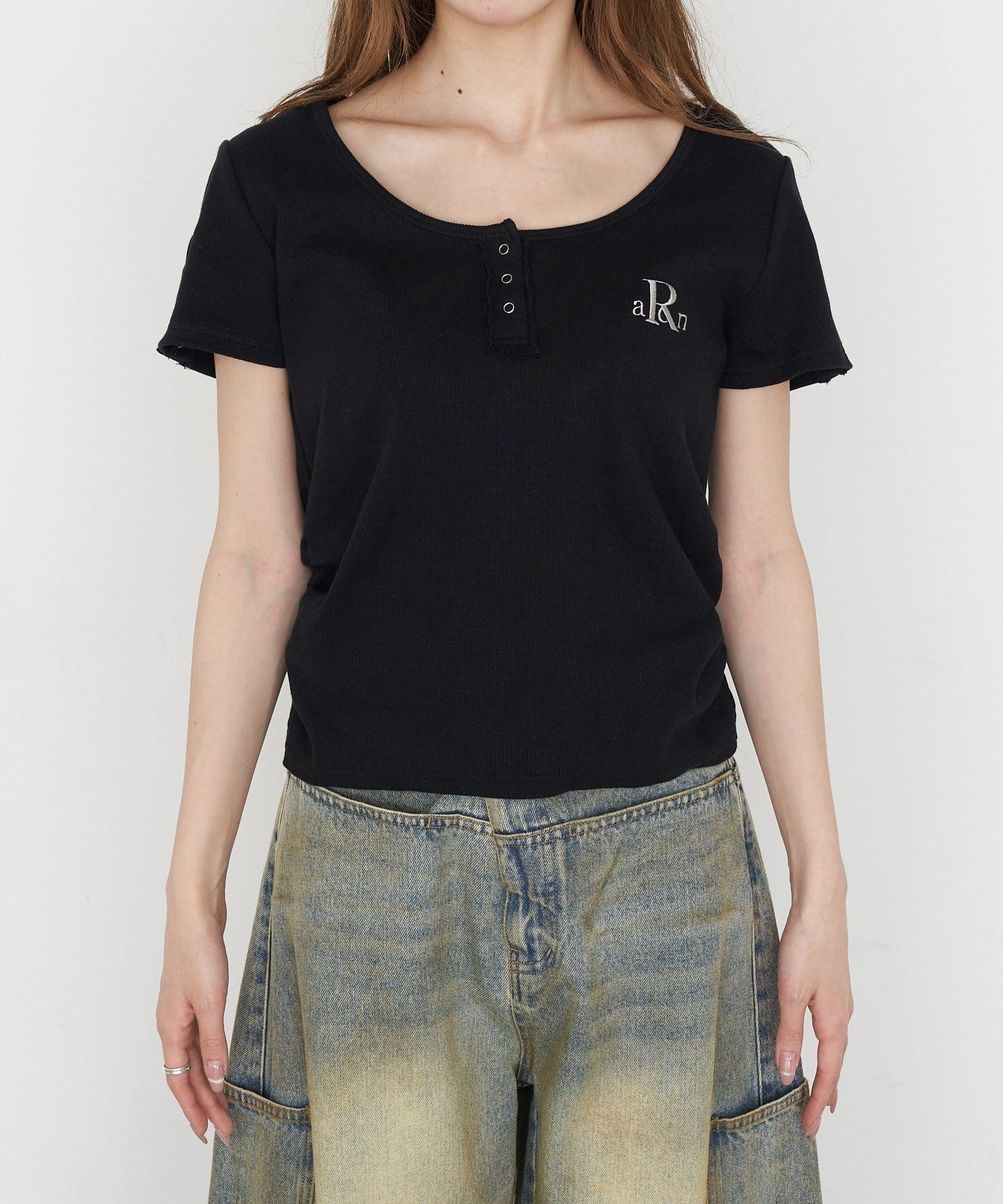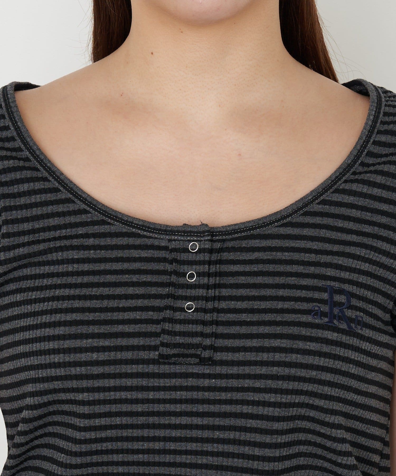 TOP > RAY CASSIN > レディース > トップス > Tシャツ/カットソー > 【無地 / ボーダー】胸刺繍Uネックヘンリー半袖Tシャツ