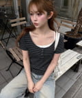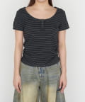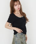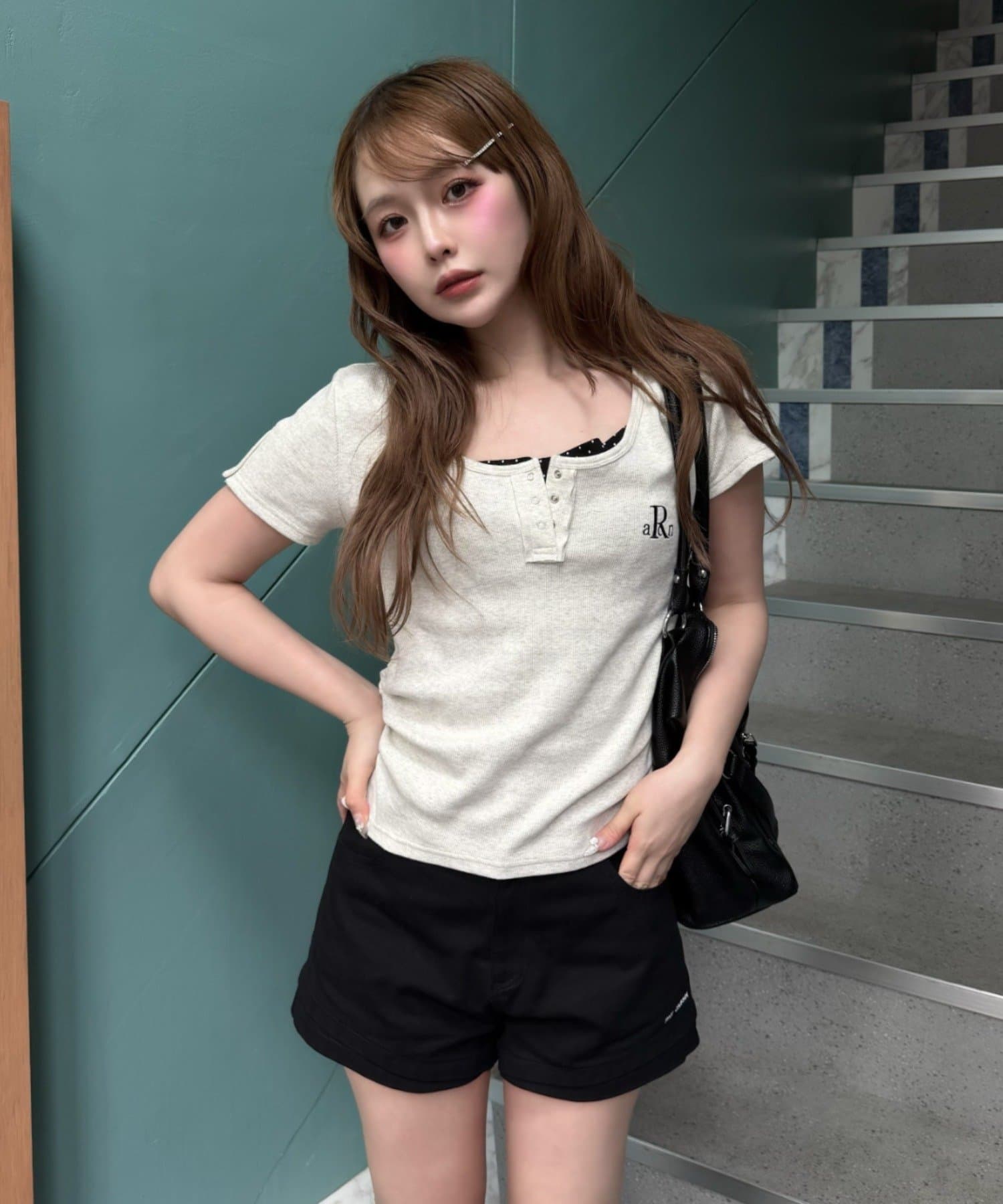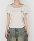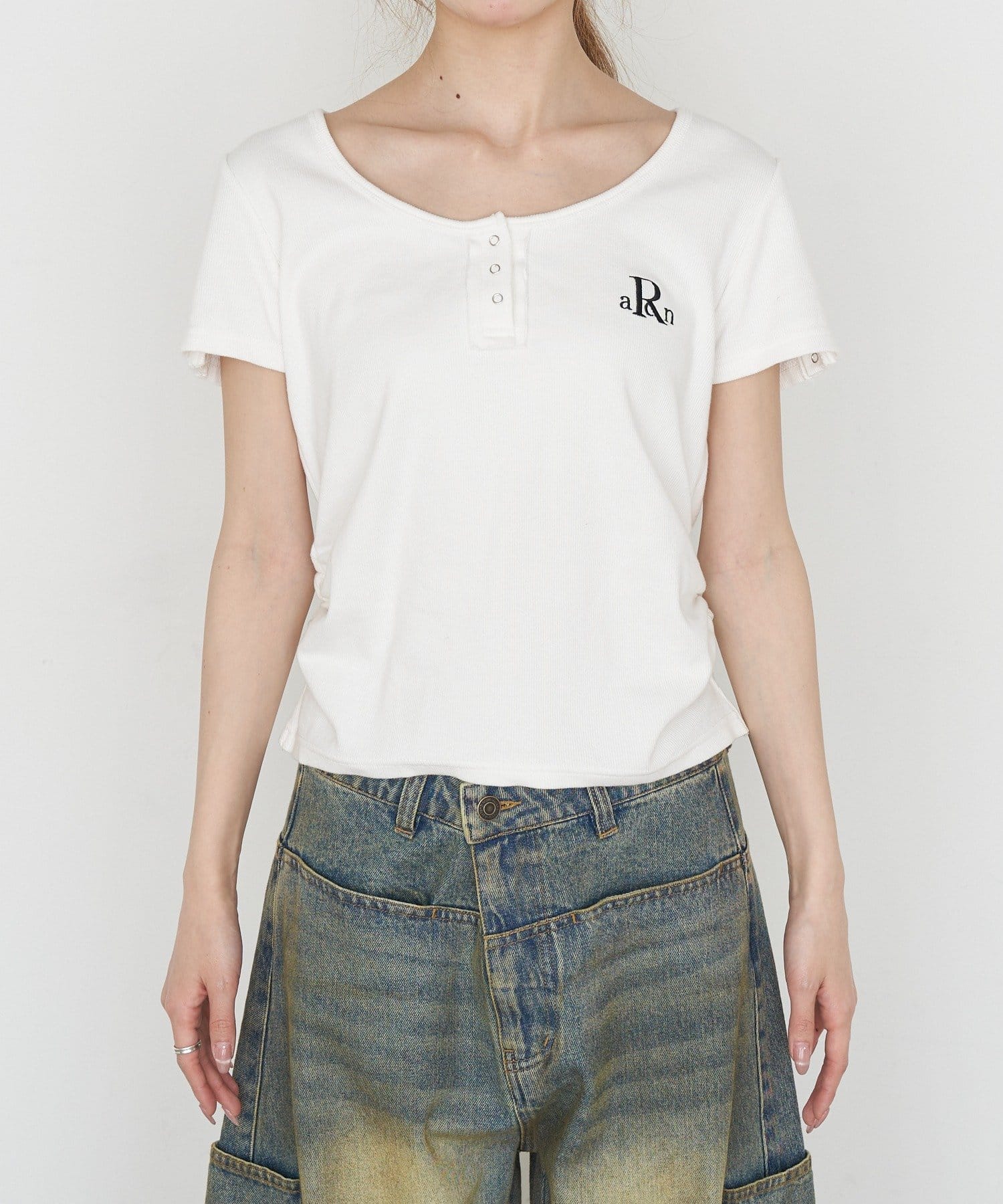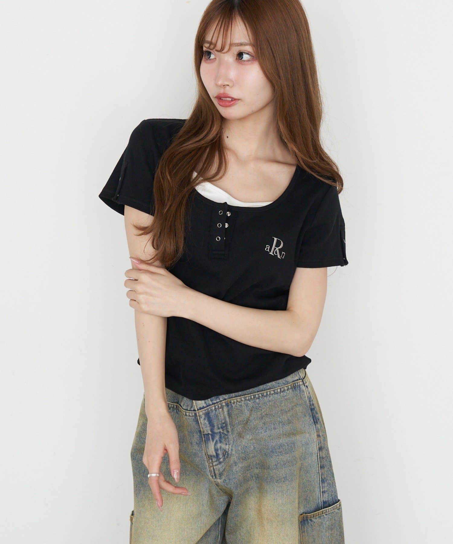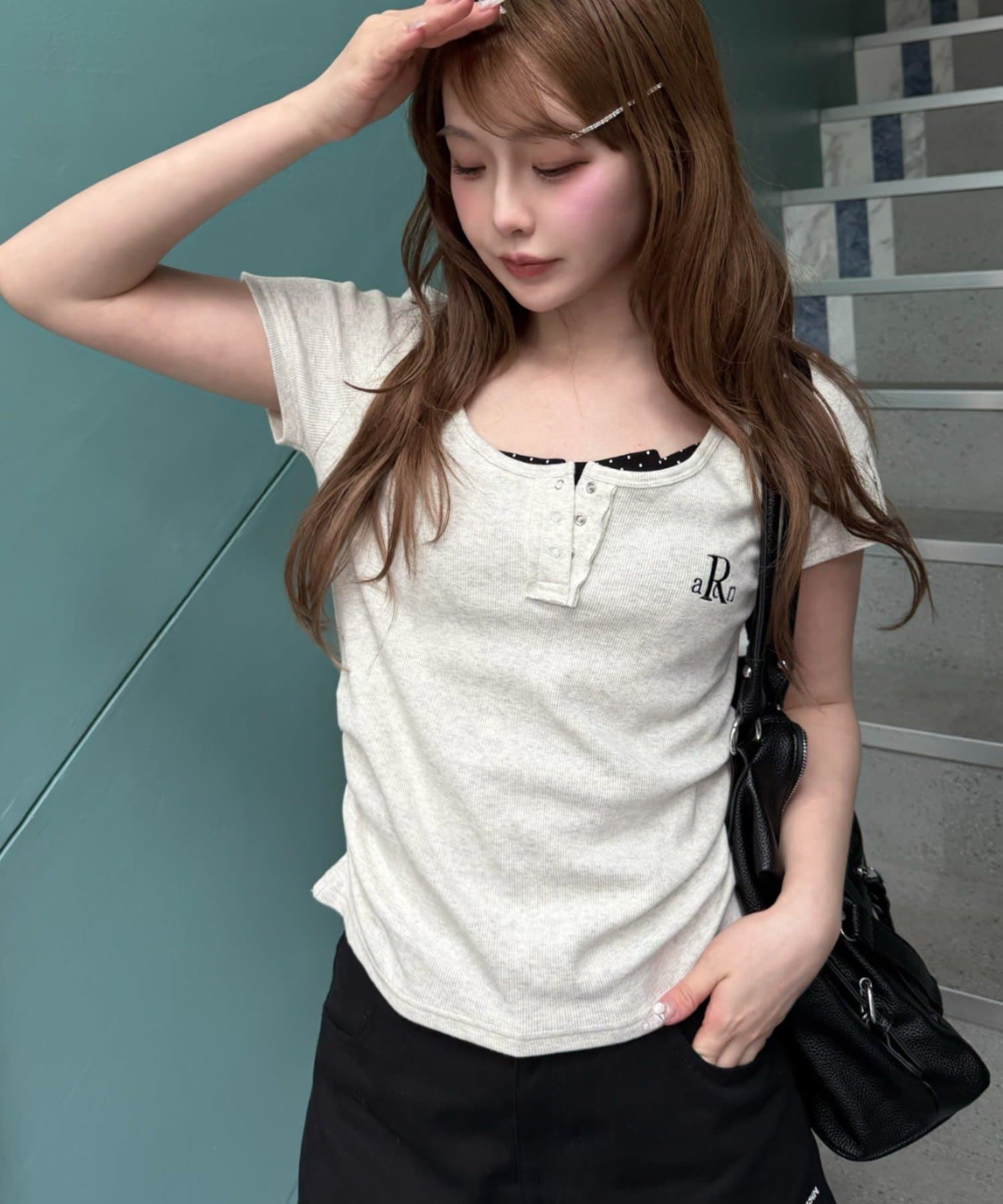 TOP > RAY CASSIN > レディース > トップス > Tシャツ/カットソー > 【無地 / ボーダー】胸刺繍Uネックヘンリー半袖Tシャツ