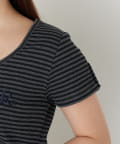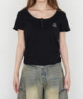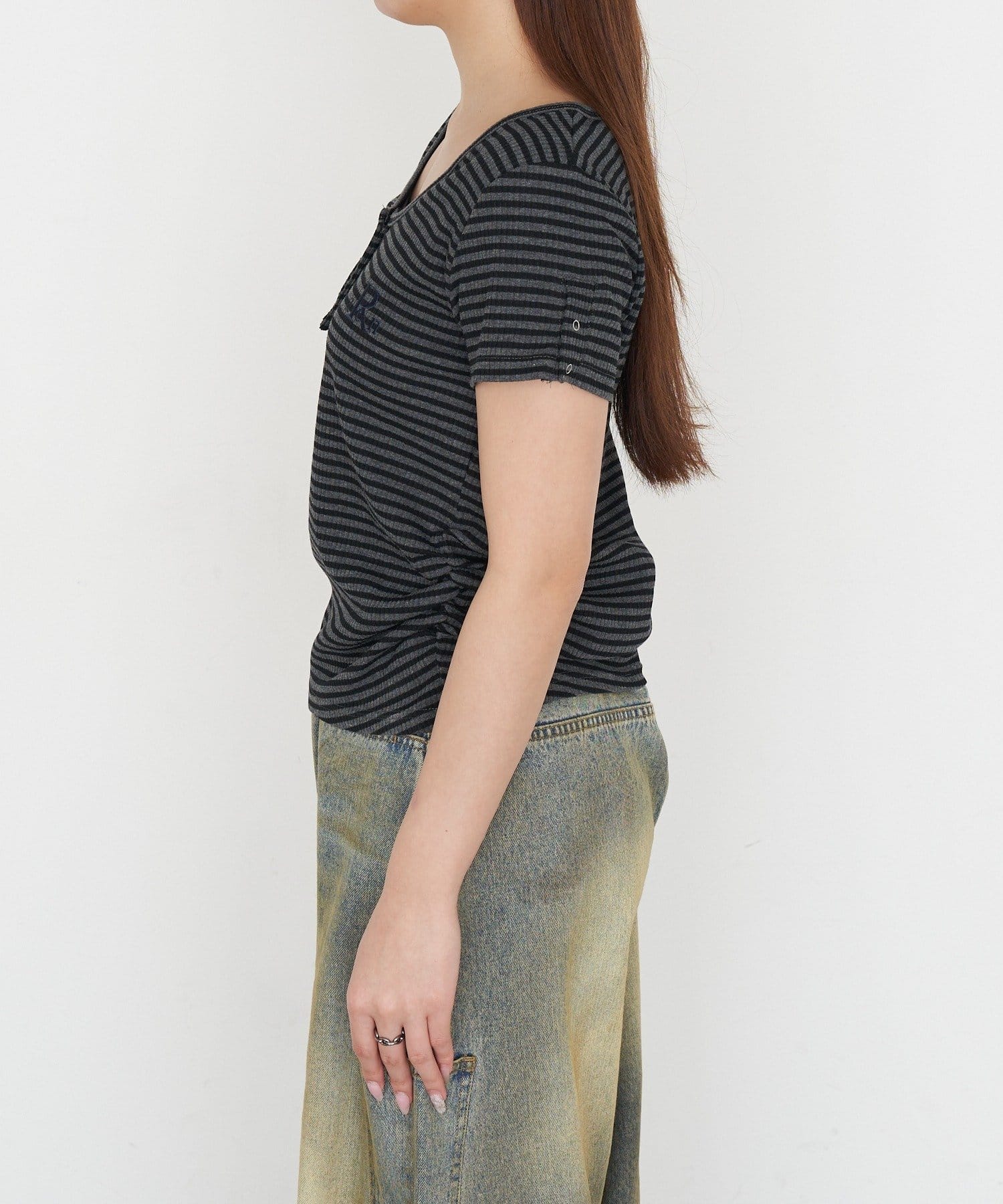 【無地 / ボーダー】胸刺繍Uネックヘンリー半袖Tシャツ