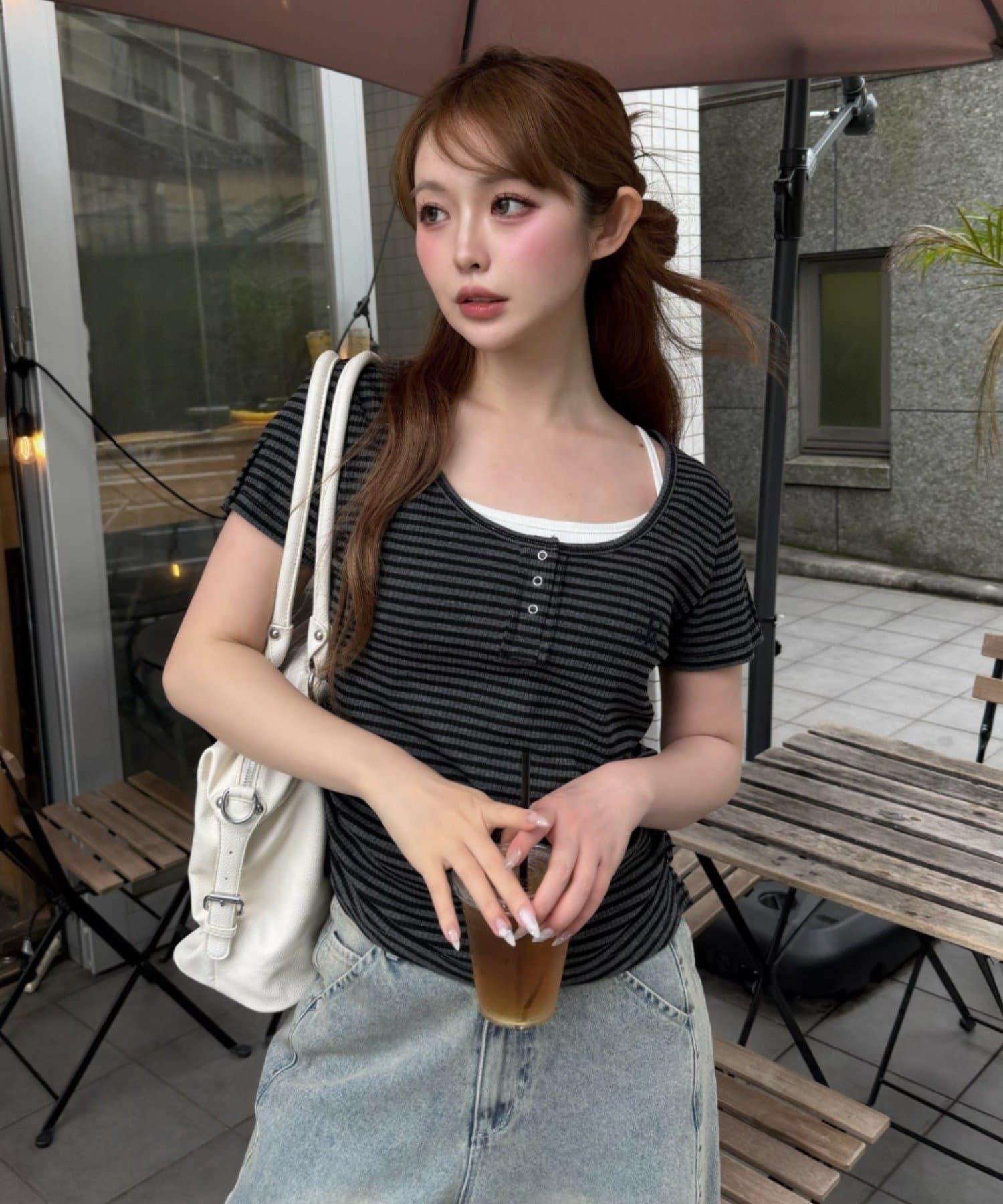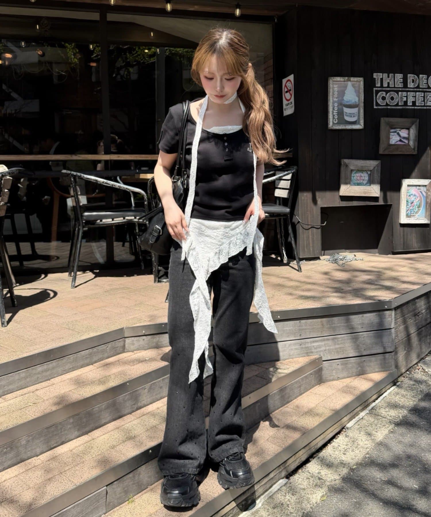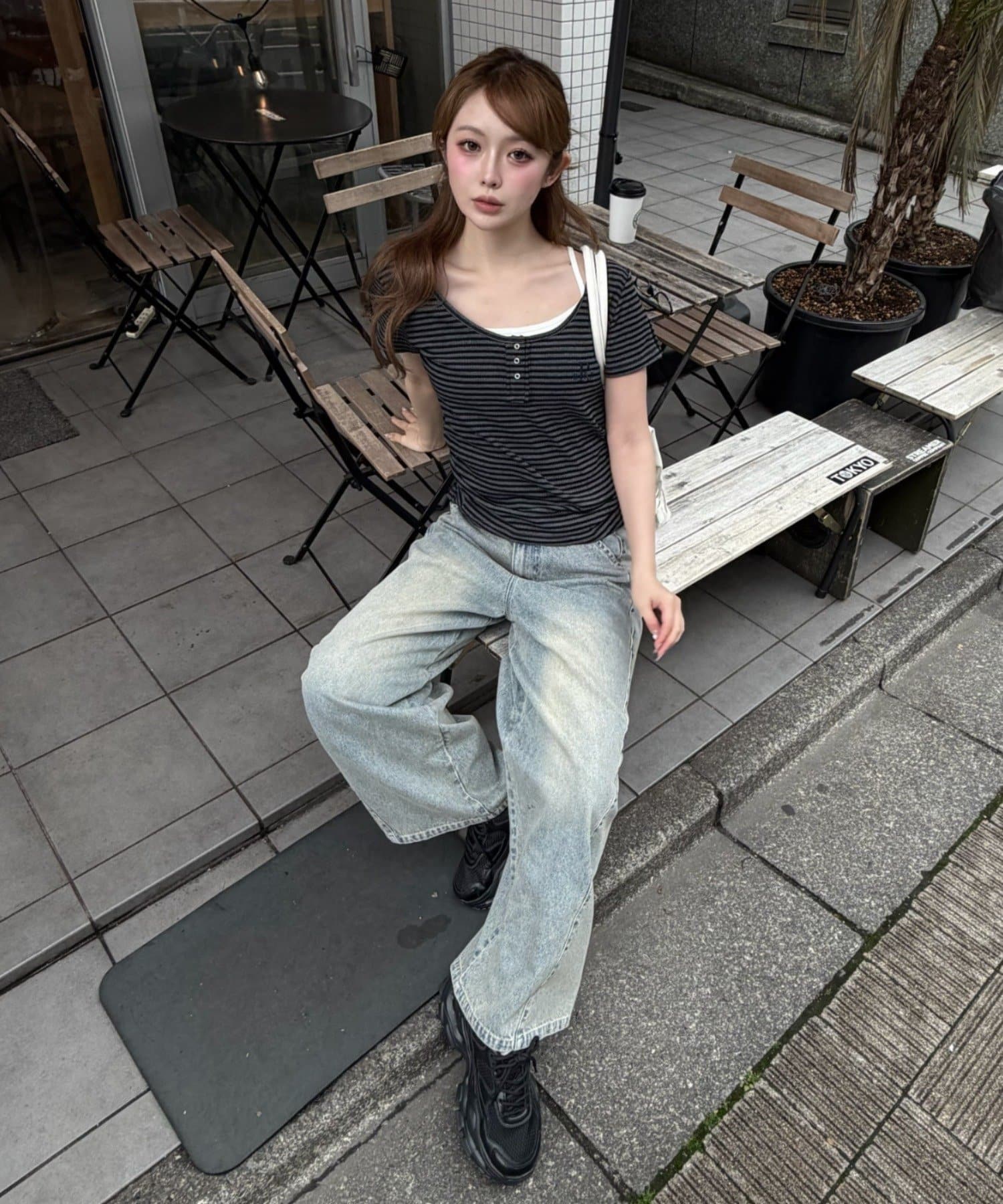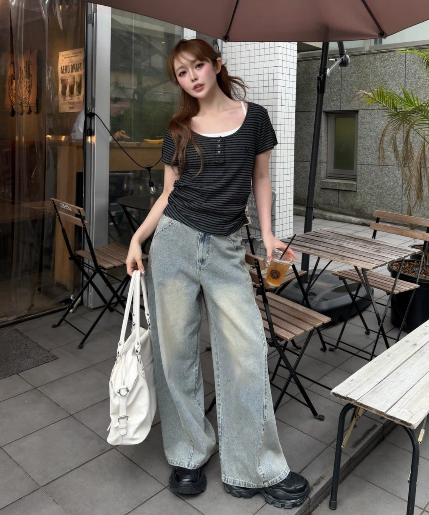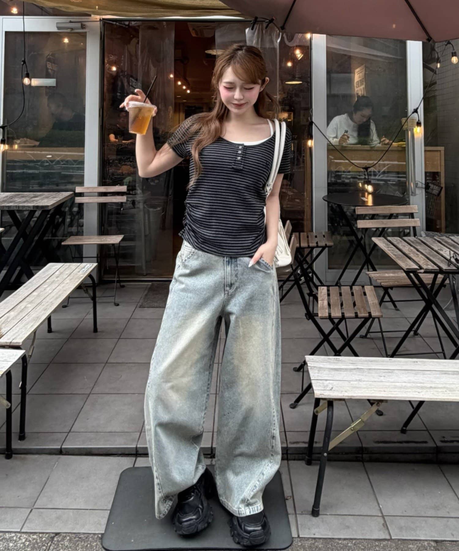 ・バレルレッグデニムやワイドデニムと合わせれば、海外ガールのような雰囲気に◎