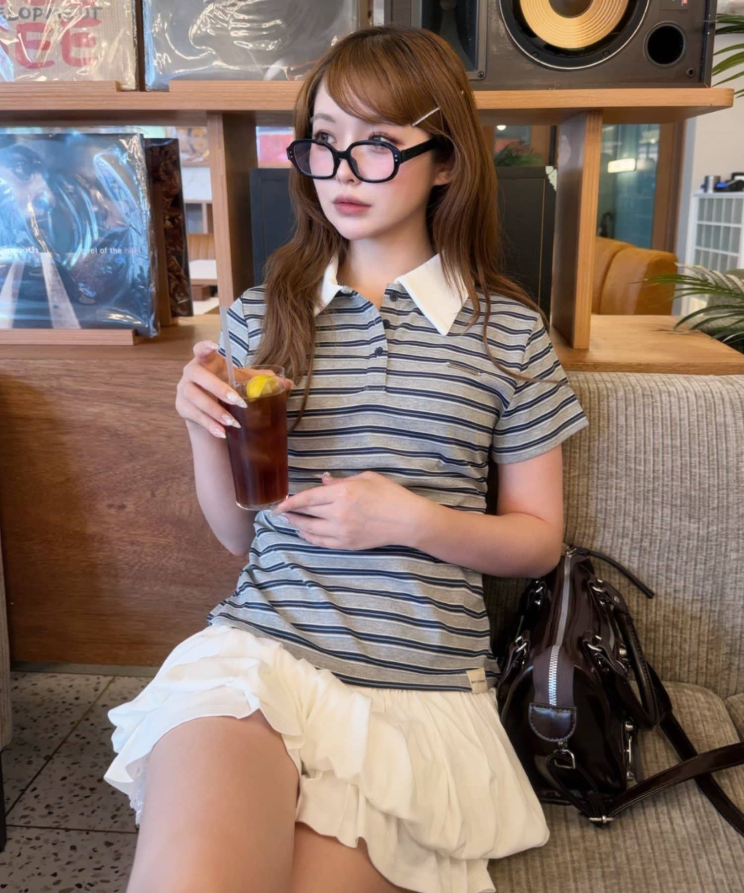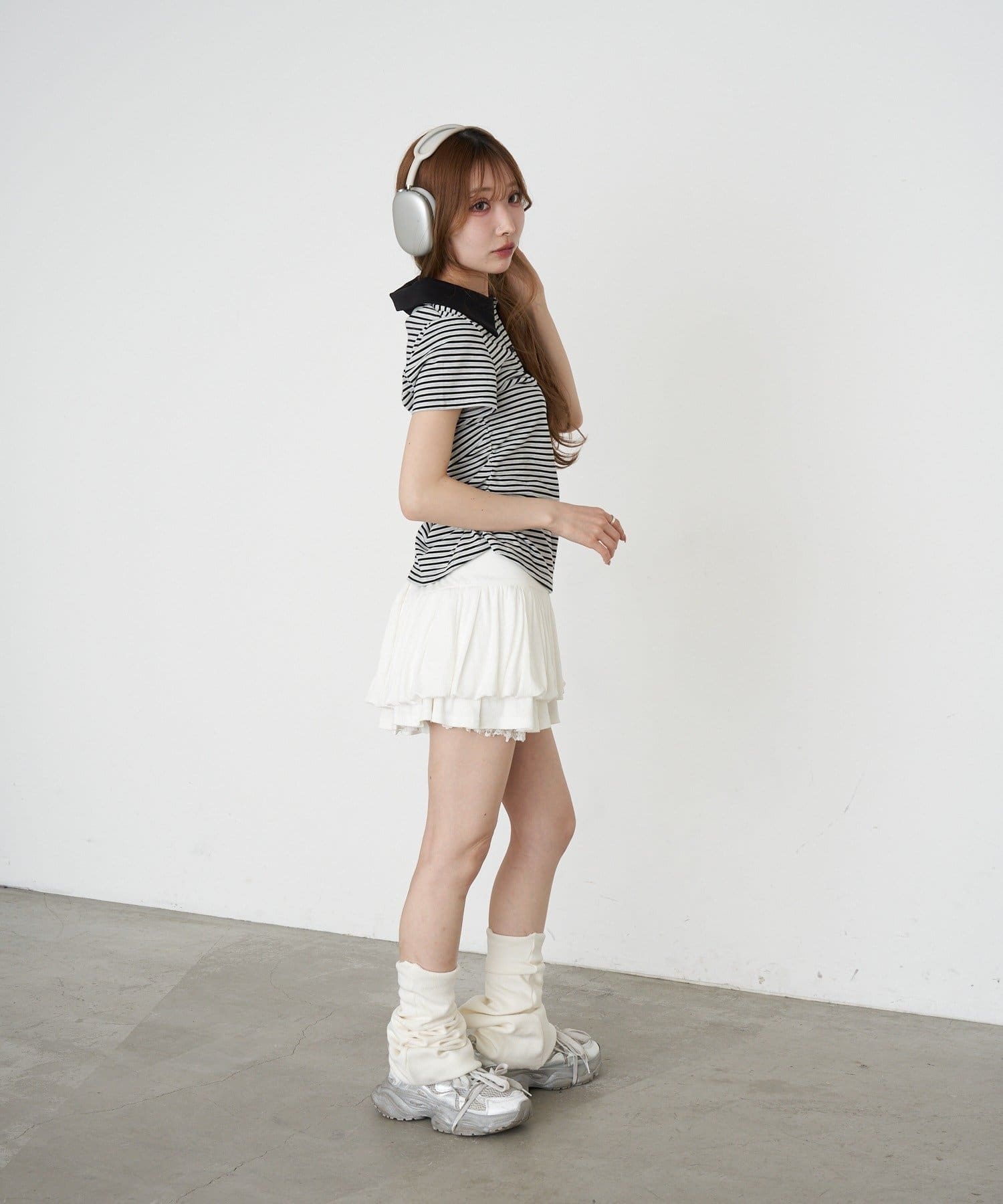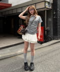 ・ミニボトムと合わせてフェミニン海外ガールスタイル