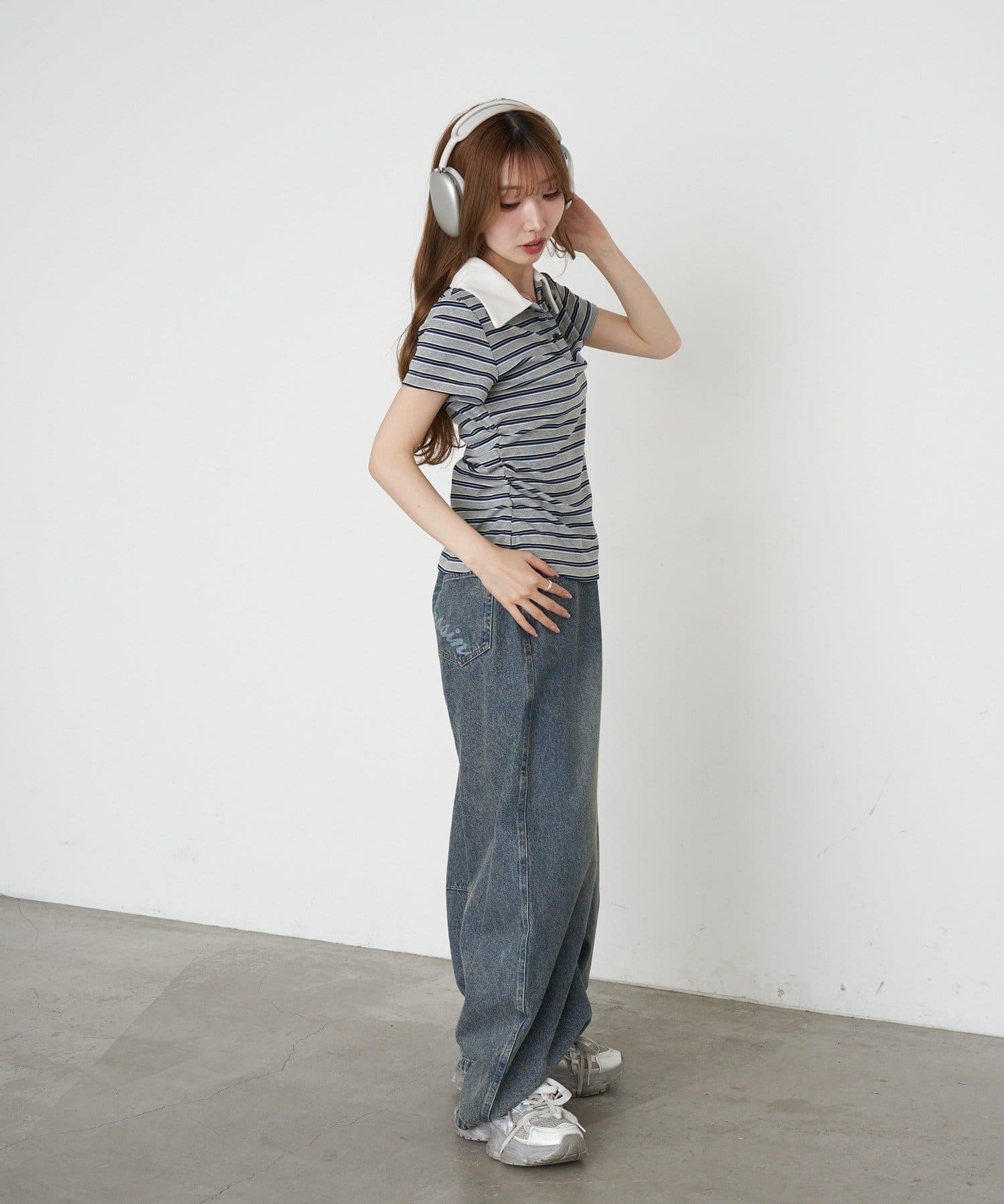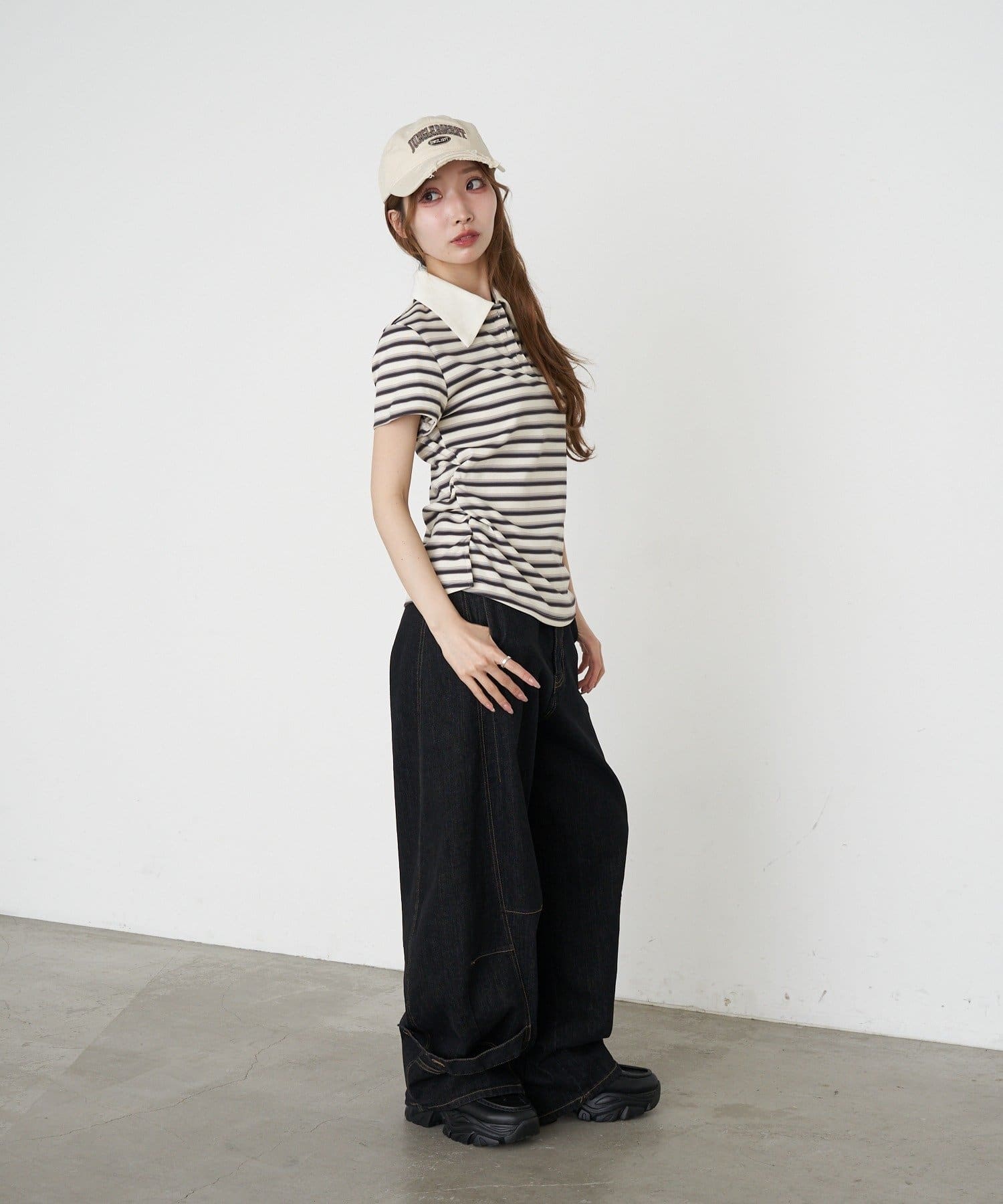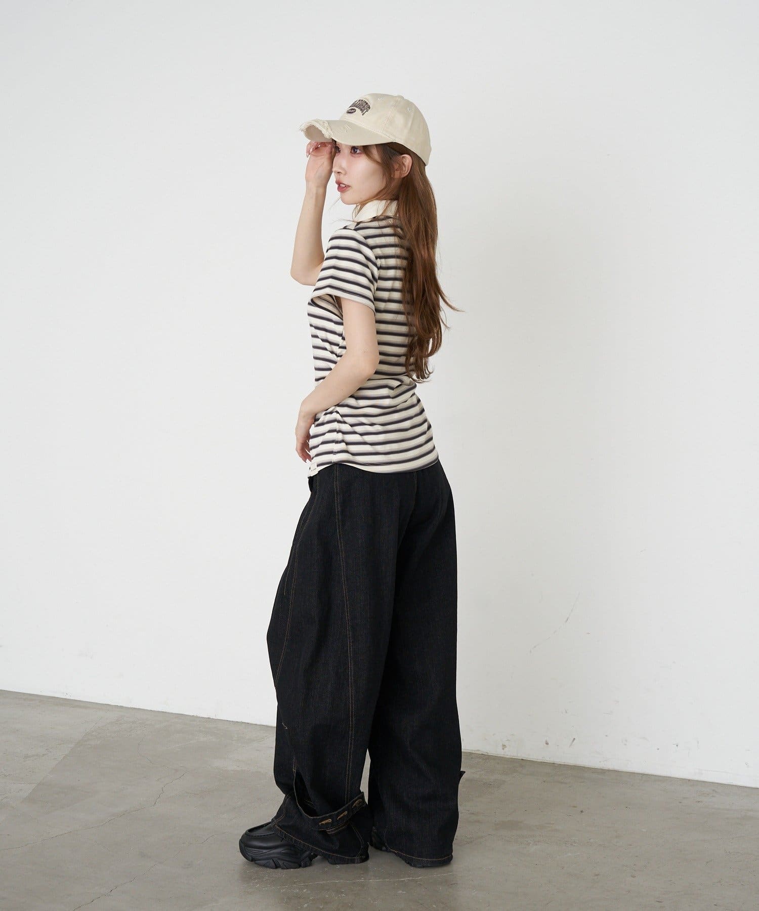 ・カジュアル派の方は、ワイドデニムなどでルーズに合わせるのがオススメです◎