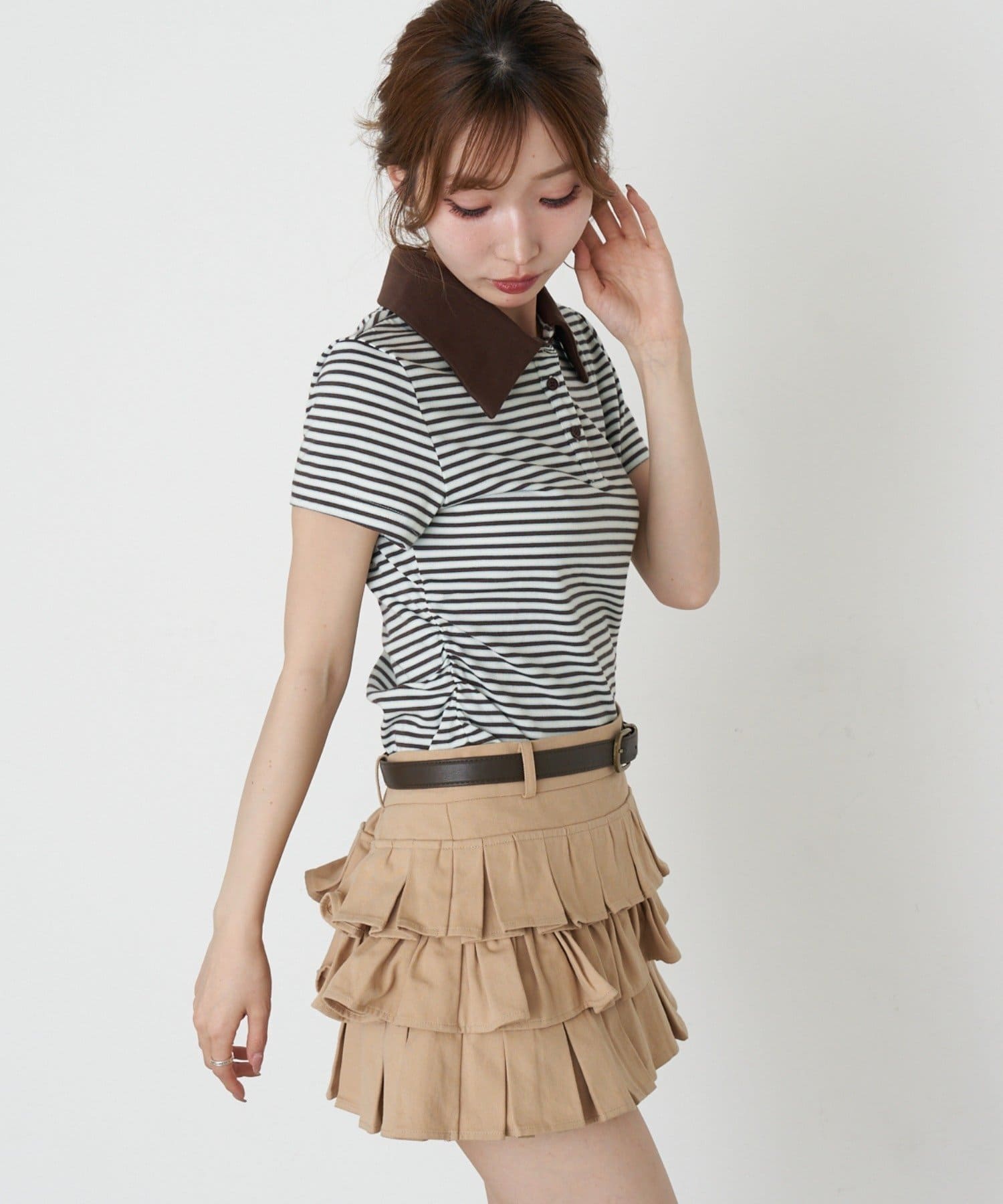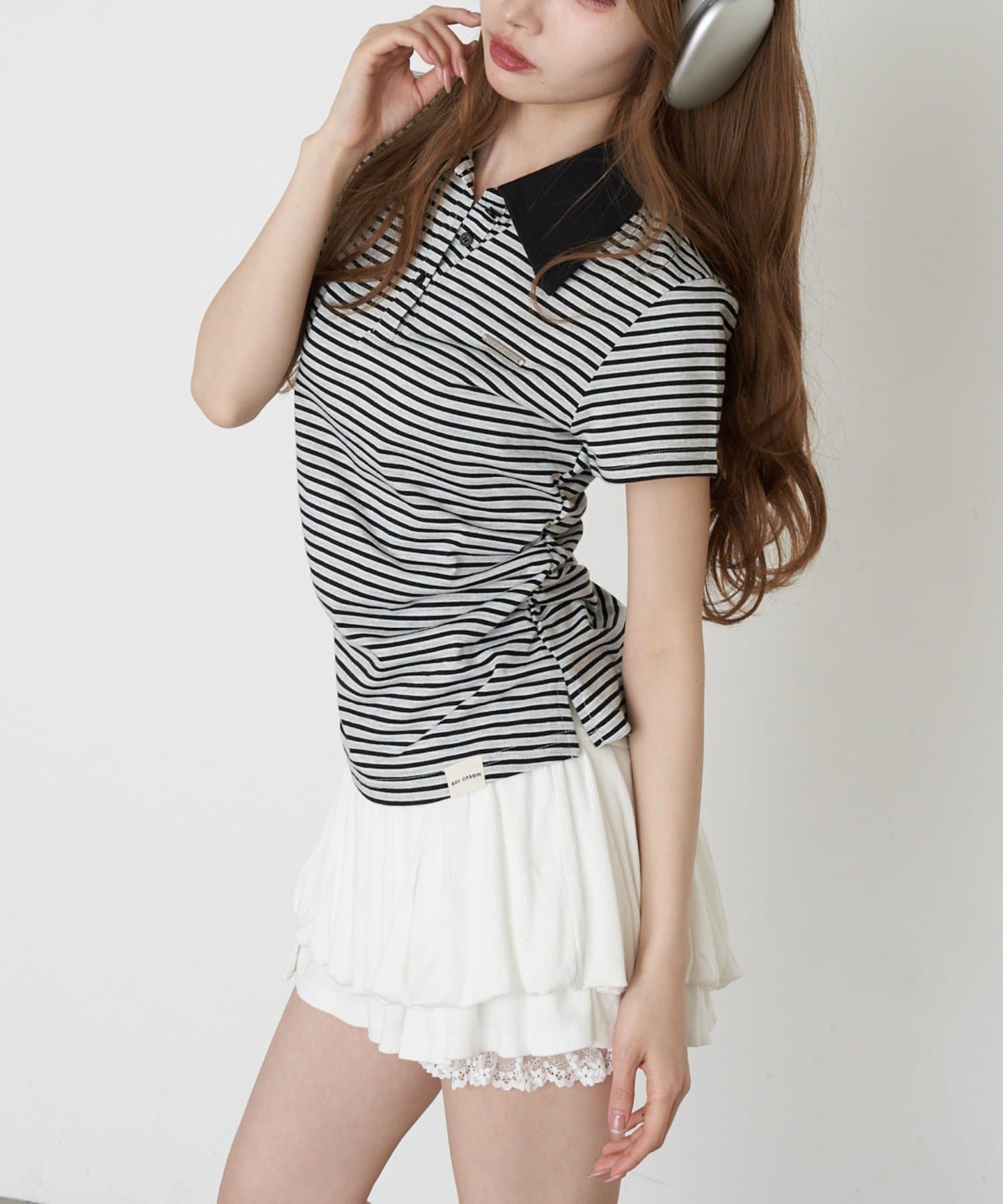 ・サイドギャザーで、自然なくびれラインを作れるので着やせ効果も◎