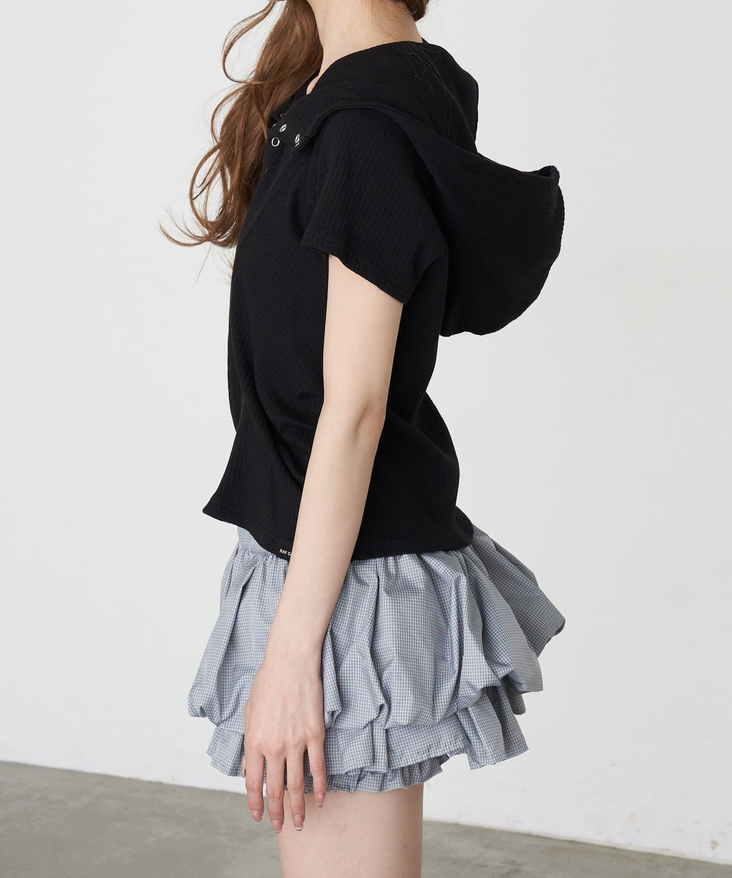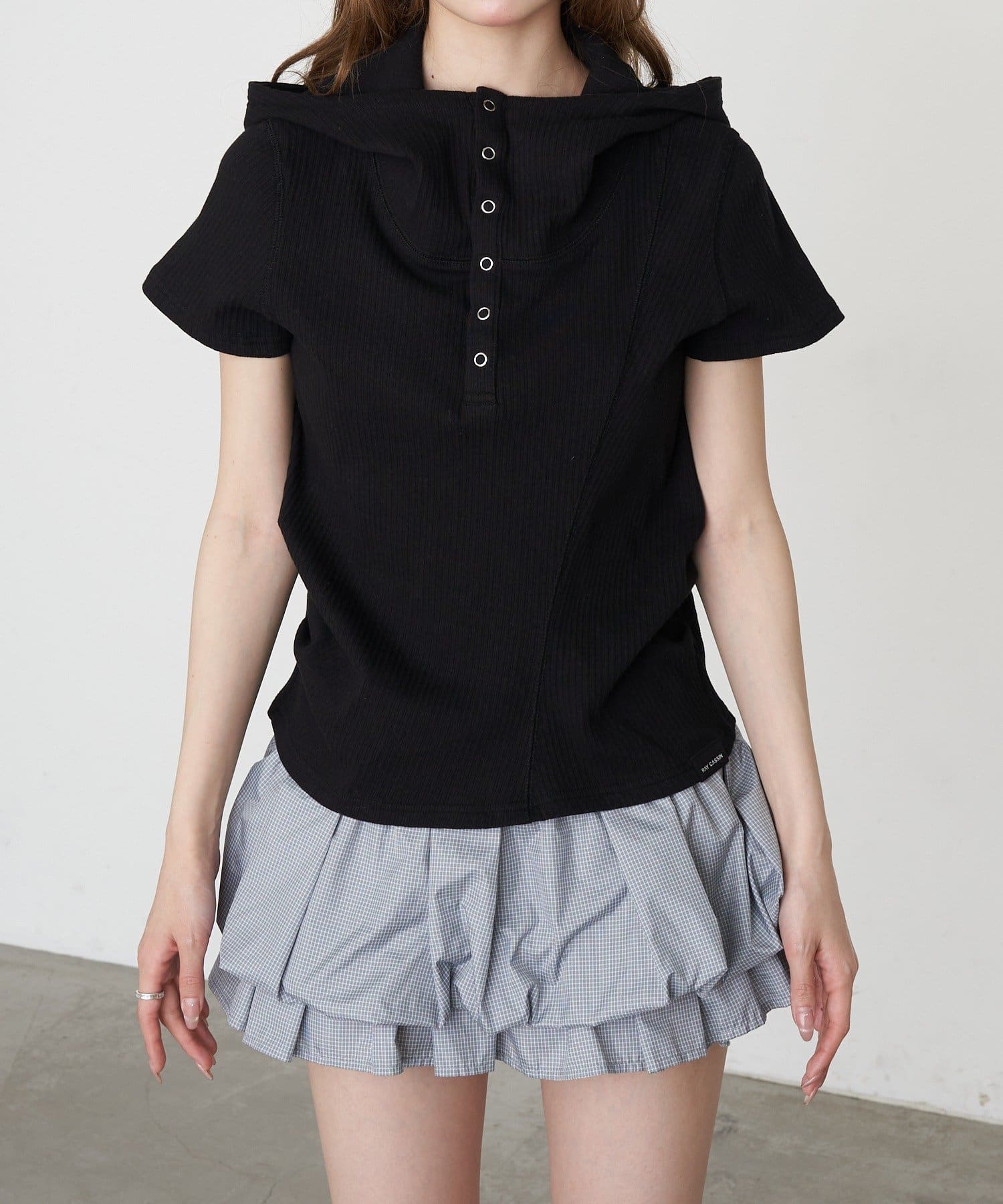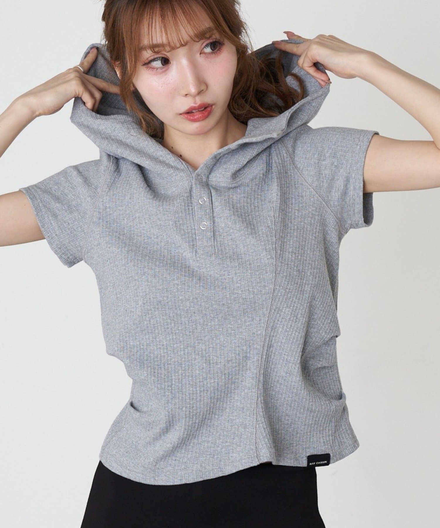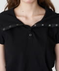 デザイン切り替えフードヘンリーネック半袖Tシャツ