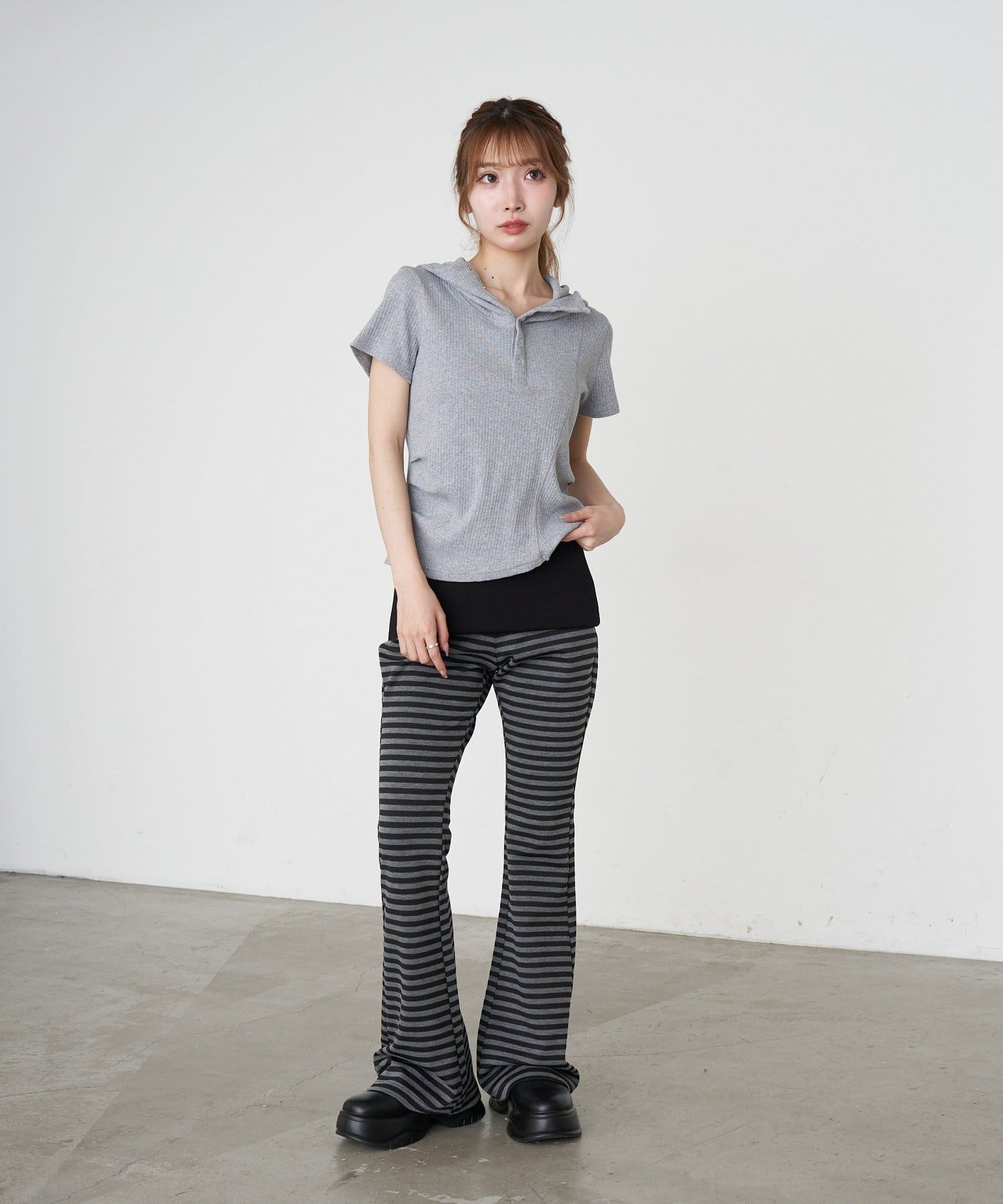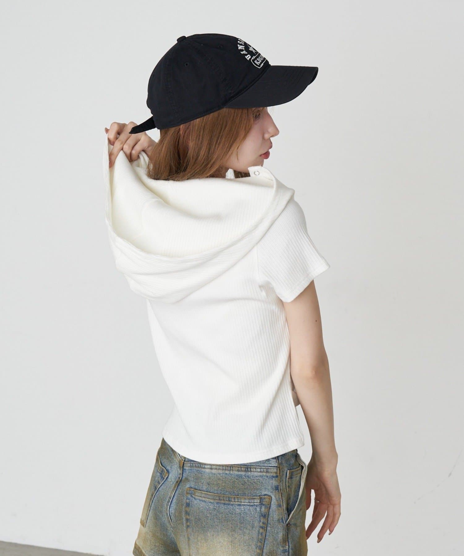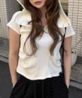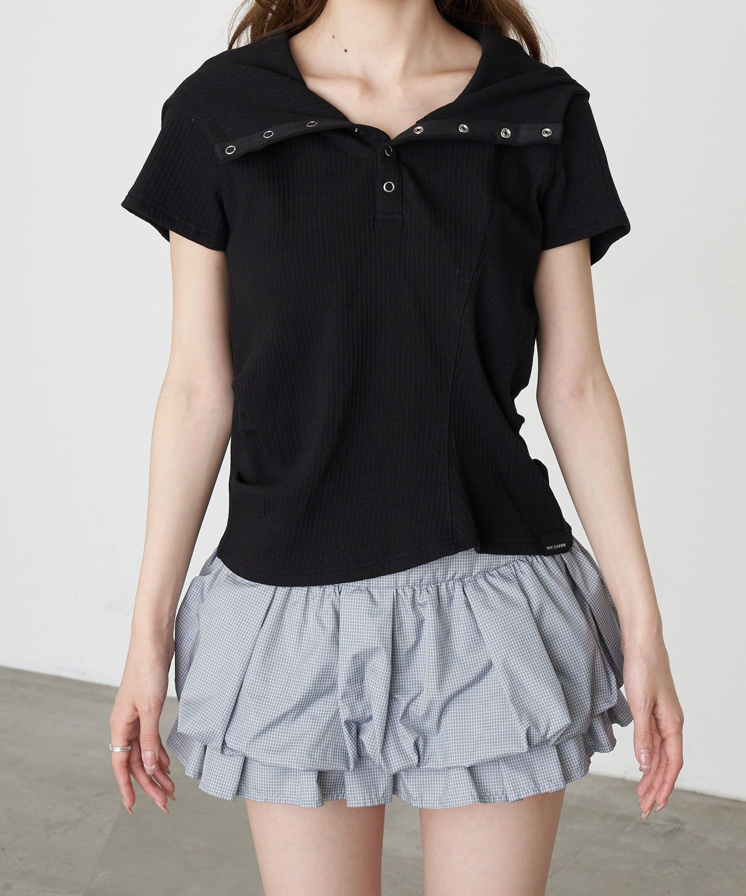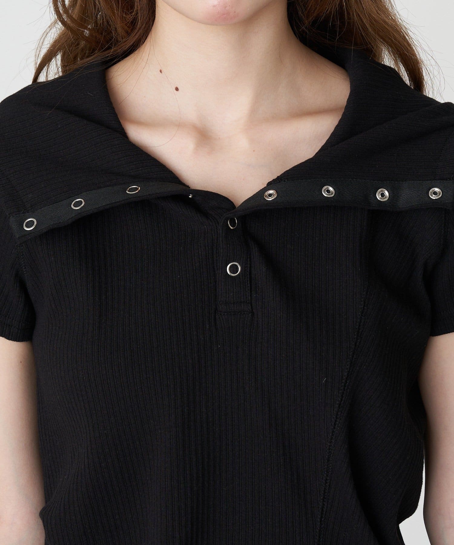 デザイン切り替えフードヘンリーネック半袖Tシャツ