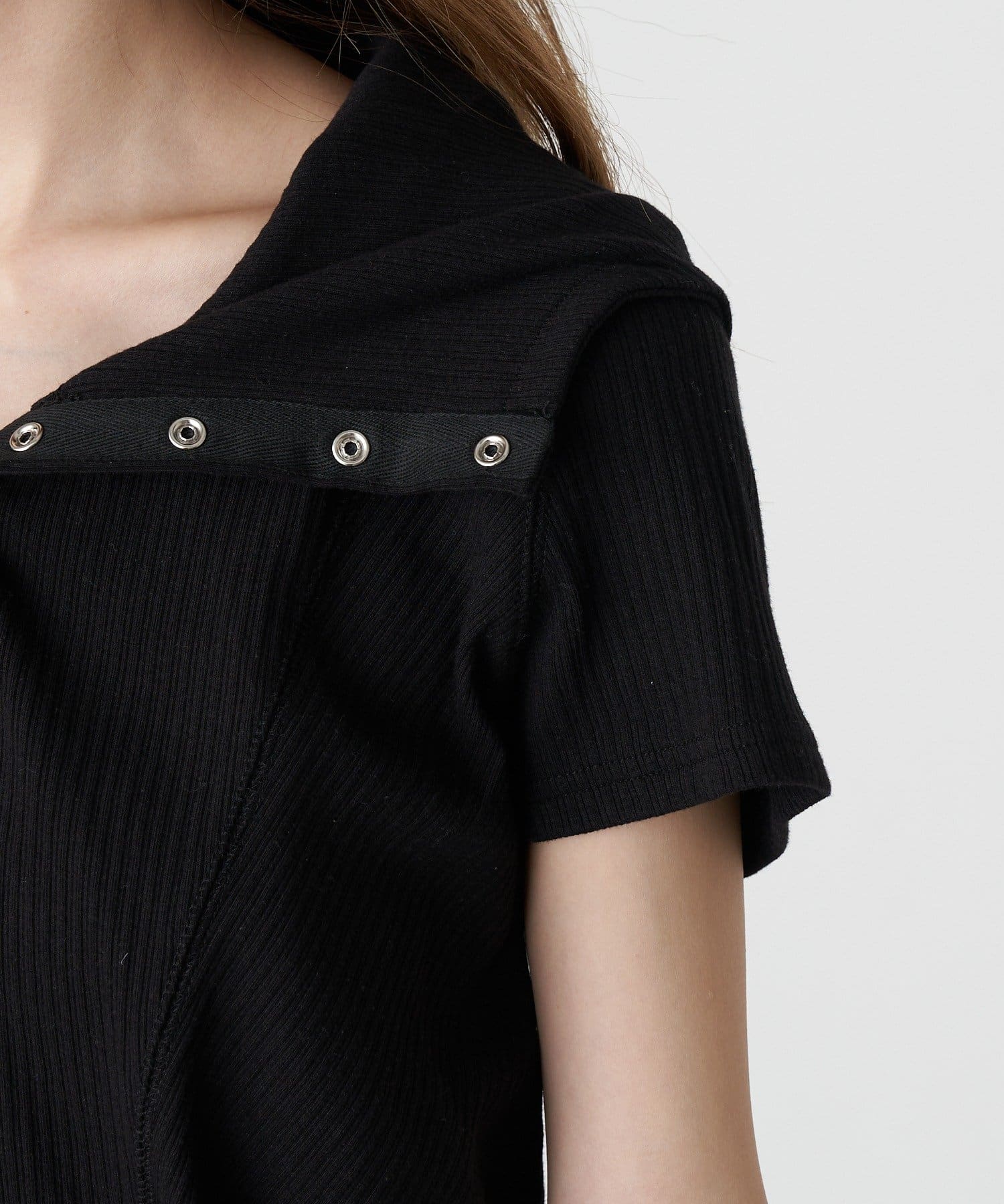 ・アシンメトリーに肩から入る切替デザインが、身体のラインをキレイに見せてくれます。