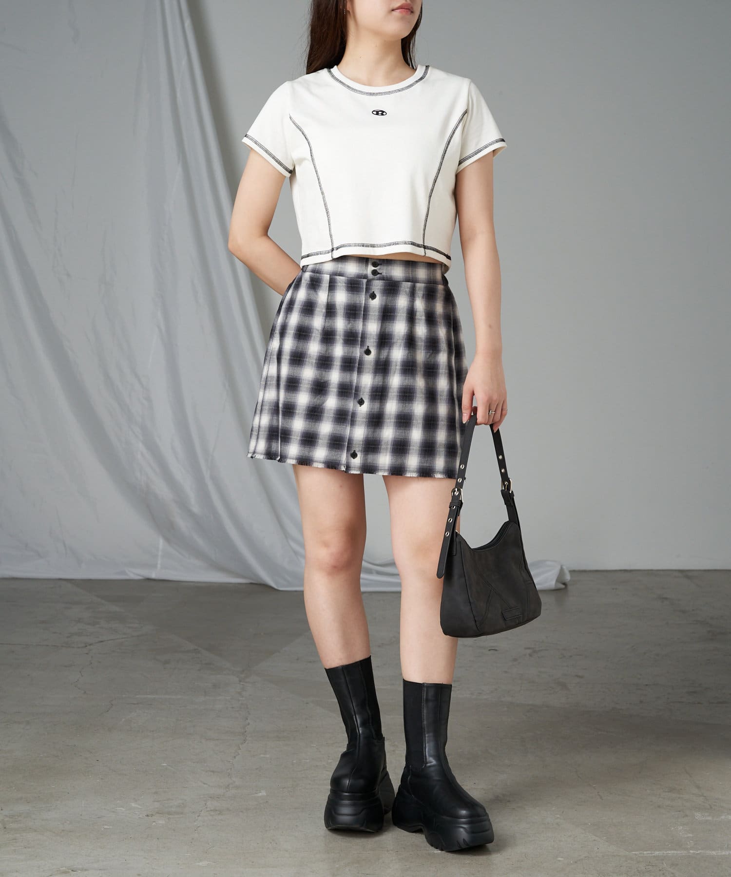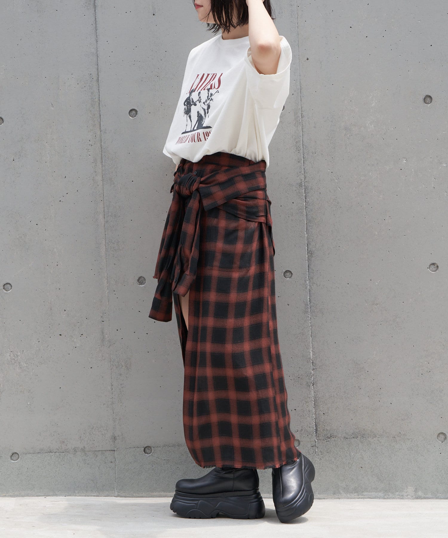 カジュアルなTシャツ合わせでスカートをメインにしたスタイリングも○