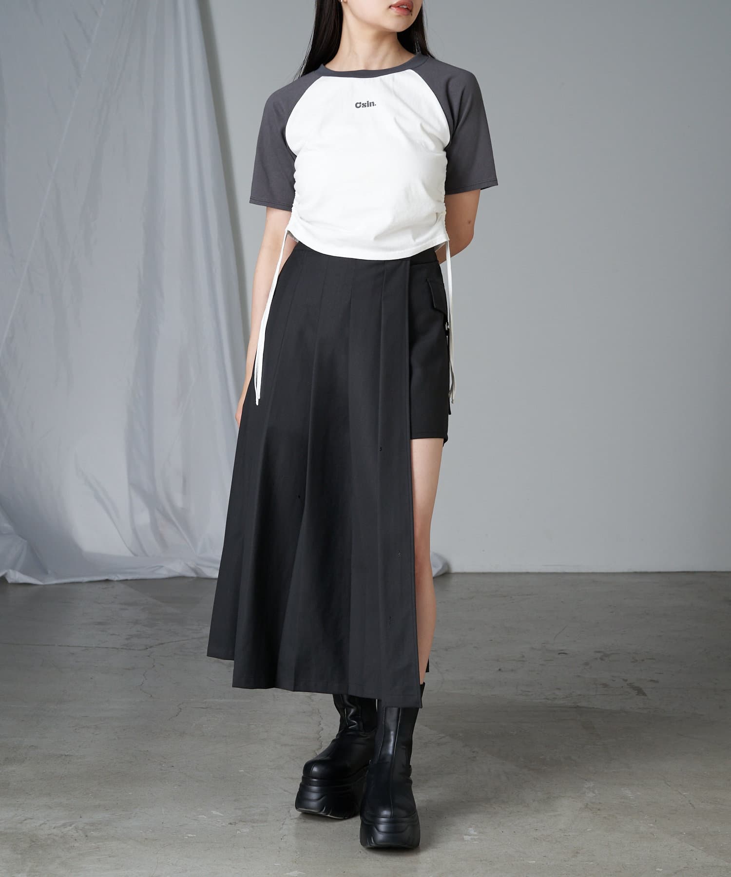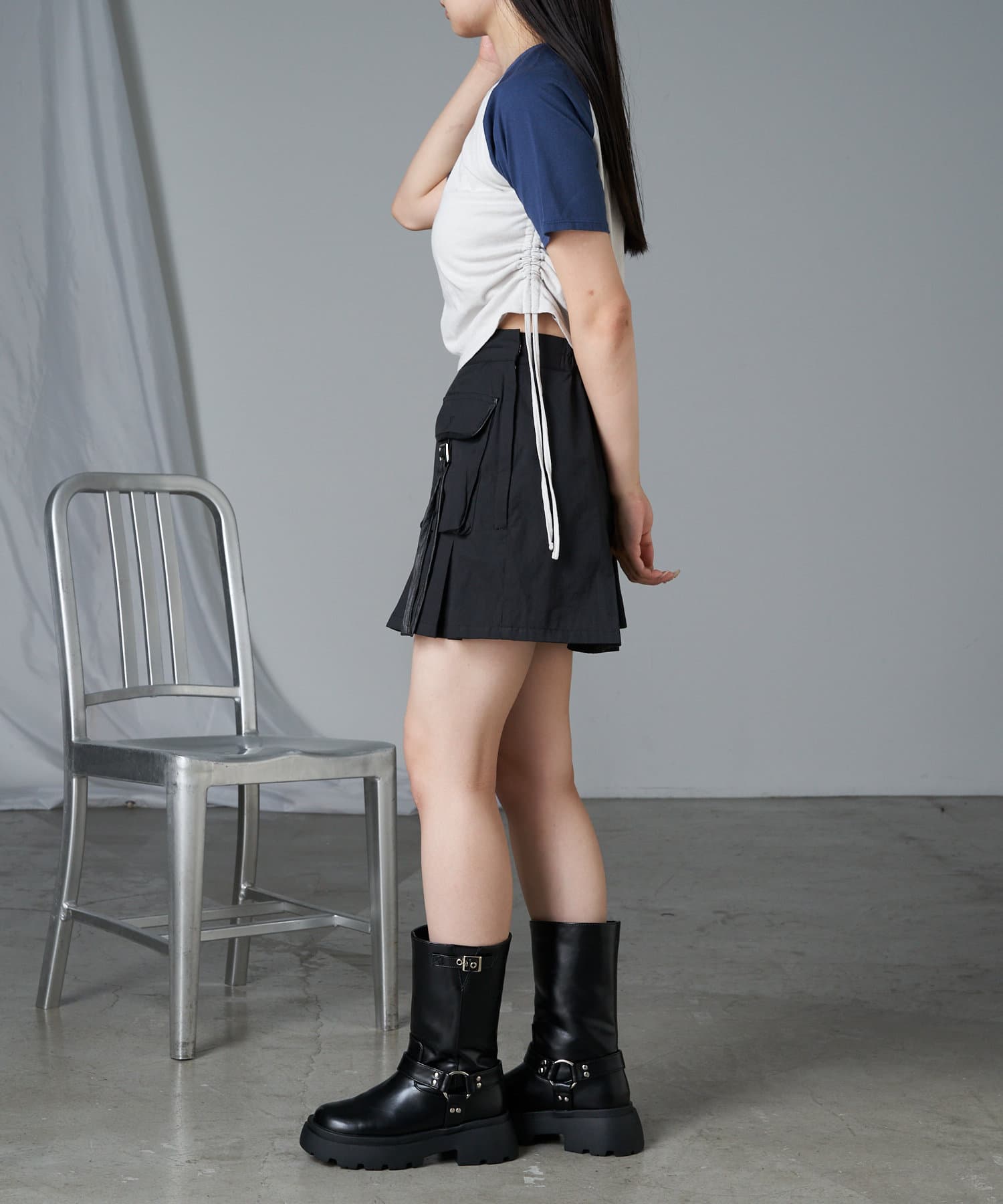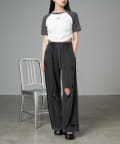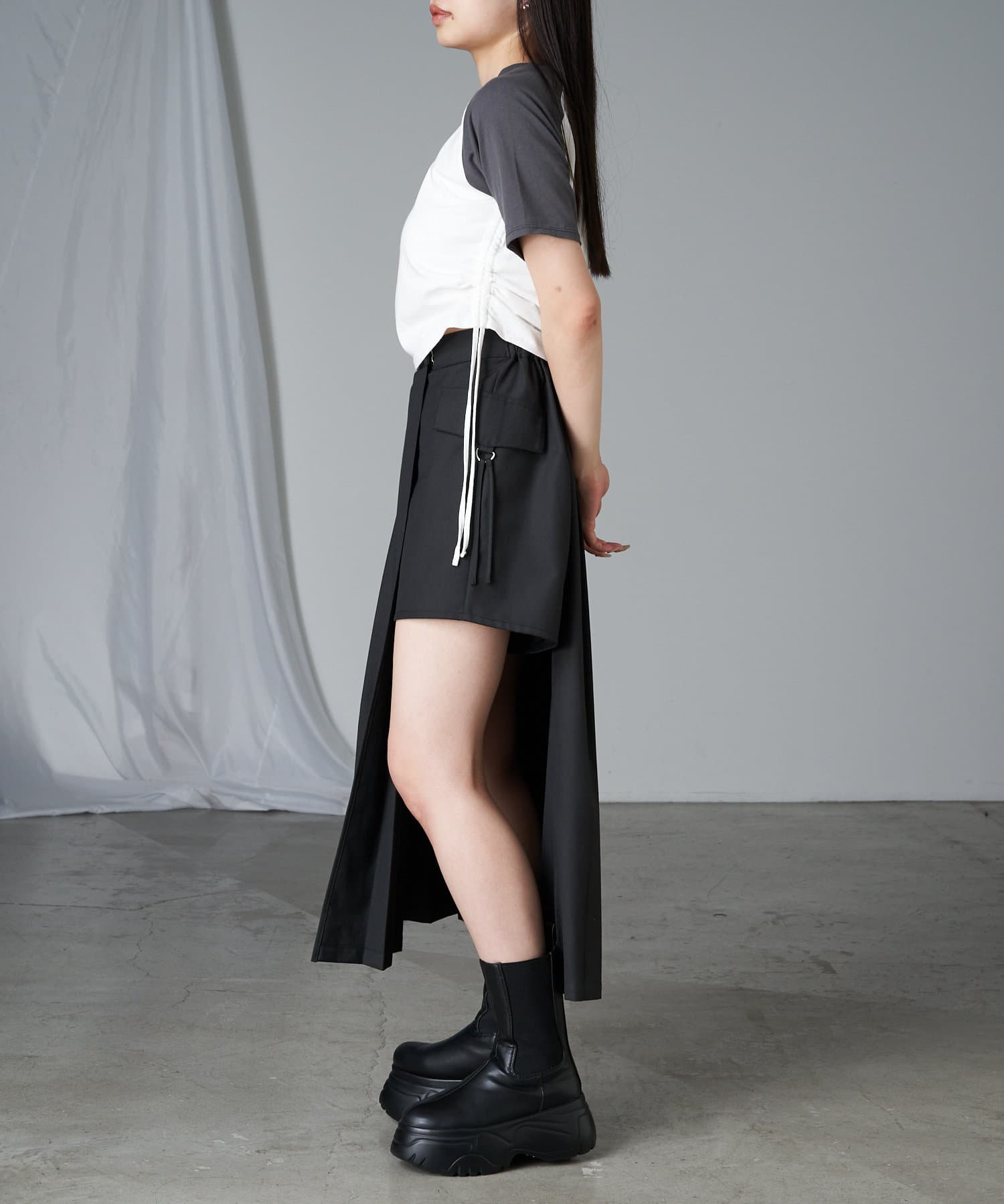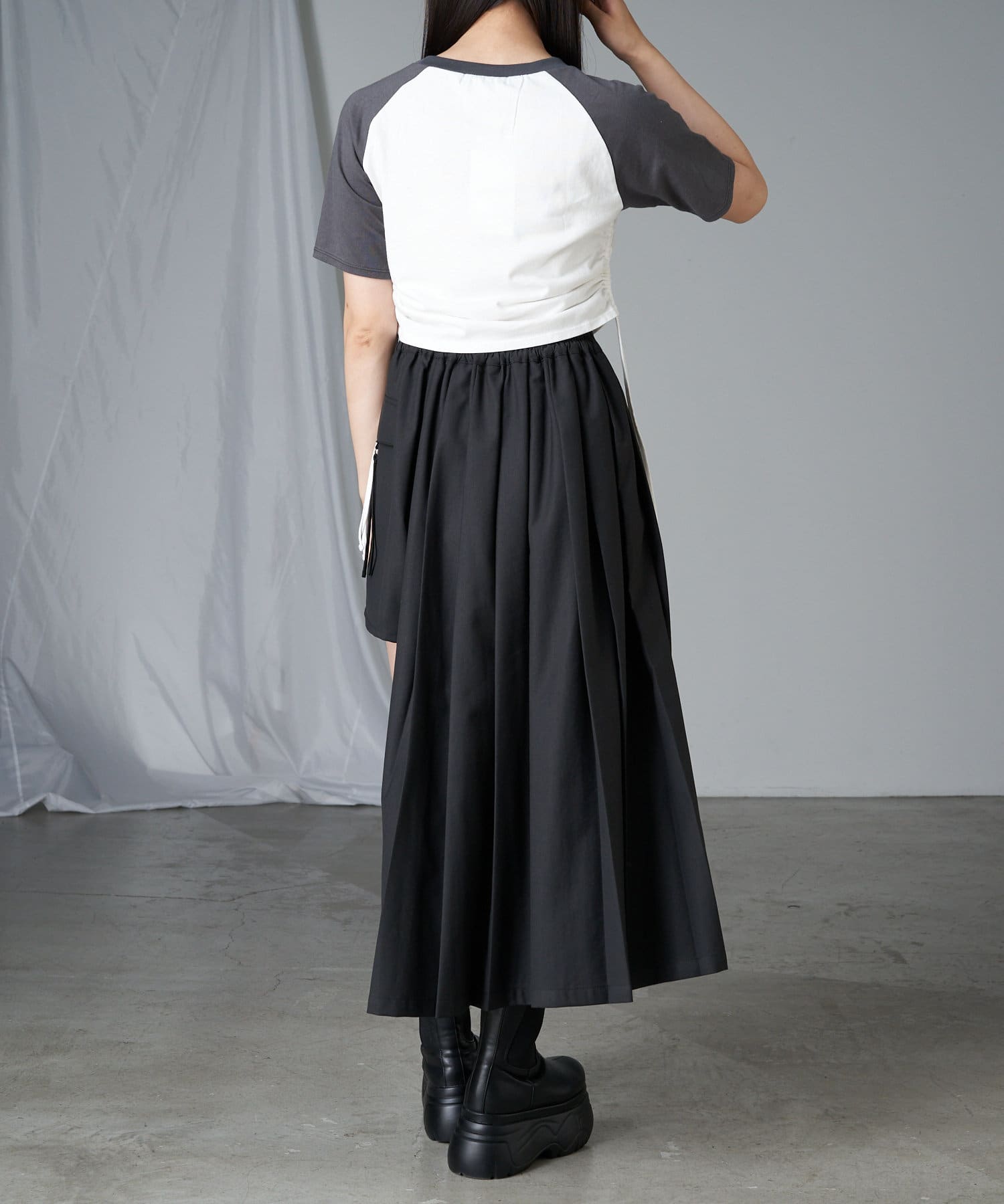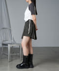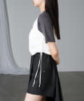 レザーやチュールなど素材の異なるボトム合わせのスタイリングも相性抜群です。