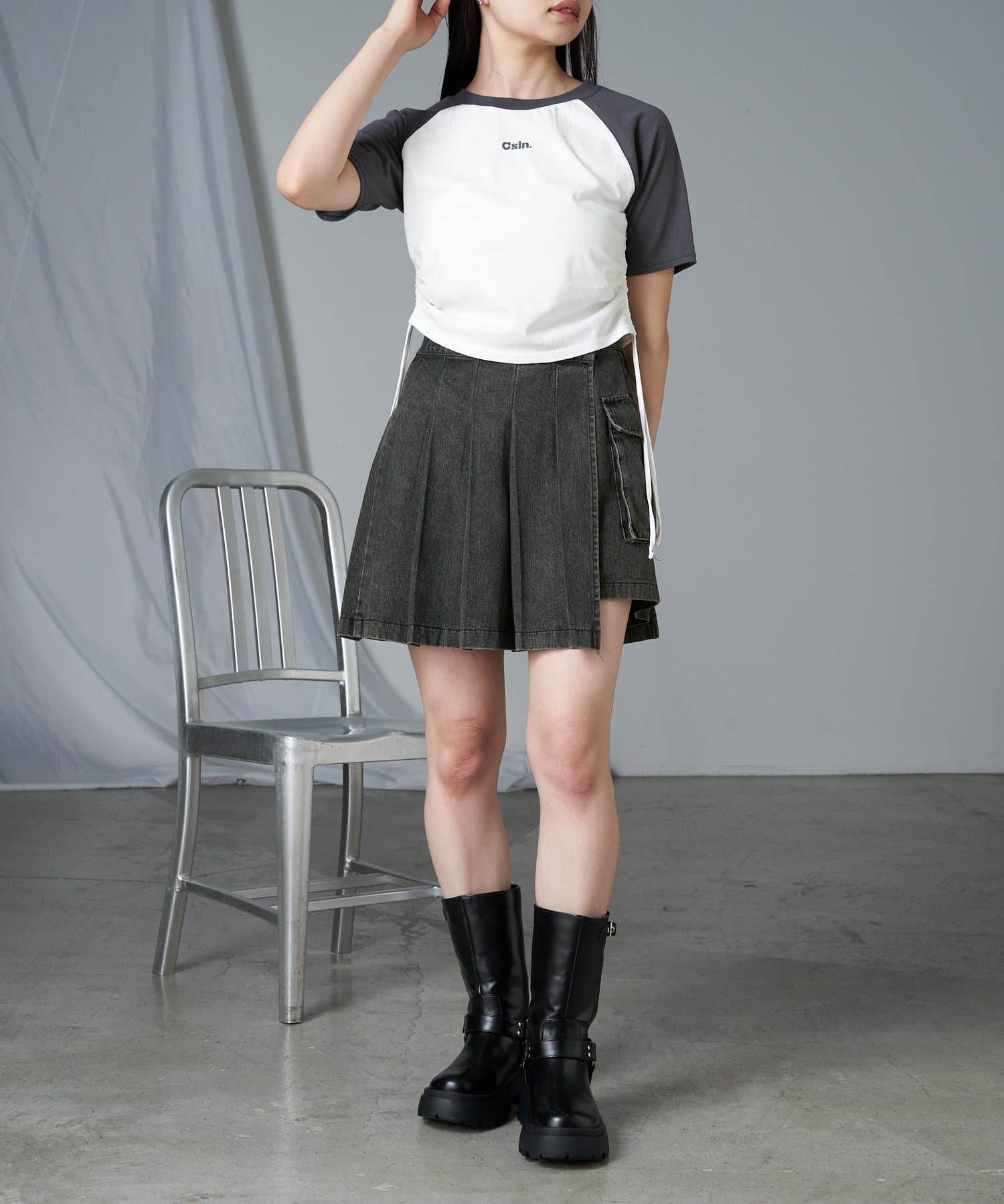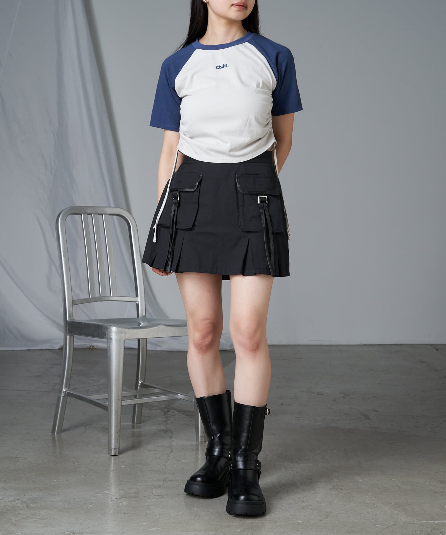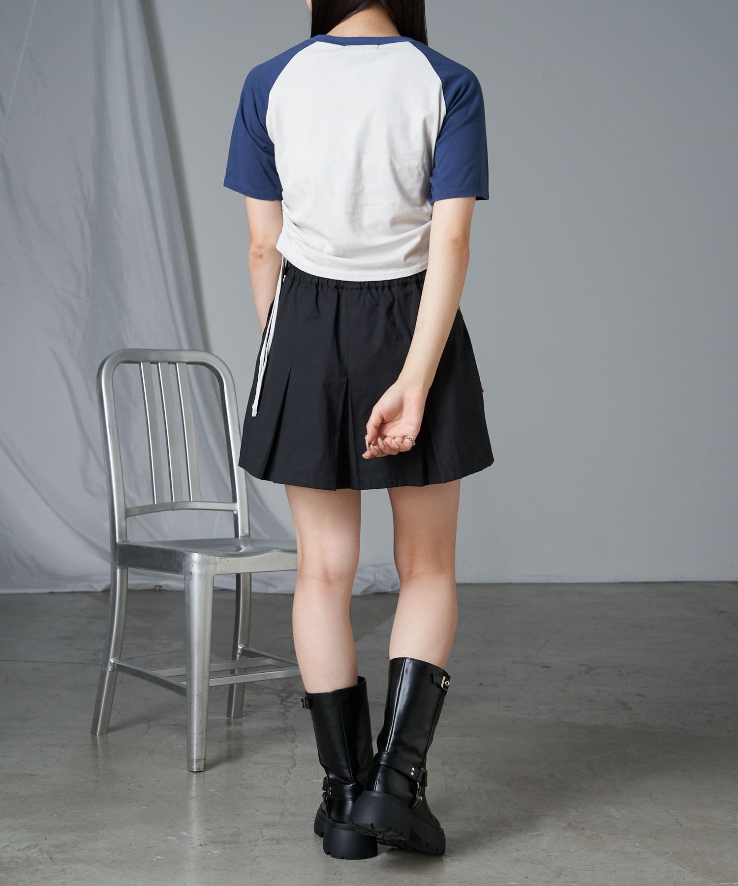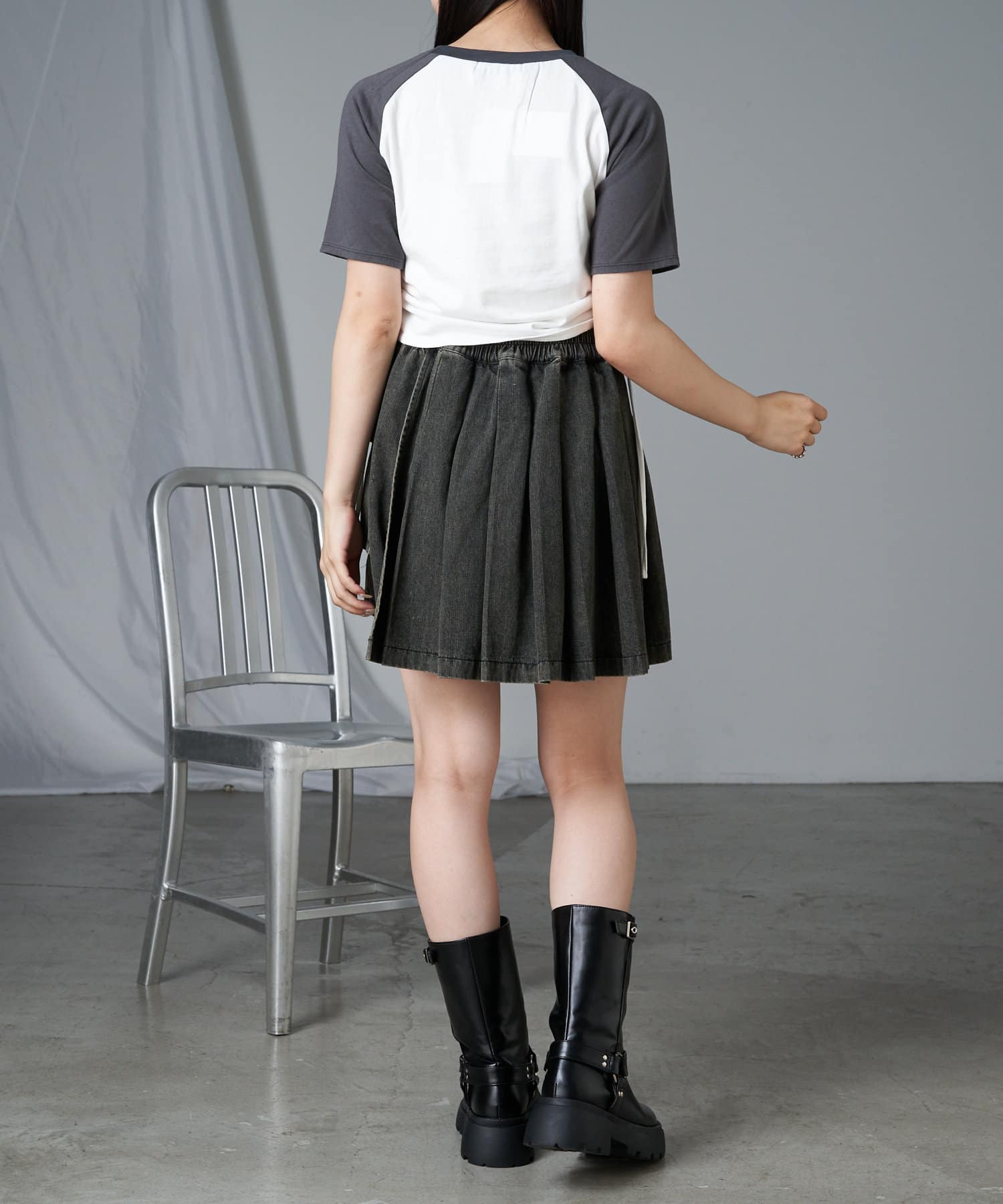 レザーやチュールなど素材の異なるボトム合わせのスタイリングも相性抜群です。