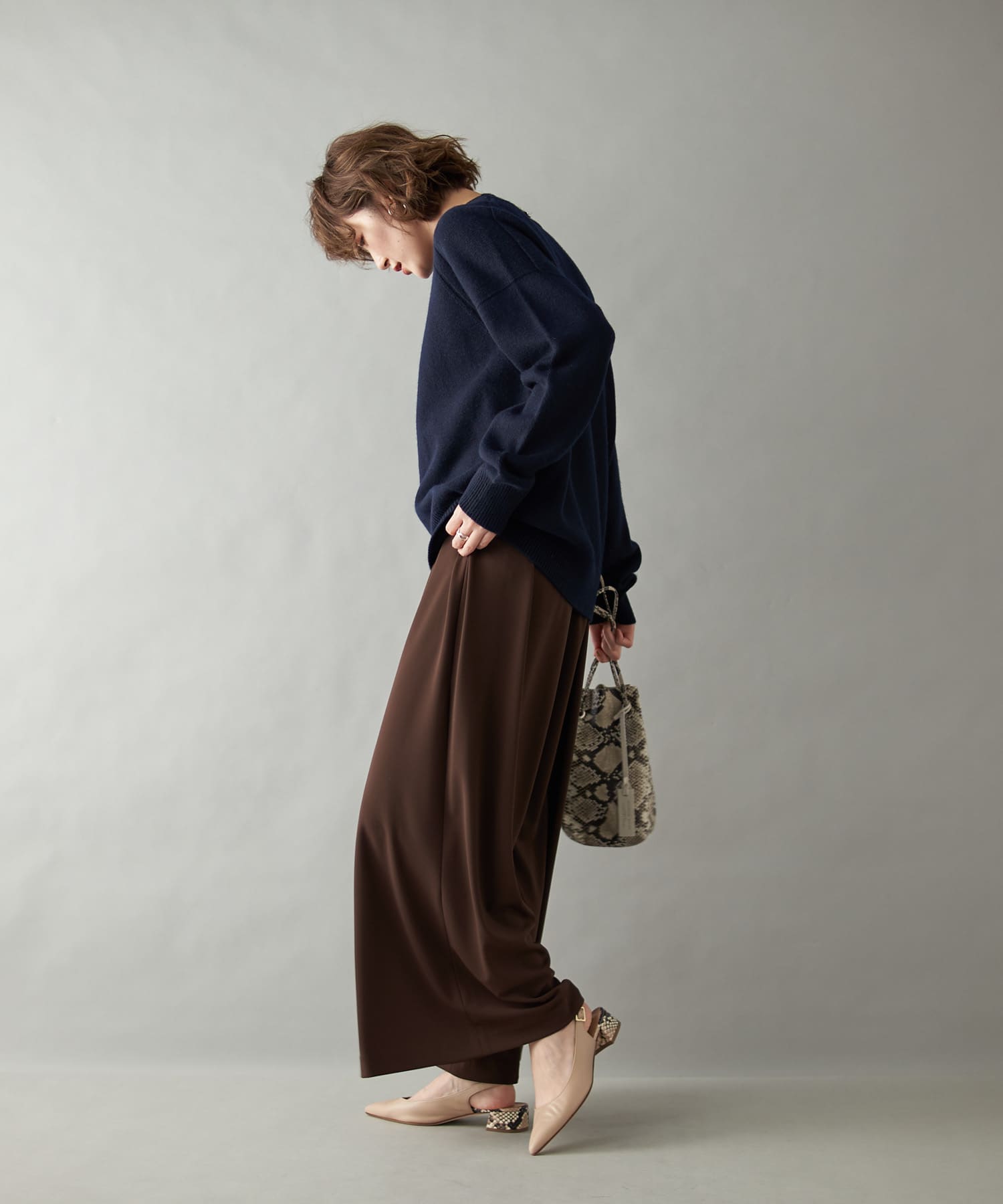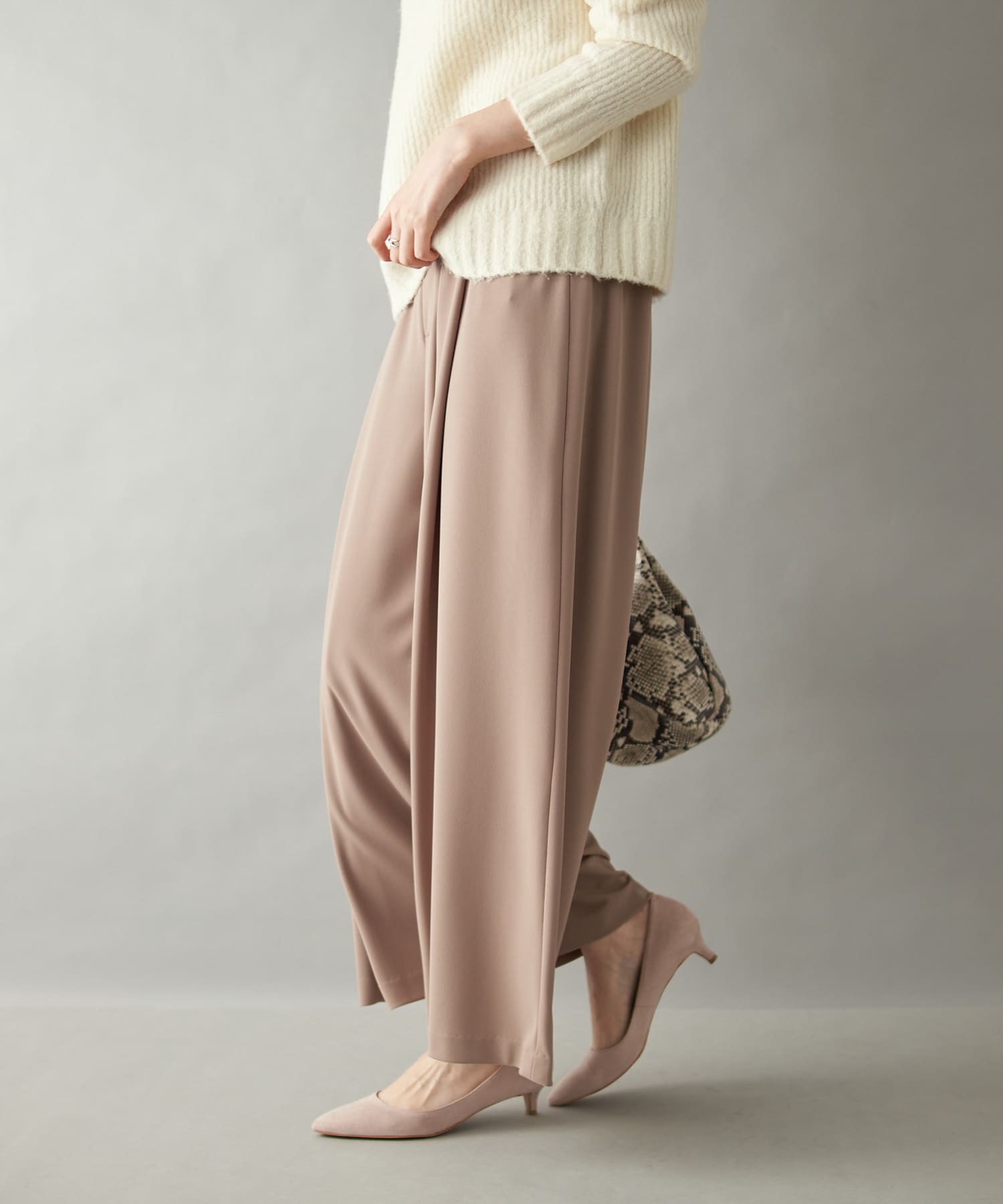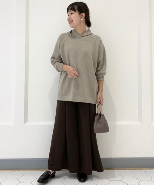 ゆとりのあるサイズ感ながらもタック入りでボリュームを抑え、キレイなシルエットに仕上がっています。
