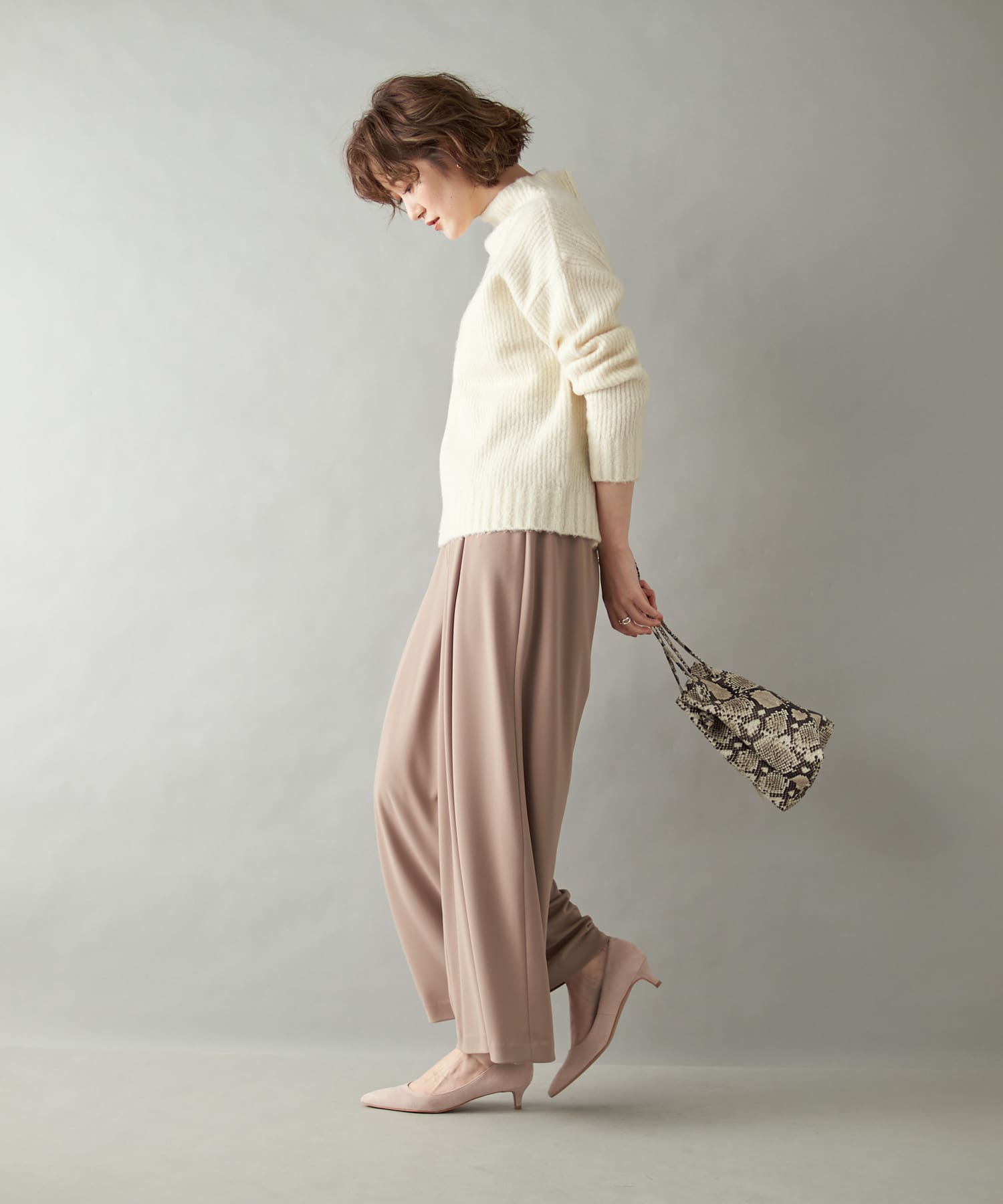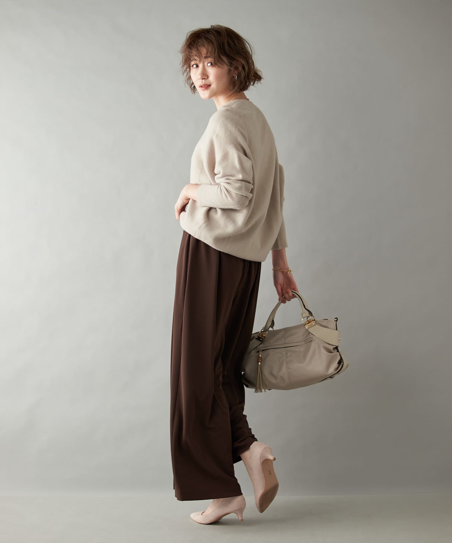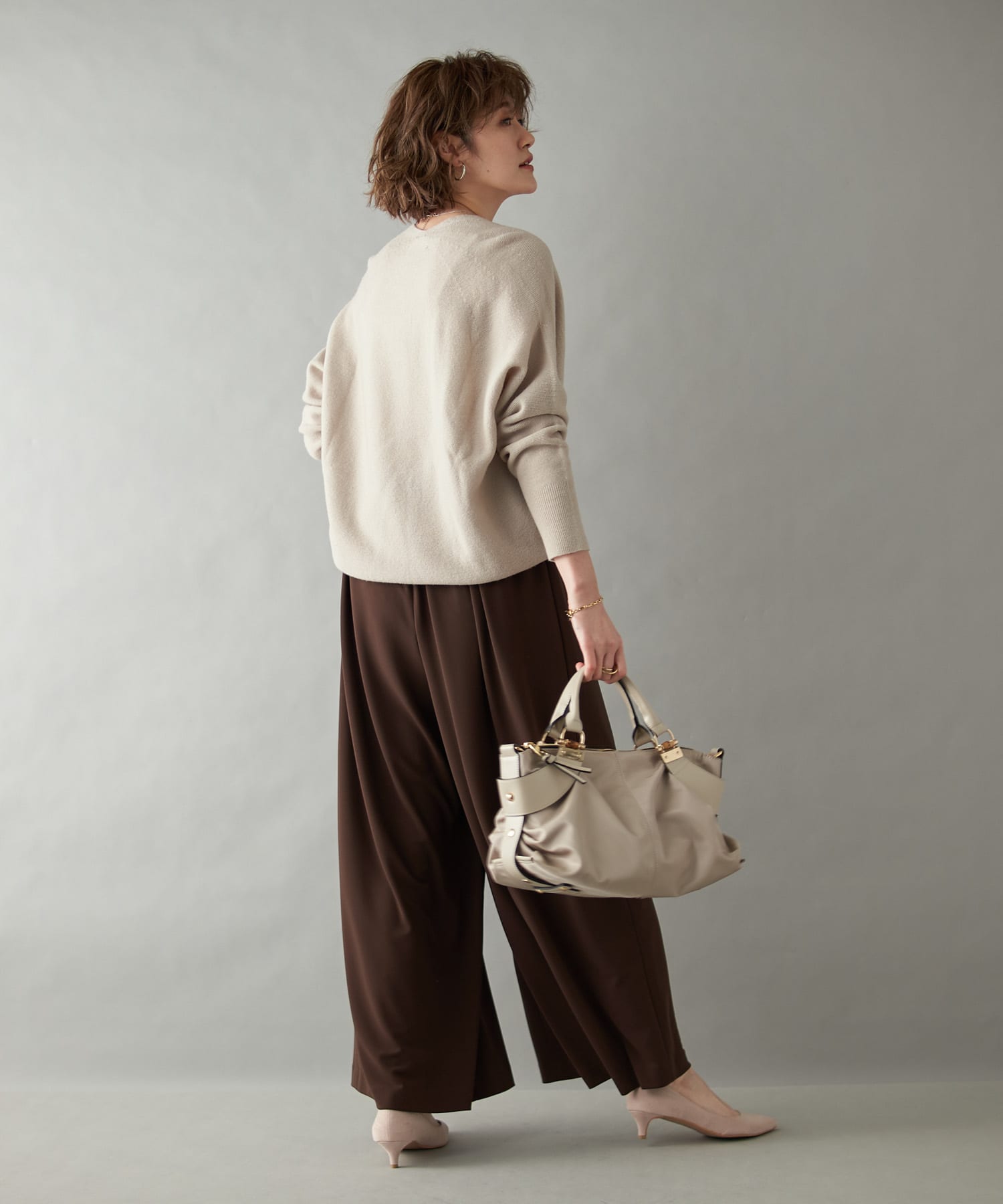 ゆとりのあるサイズ感ながらもタック入りでボリュームを抑え、キレイなシルエットに仕上がっています。
