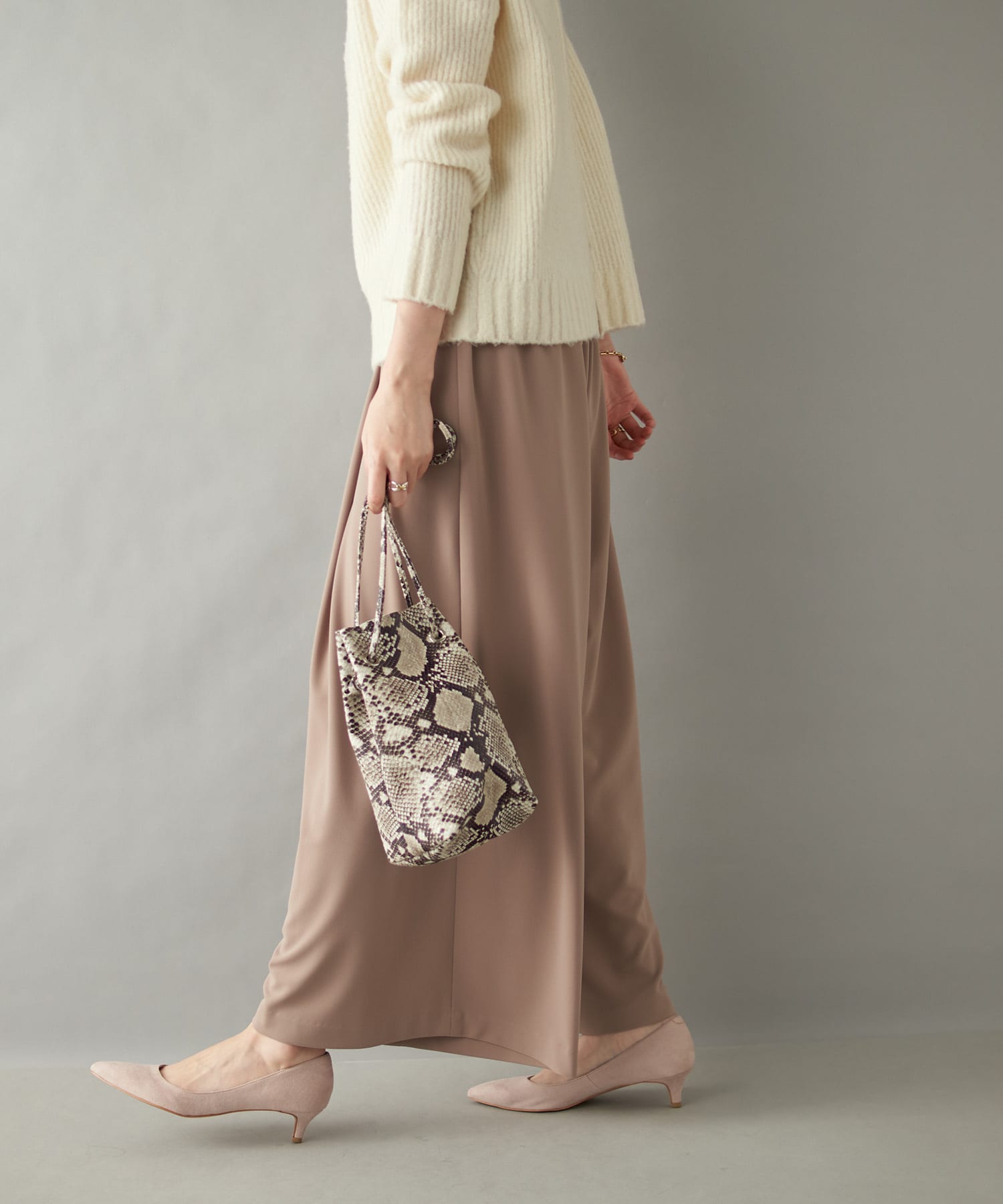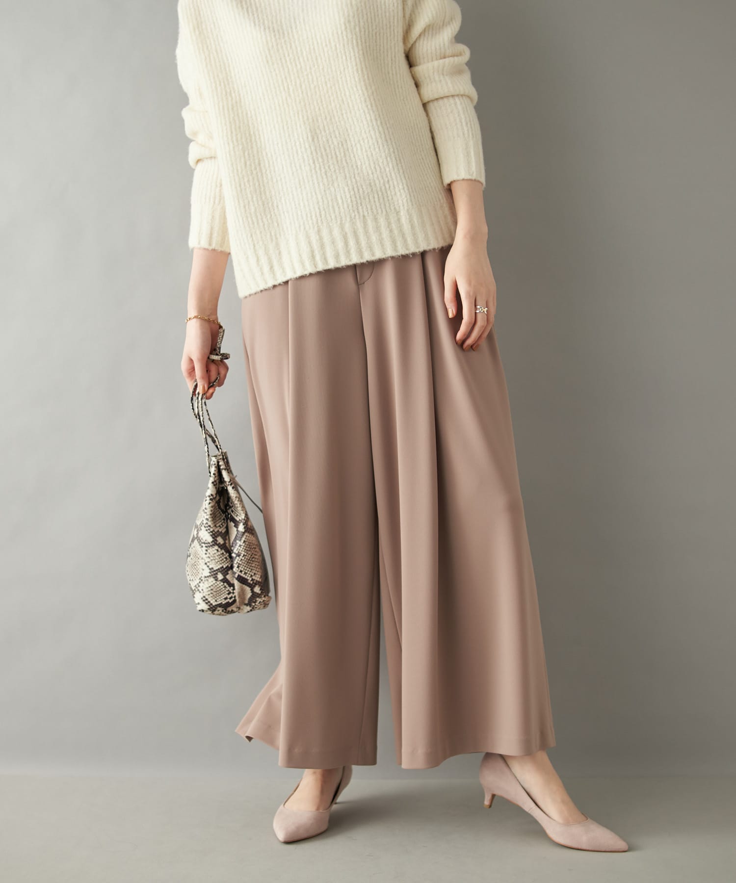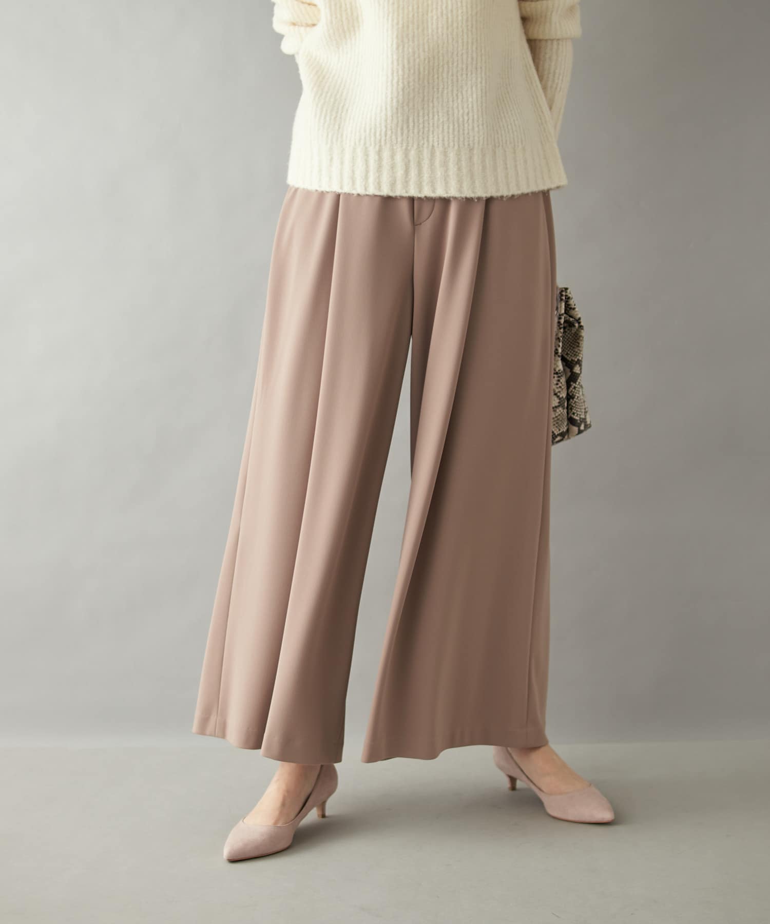 とろみのある滑らかな素材感が心地良いワイドパンツ