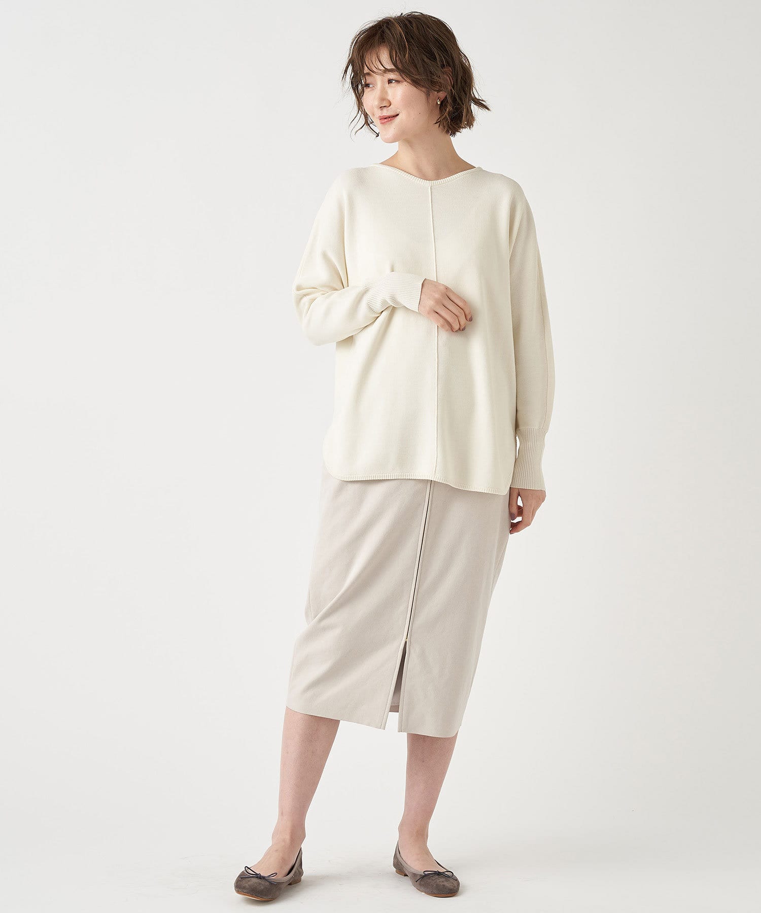 ビッグシルエットのニットやカットソーと合わせた旬の着こなしはもちろん、ベーシックなきれいめトップスと合わせたオフィス用の着こなしもオススメです。