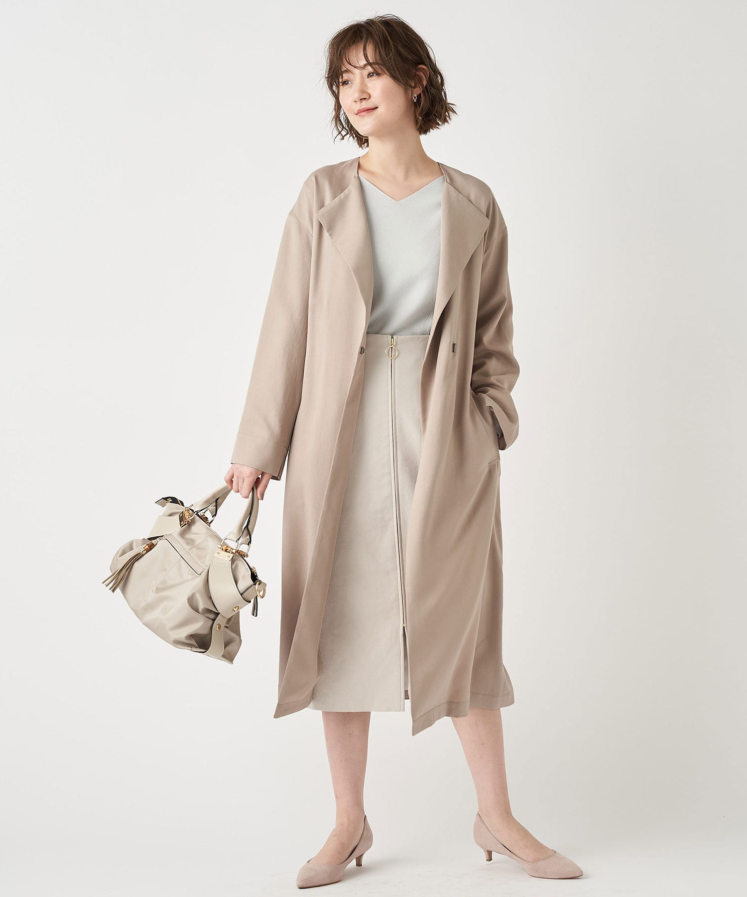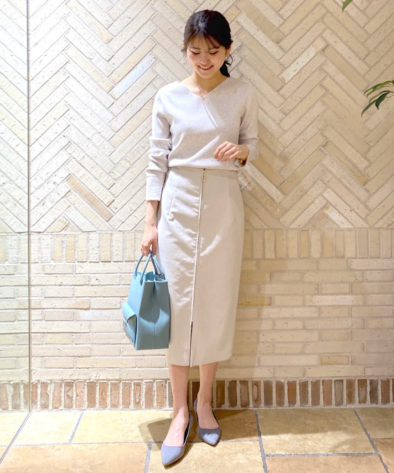 シンプルなシルエットにフロントジップとスリットがアクセントになり、こなれ感をプラスしてくれます。