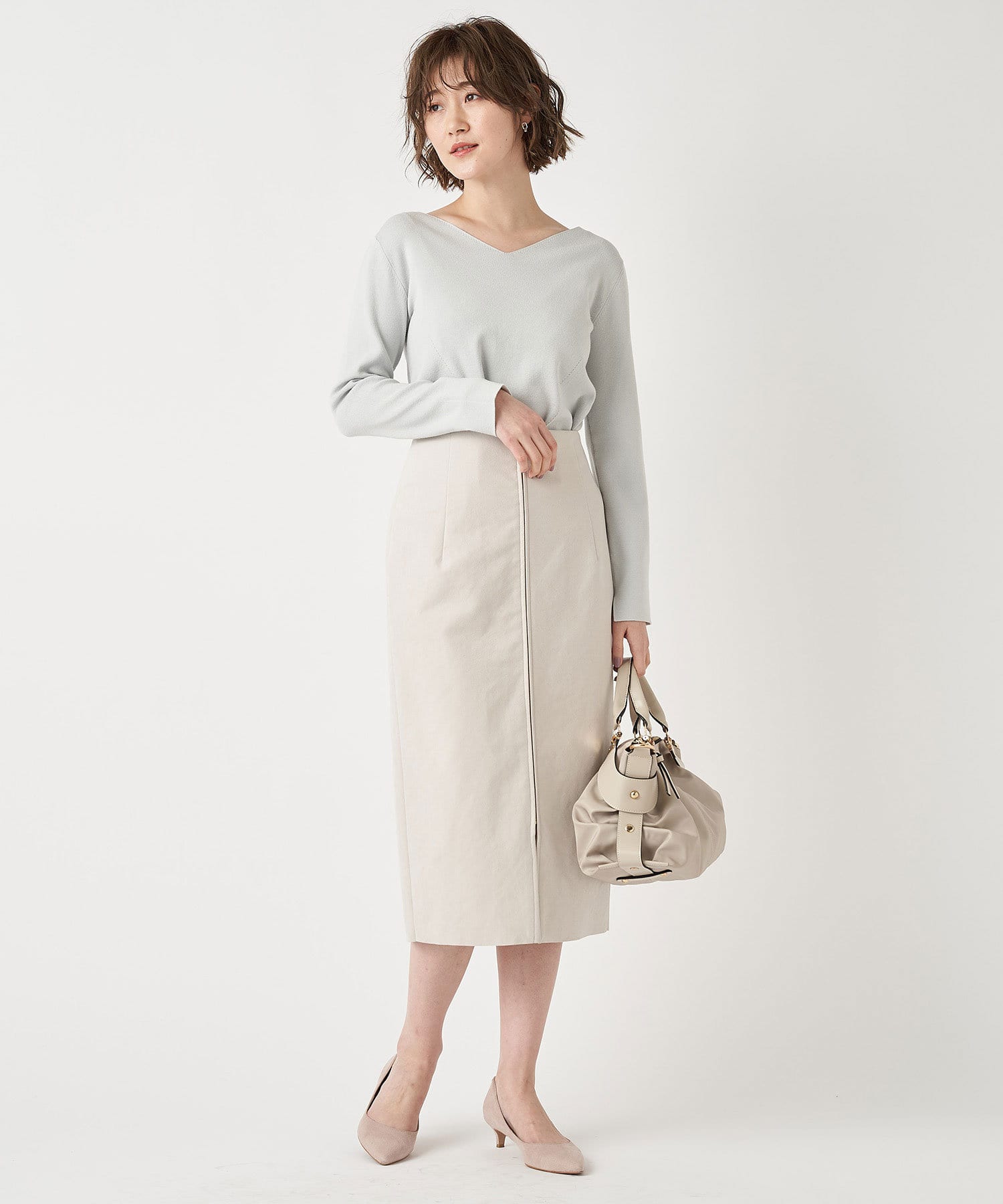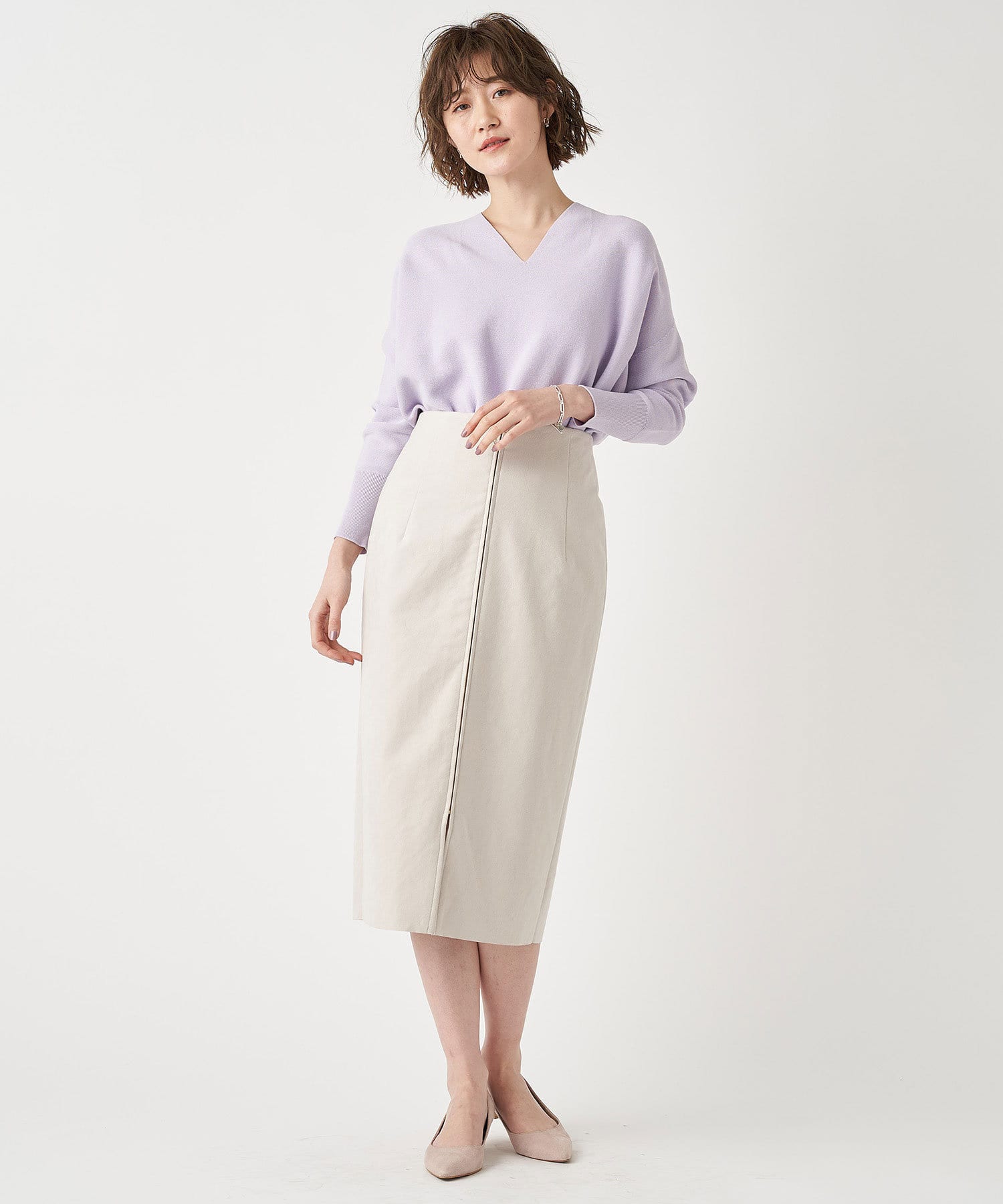 【女性らしいシルエットが魅力】エコスウェードジップスカート