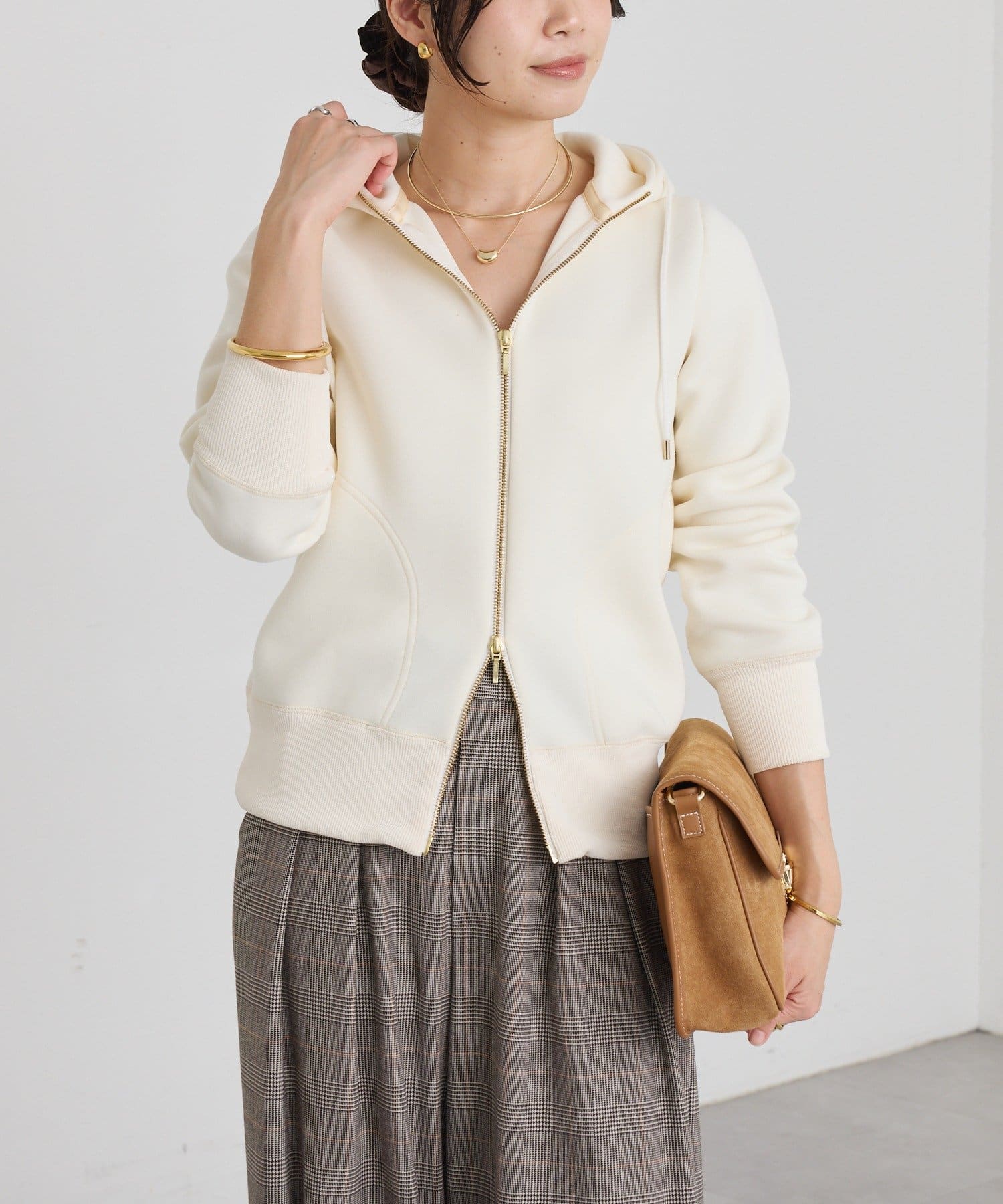 購入場所:パルクローゼットすっきりとしたシルエットに上質な生地感、ゴールドのジップが素敵で、まさに大人のためのパーカーです。
