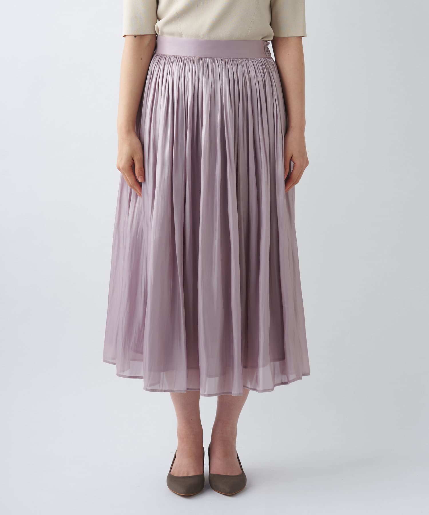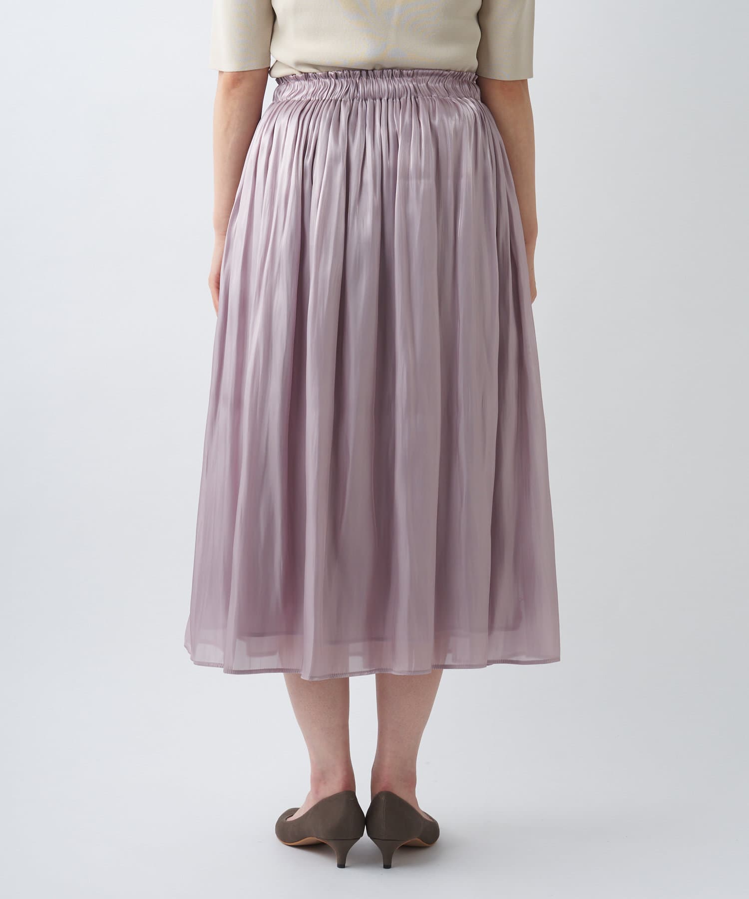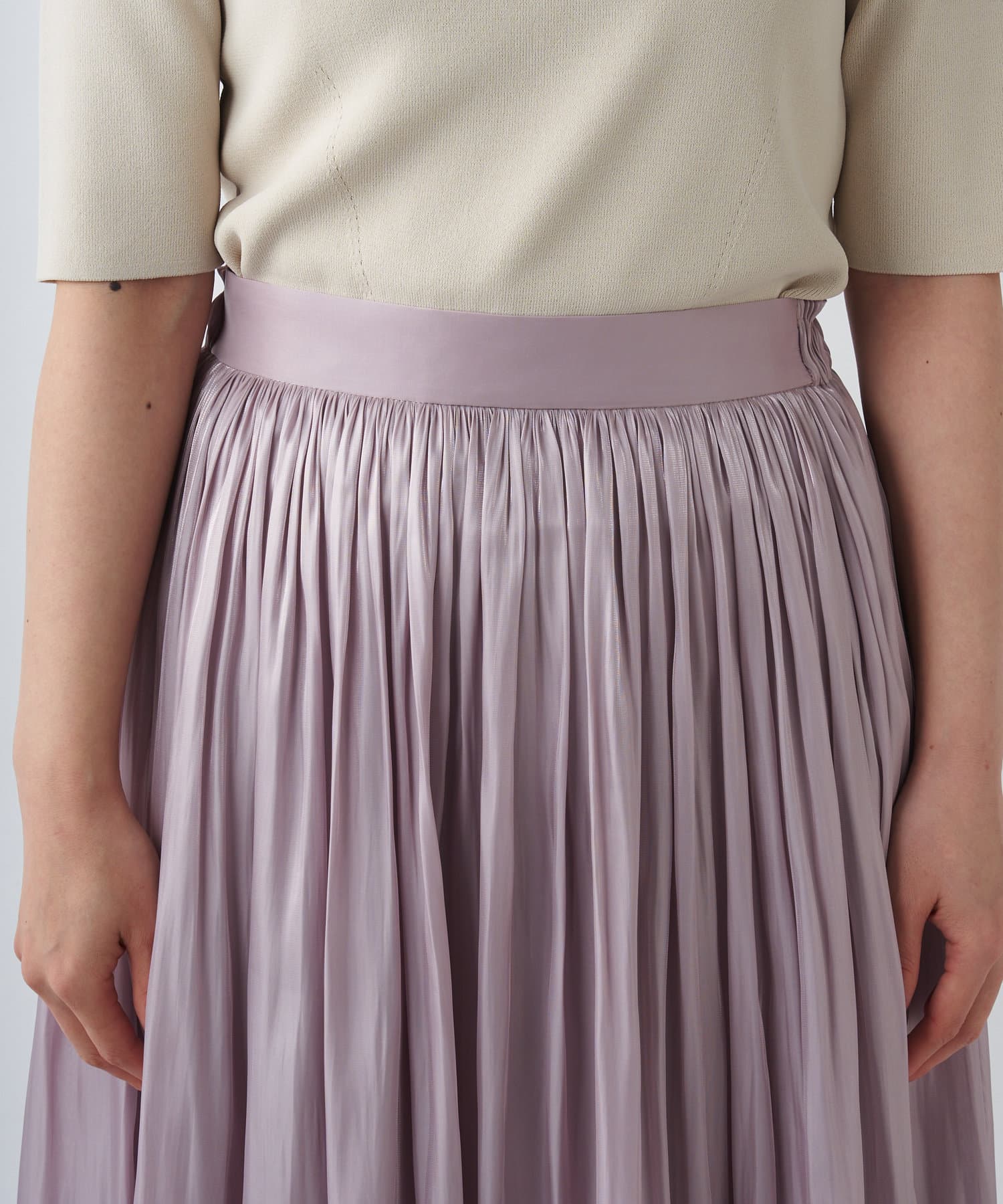 艶のある光沢がワードローブを華やかにしてくれるスカート。