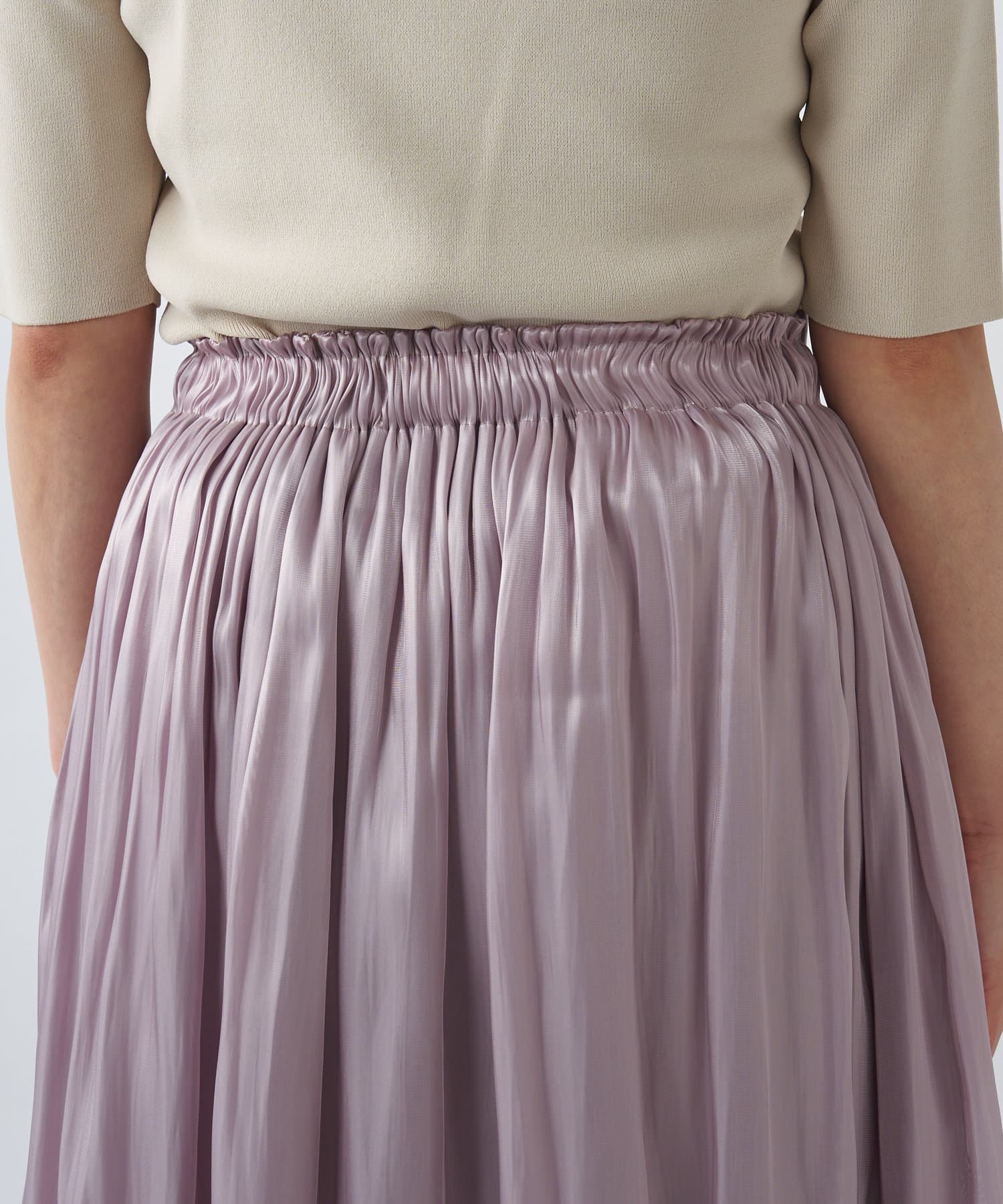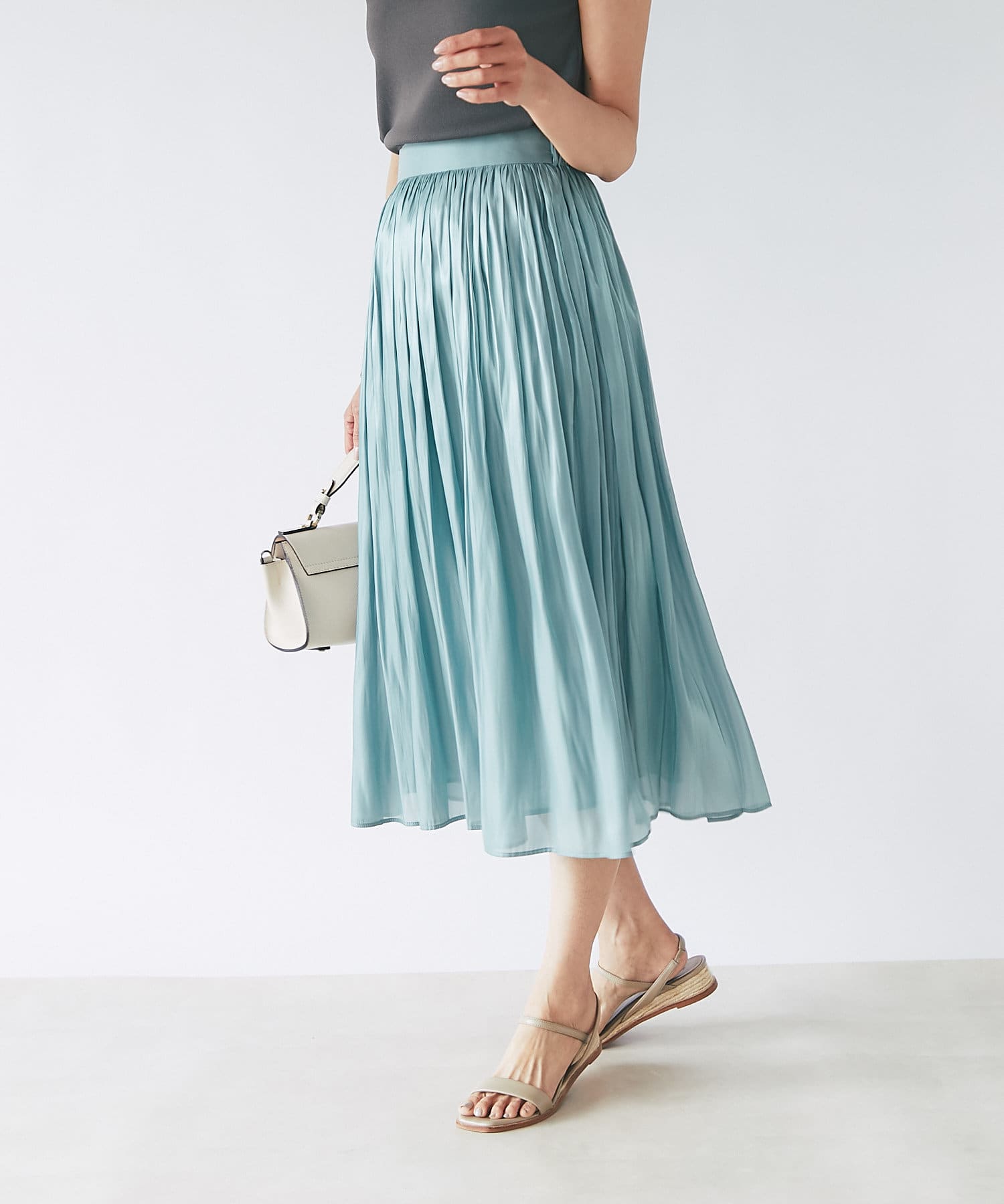 #今買いアイテム#ツヤ感#プリーツ#デイリー#シーズンレス#カラーアイテム#お出かけコーデ#ウエストゴム#無地#大人シック#褒められアイテム#フレア#ウエストゴム#シンプル#体型カバー#セレモニー#秋#秋物#光沢スカート