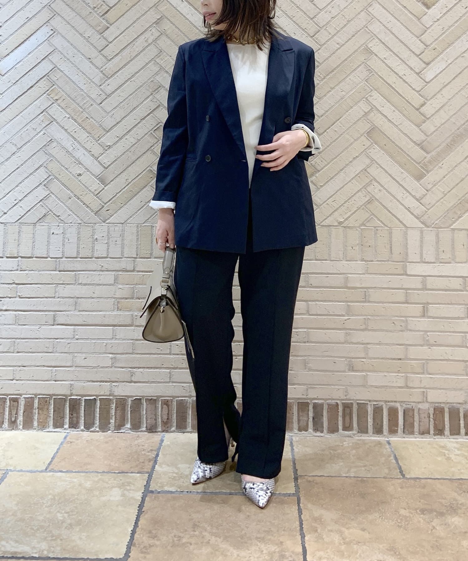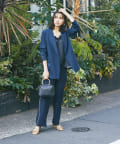スポーティーになりすぎない、深みのあるこだわりのネイビーは、ブラウスにあわせても