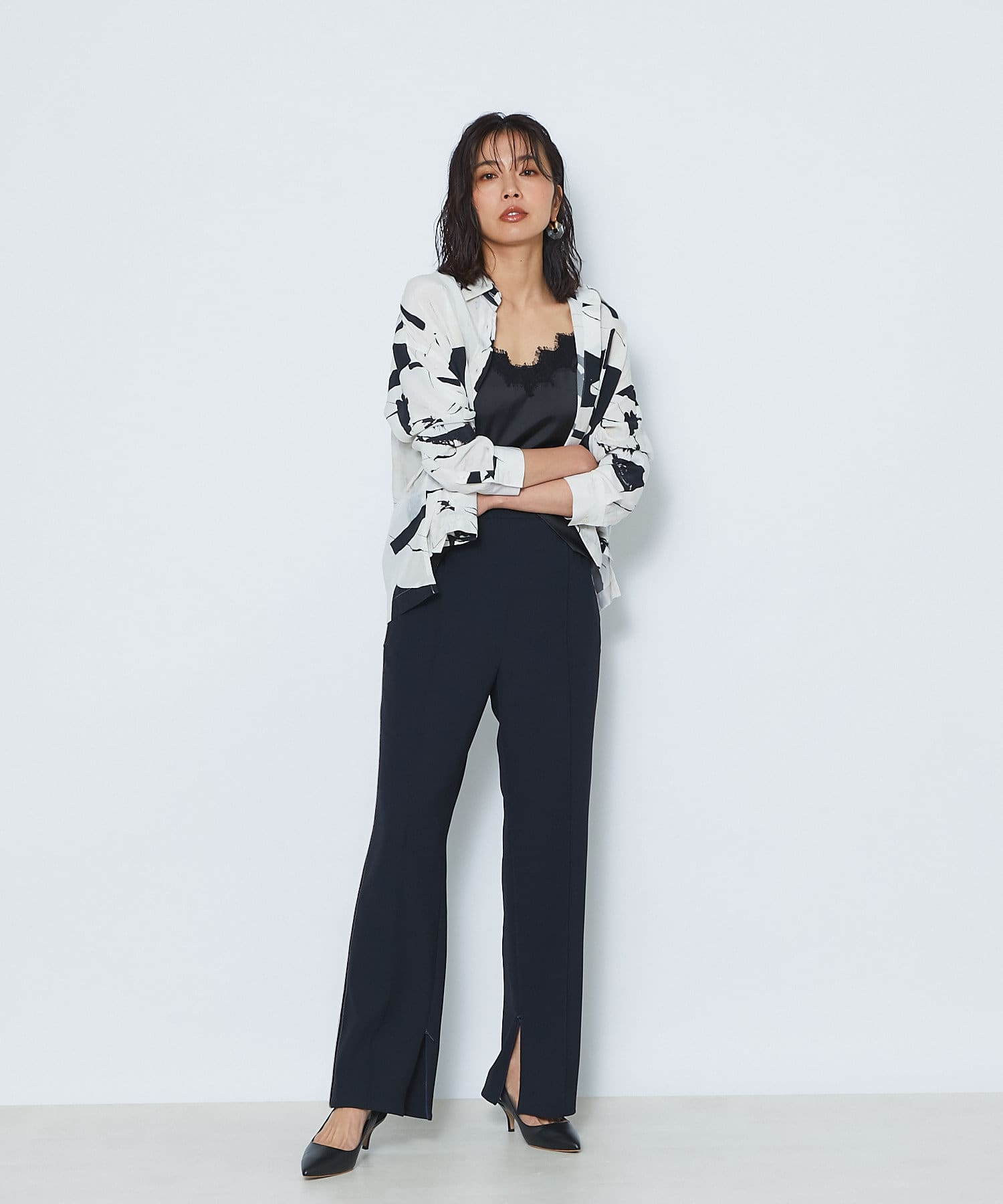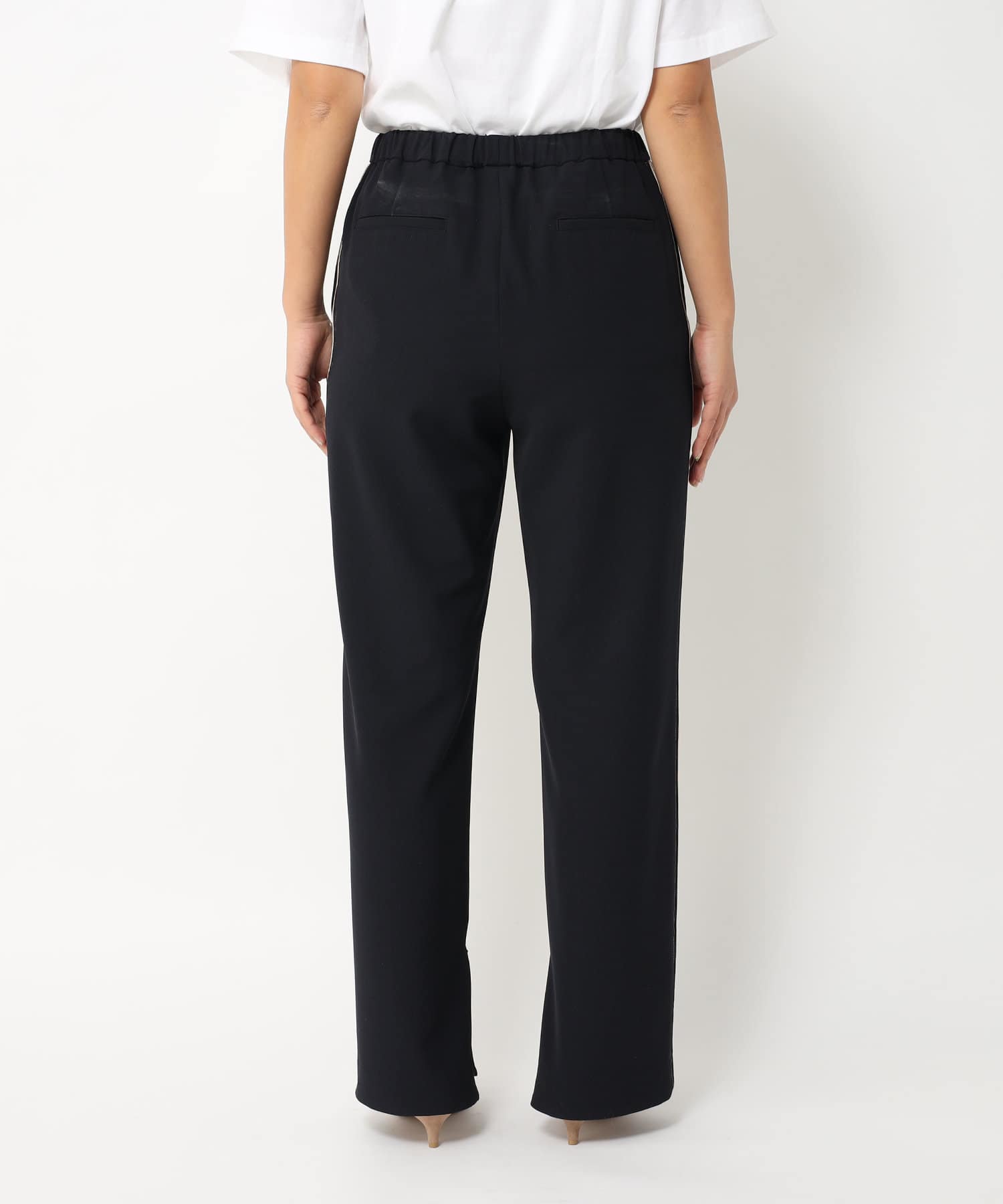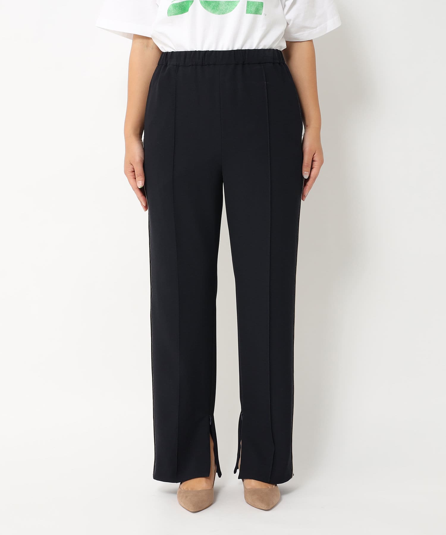 裾にかけてスッキリしたデザインは、上品さも兼ね備え、夏はヒールにあわせてもお洒落に着こなせます。裾のファスナーを開けて、フレアパンツに2way仕様も嬉しいポイント。