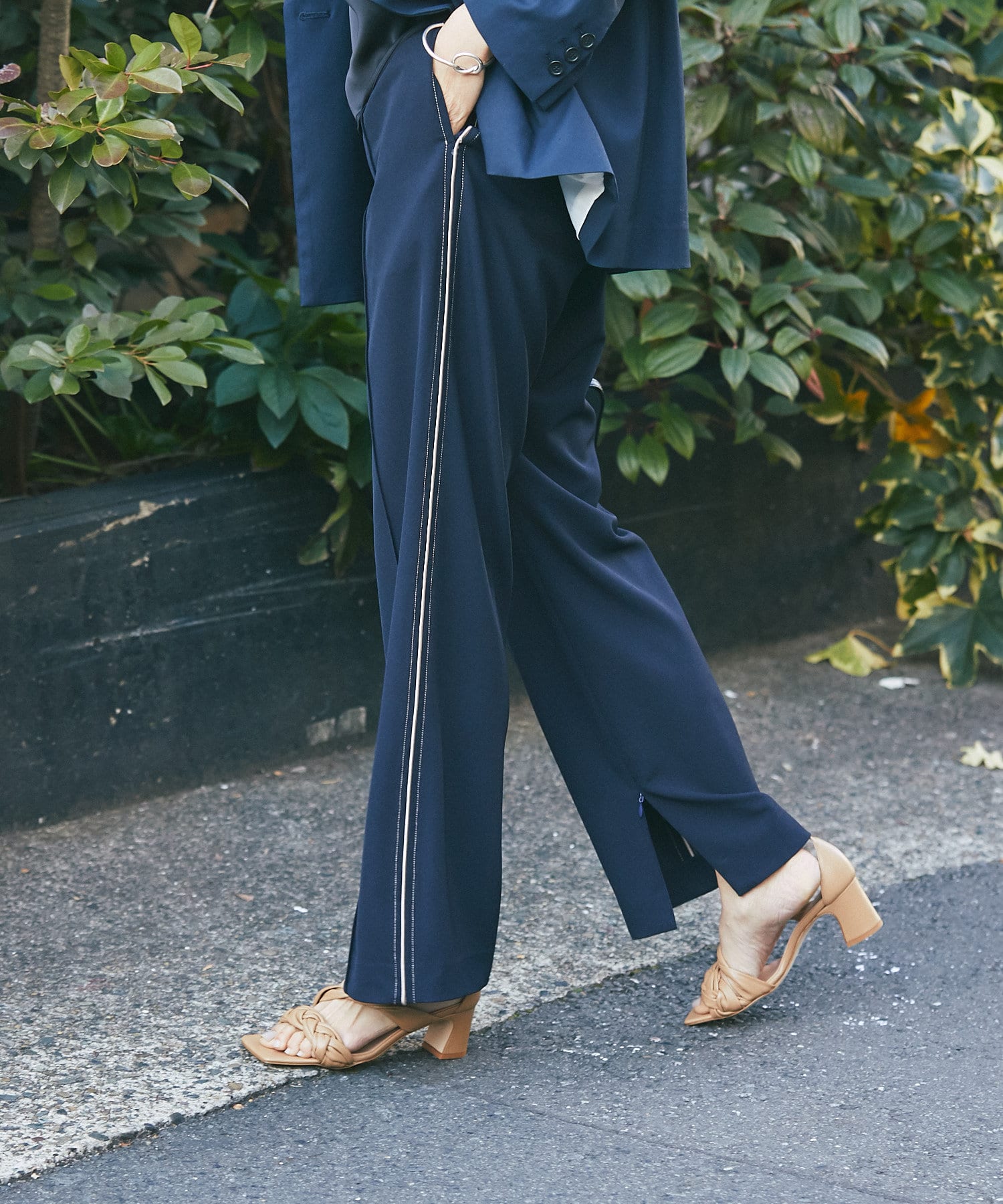 サイドラインがオシャレなパンツ。裾にスリットをあしらった遊び心あるデザインです。