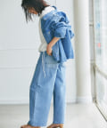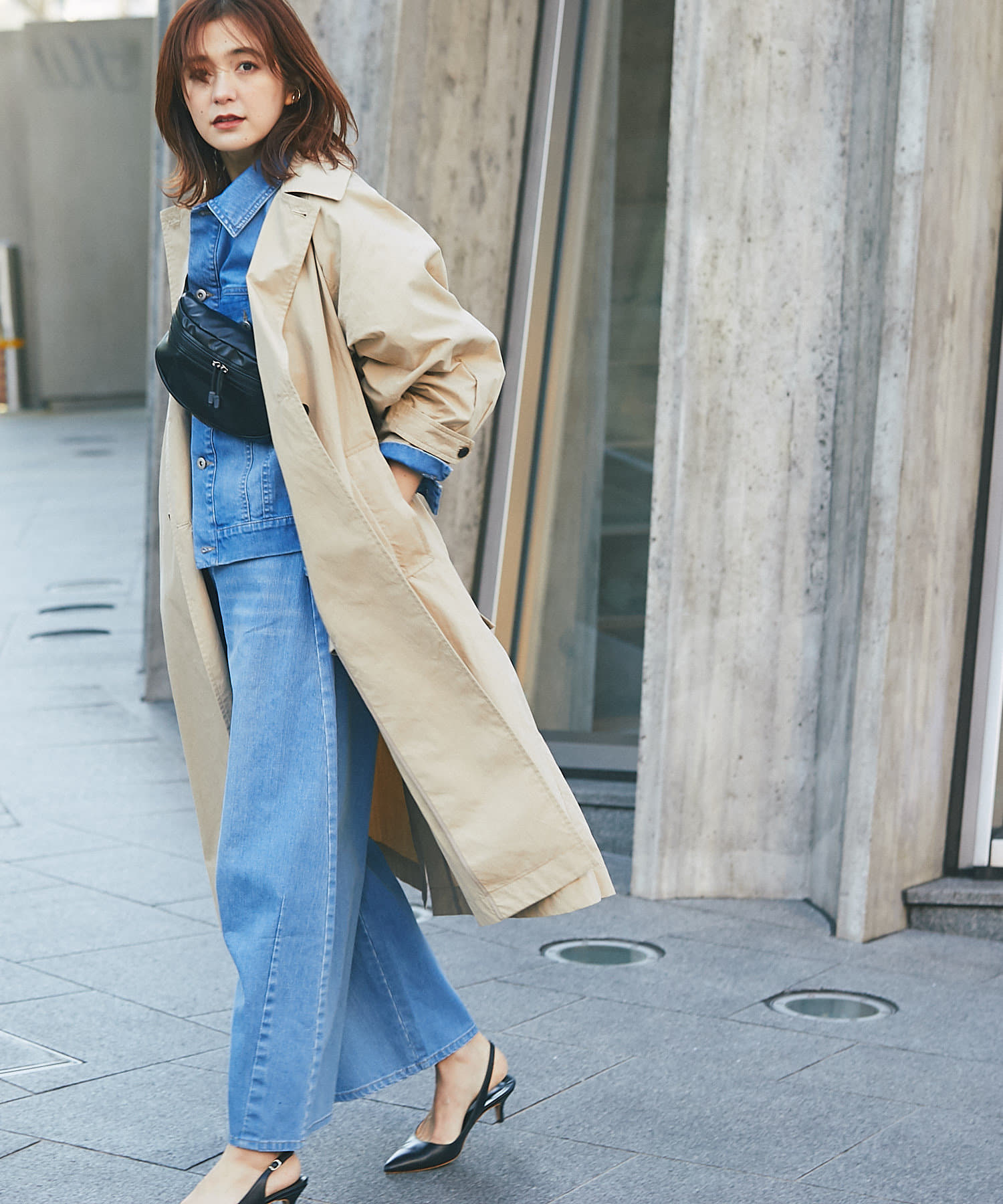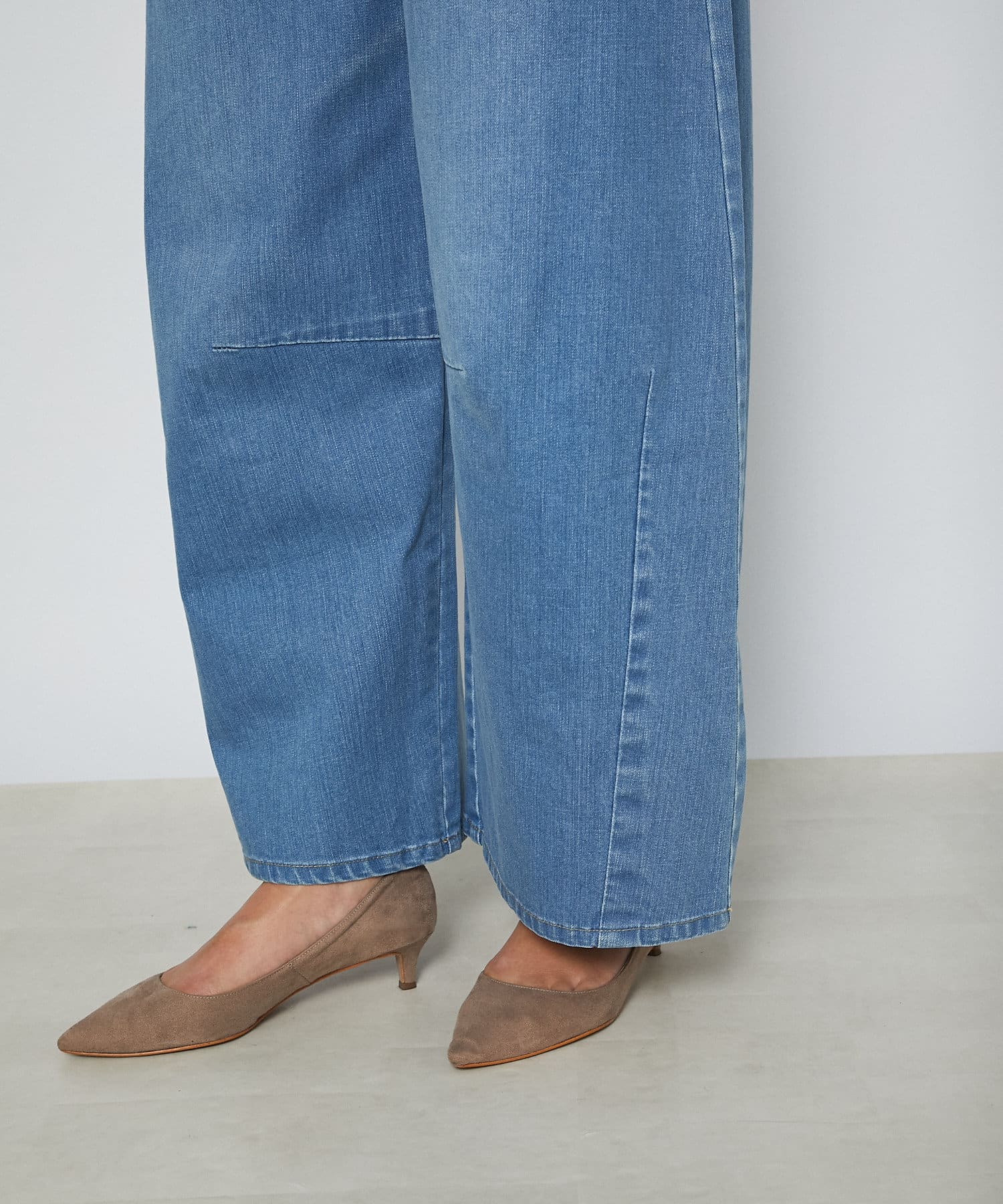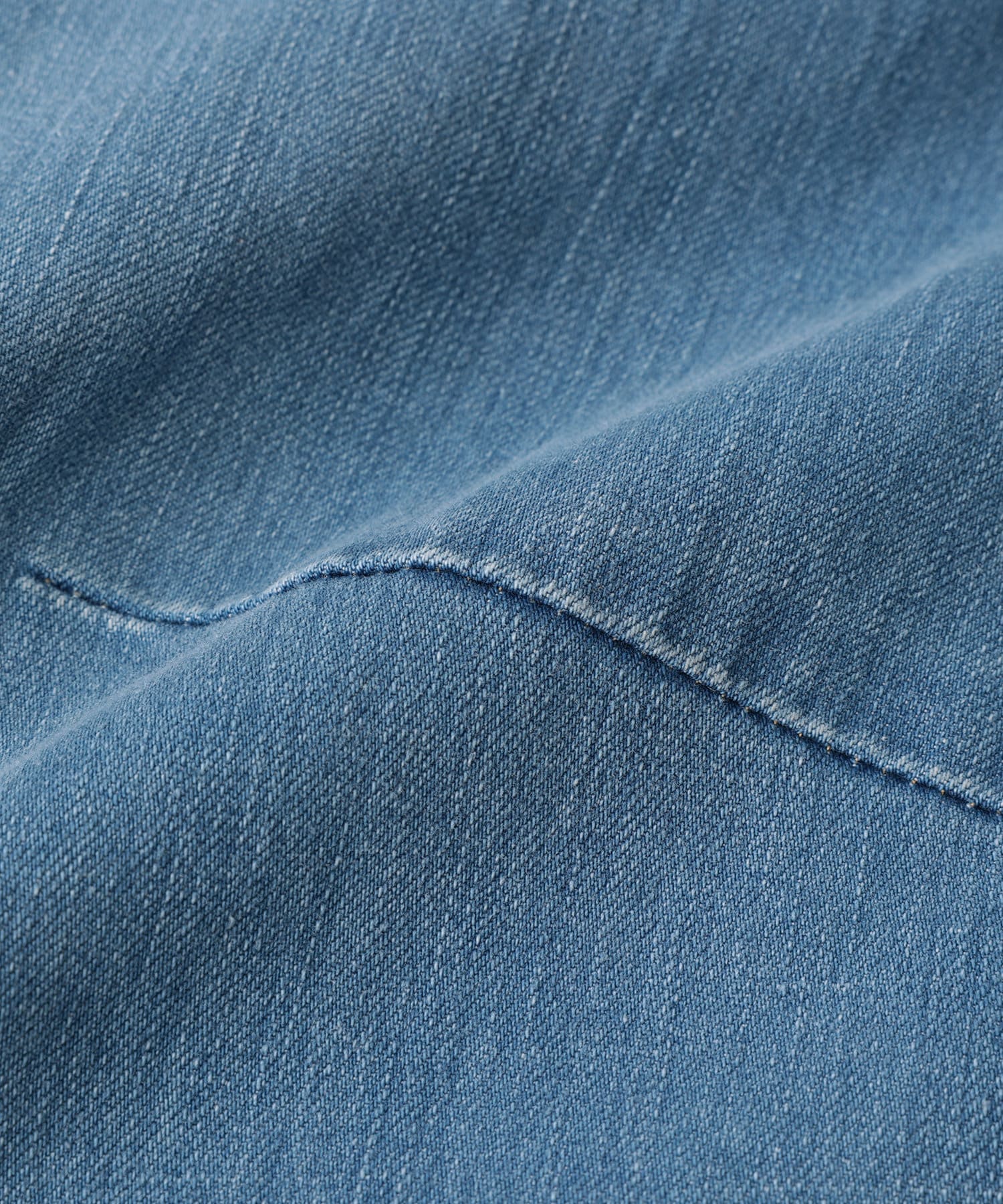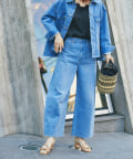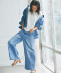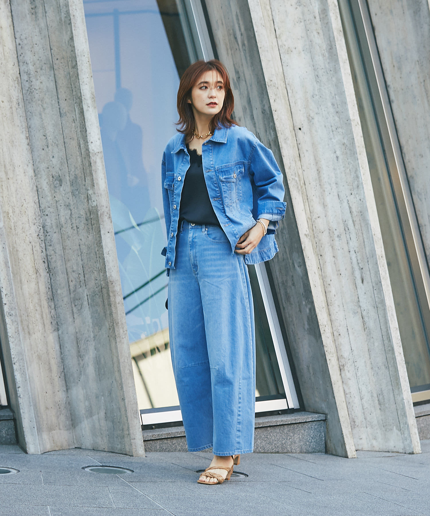 立体的でカーブフォルムが特徴のモード感のあるデニム。いつまでも遊びごころを忘れず、ファッションを楽しむ大人の女性におすすめしたいアイテム。カラーはサックスの1色展開ですが、これからのシーズン着回ししやすい色合いになっております。