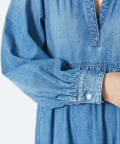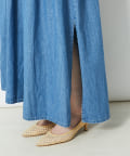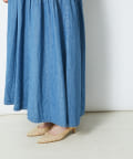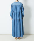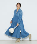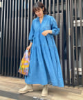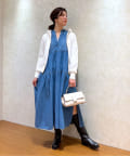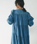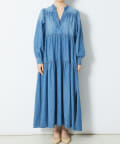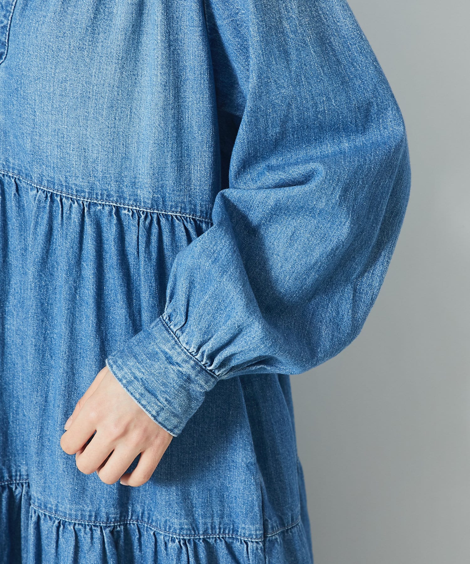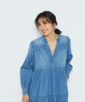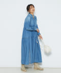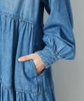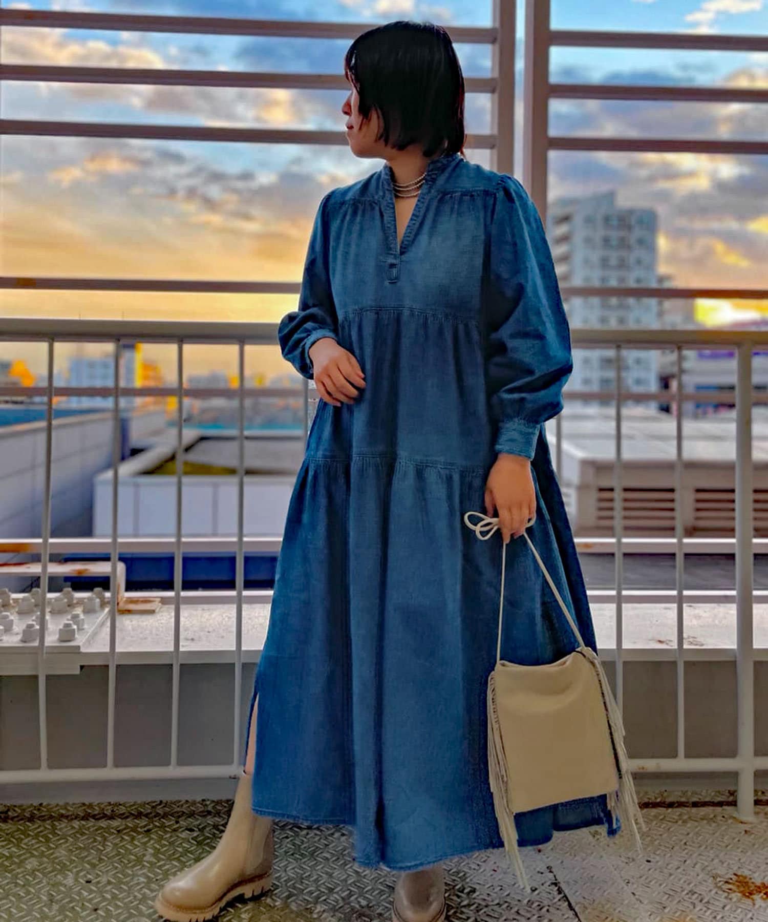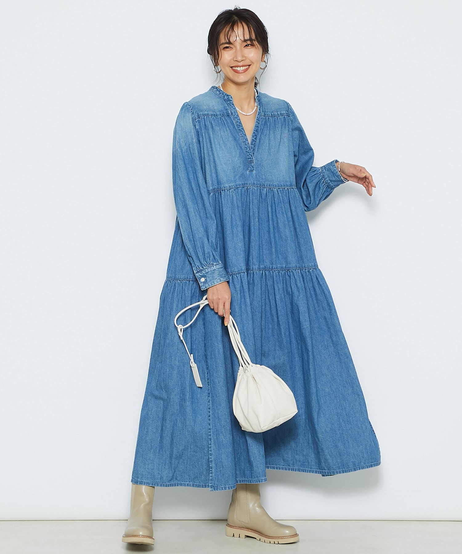 トレンドのティアードワンピースに、切替箇所にはデニム素材ならではの濃淡が加わり、カジュアルでもニュアンス感がでて優し気な印象に。動くと軽やかに広がるデザインは、フェミニンさも兼ね備えカジュアルになりすぎないところも◎ストンと下に綺麗に落ちるラインは抜け感がでて、大人の余裕も感じさせてくれます。