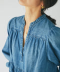 肩は小ぶりなパフスリーブがクラシカルな雰囲気で大人なカジュアルスタイルにピッタリです。