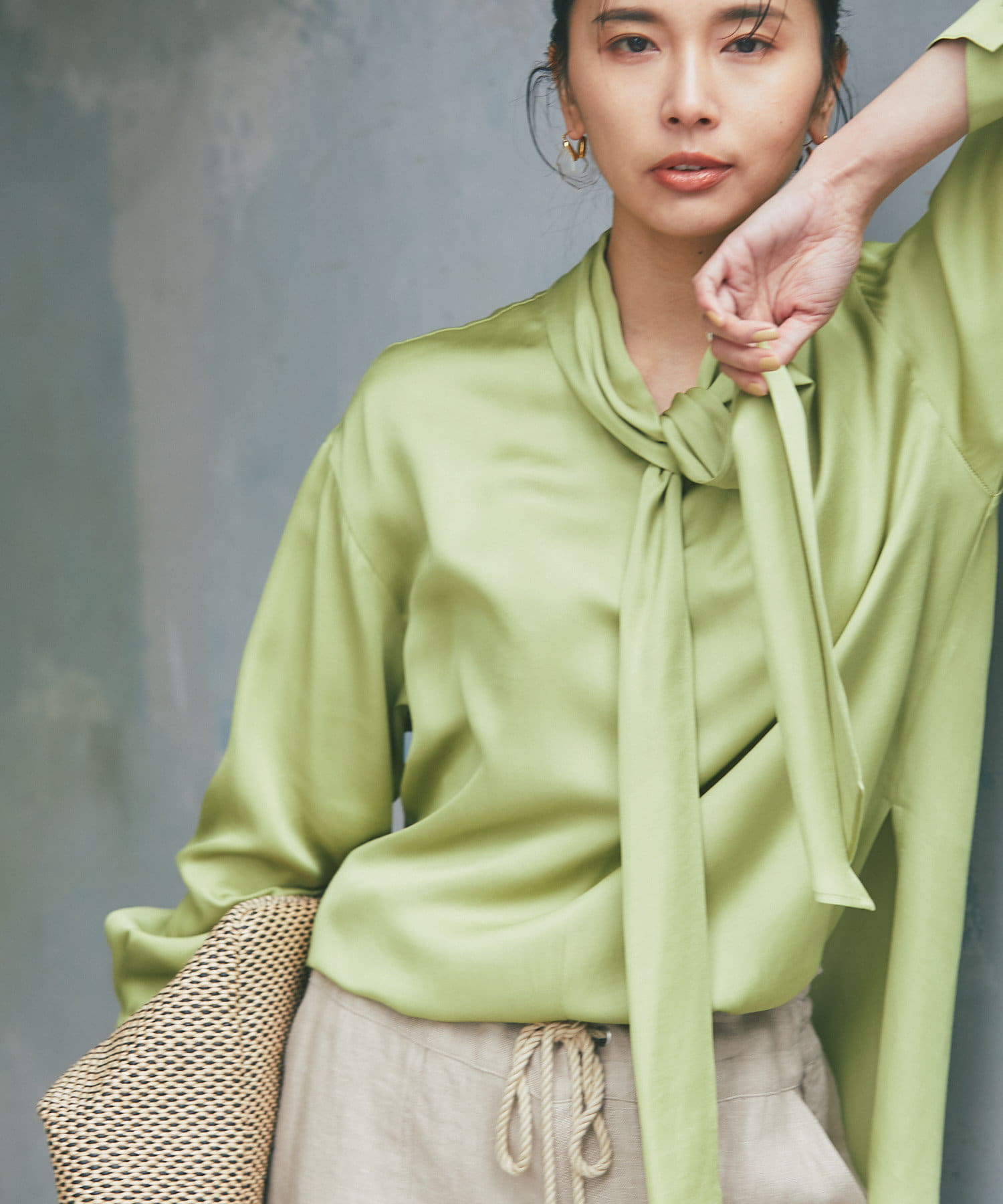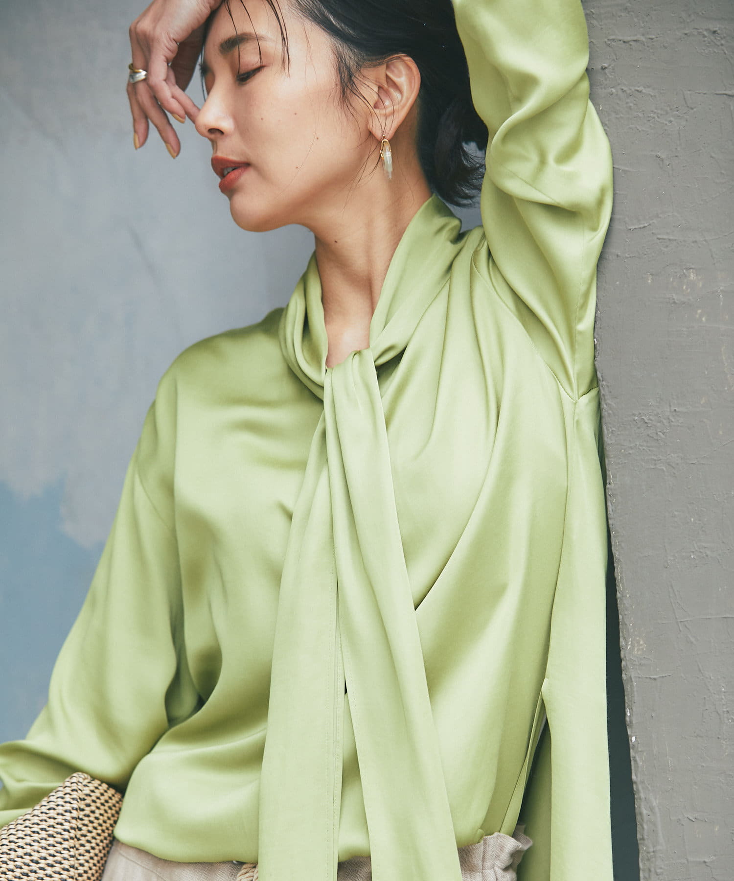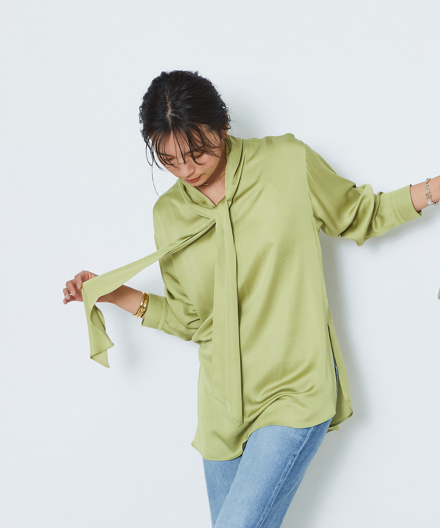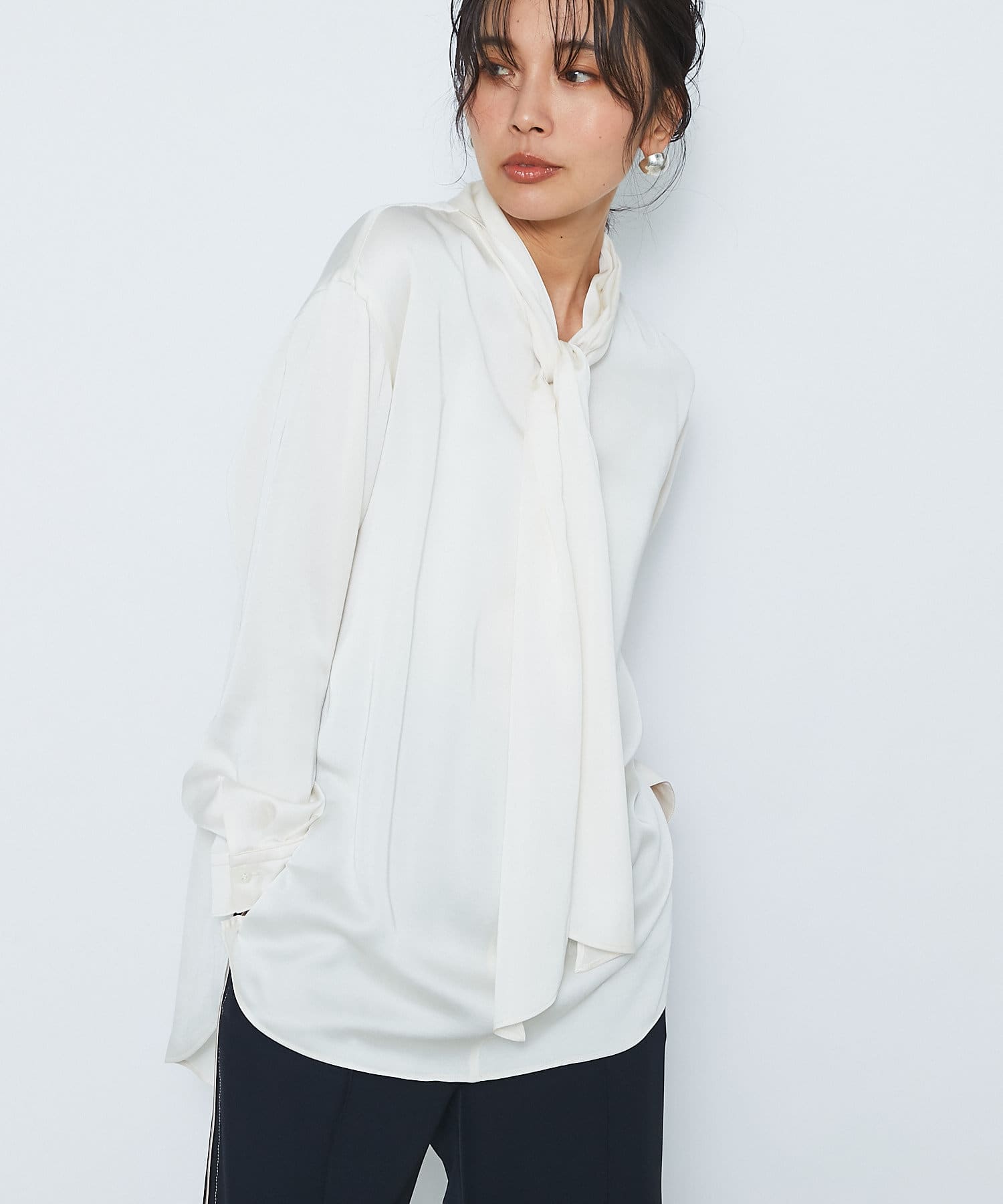 シルクのような軋み感を持ったスカーフ風のボウタイブラウス