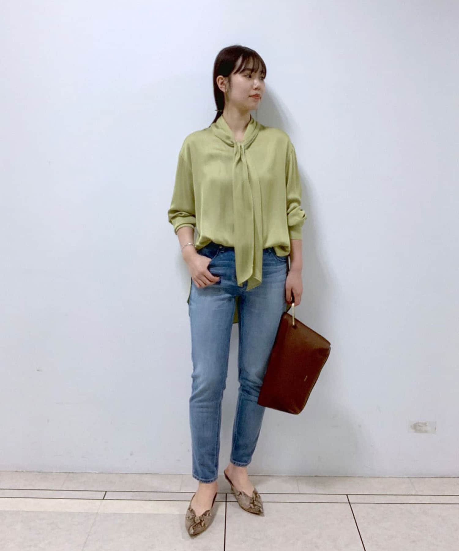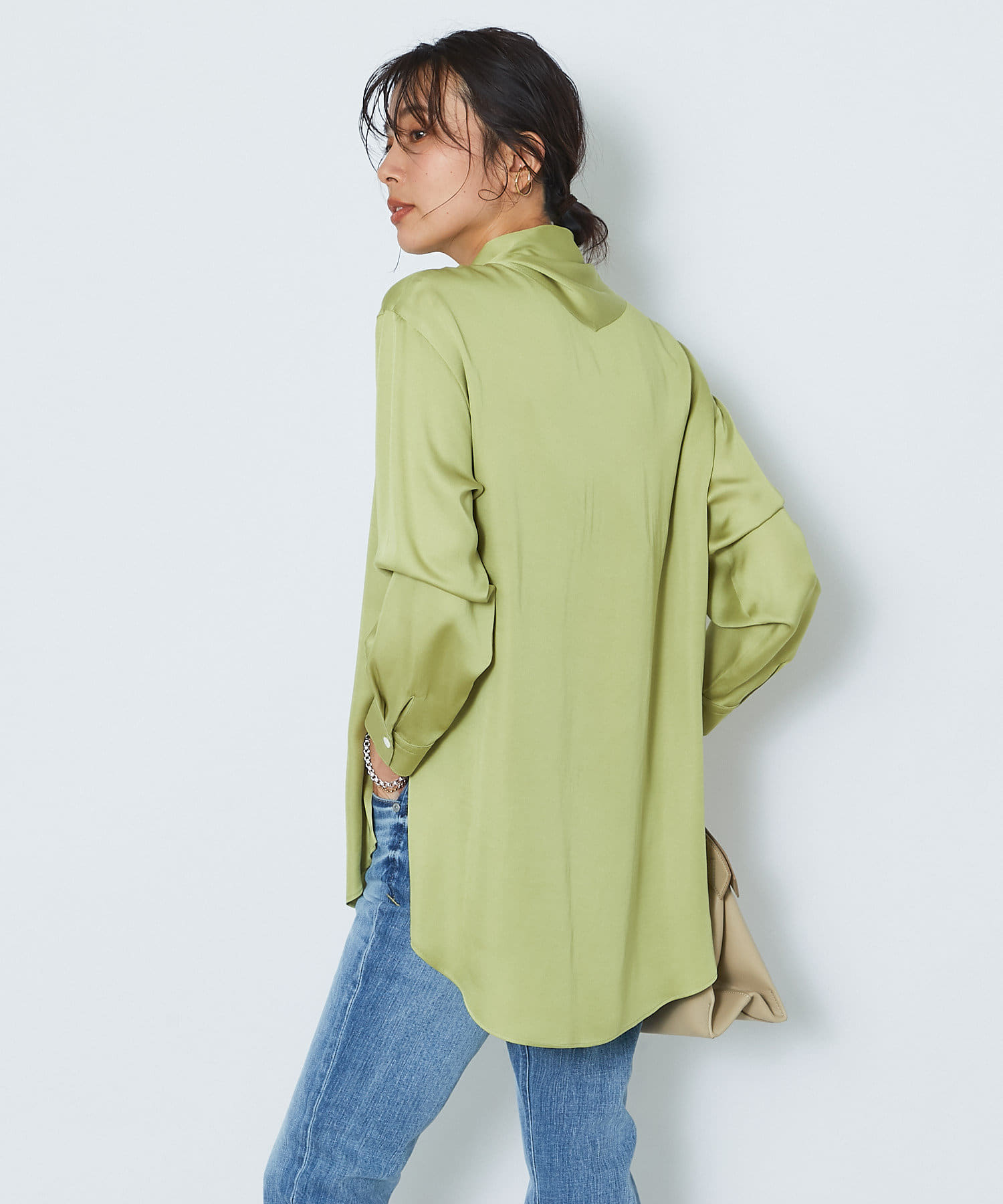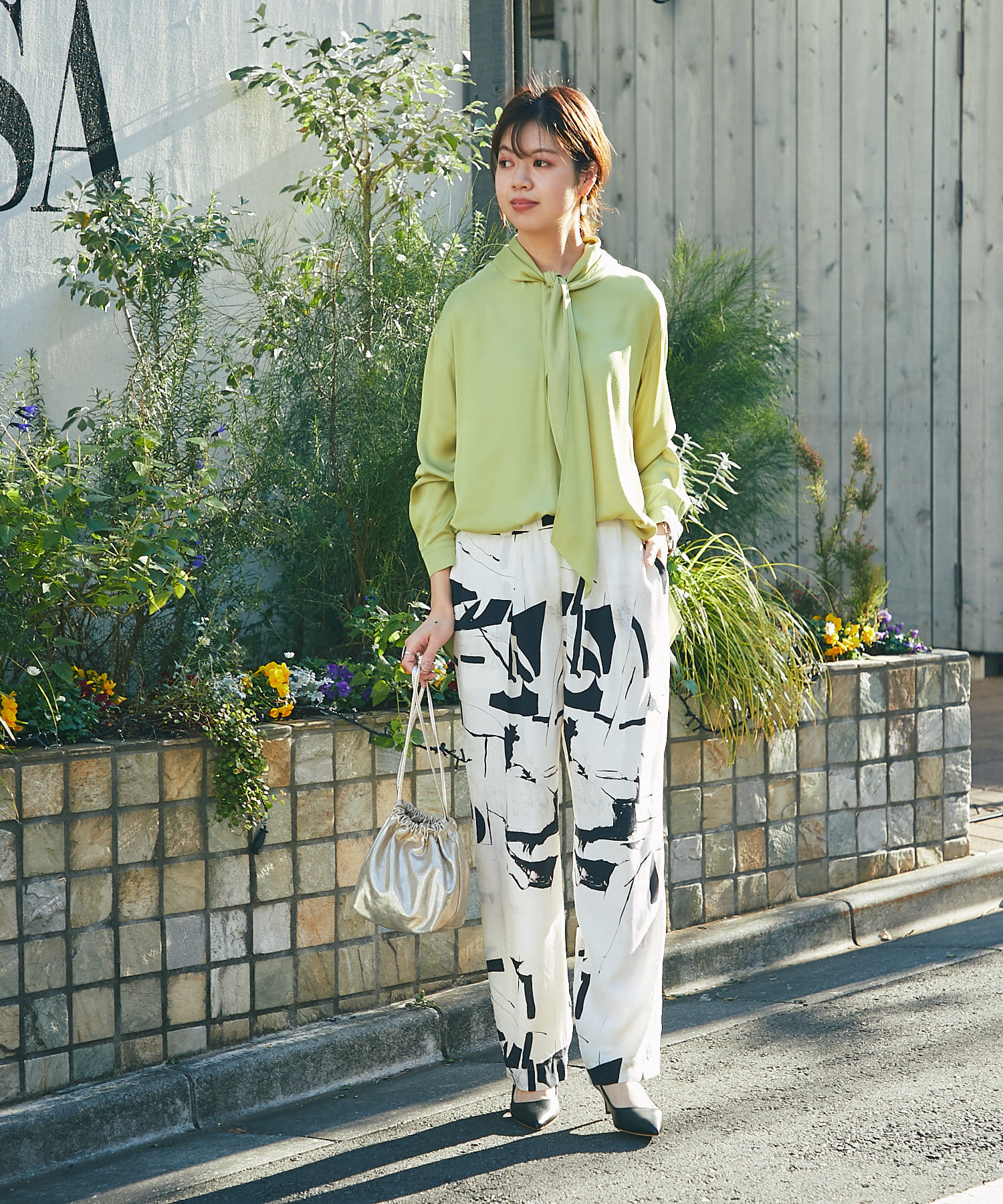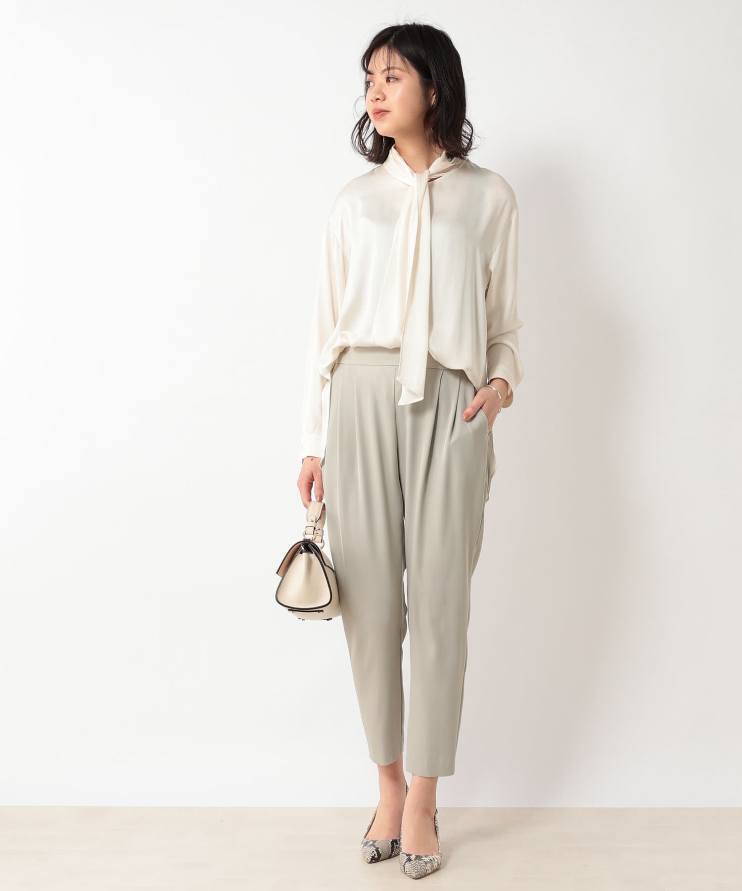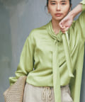 シルクのような軋み感を持ったスカーフ風のボウタイブラウス