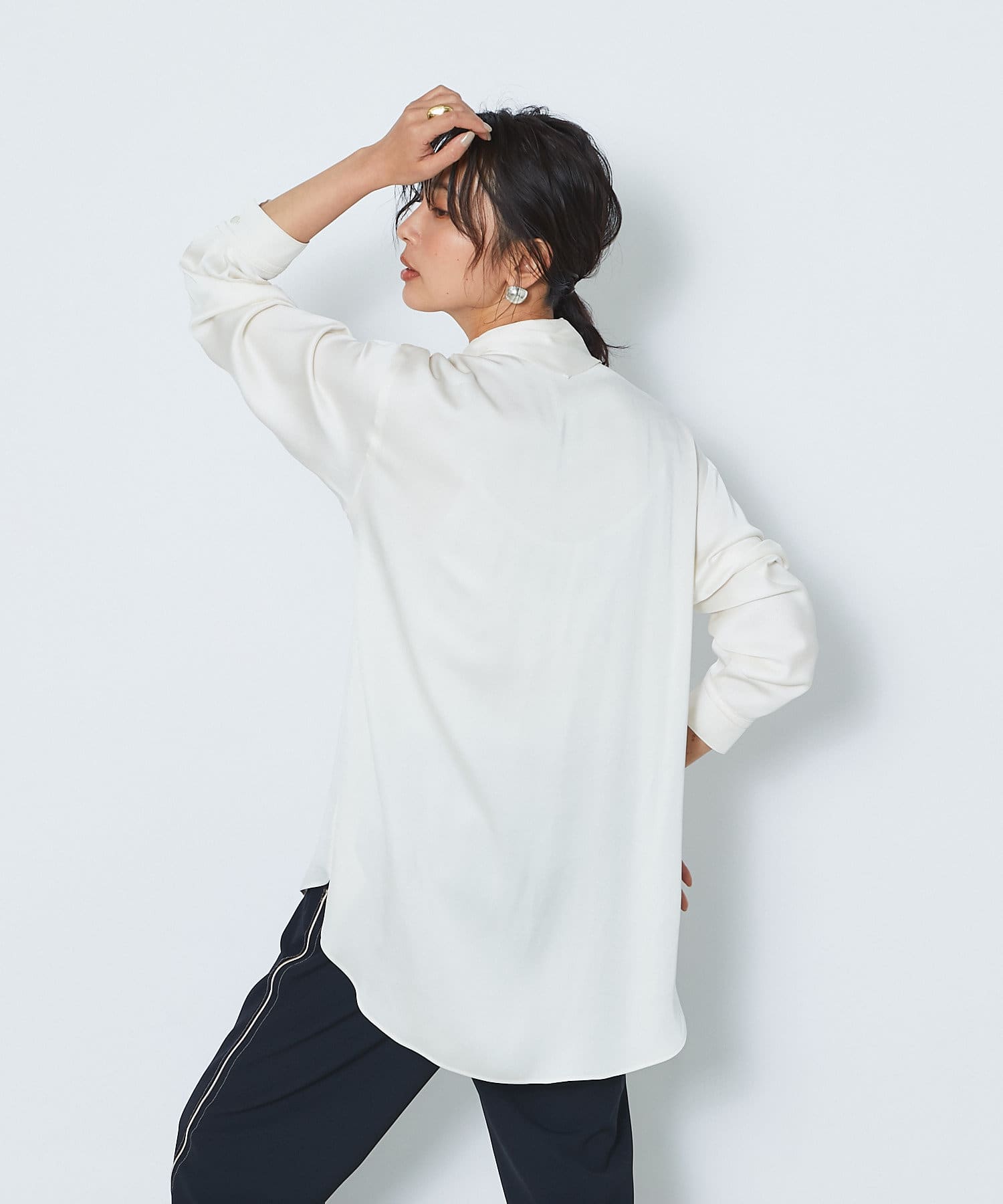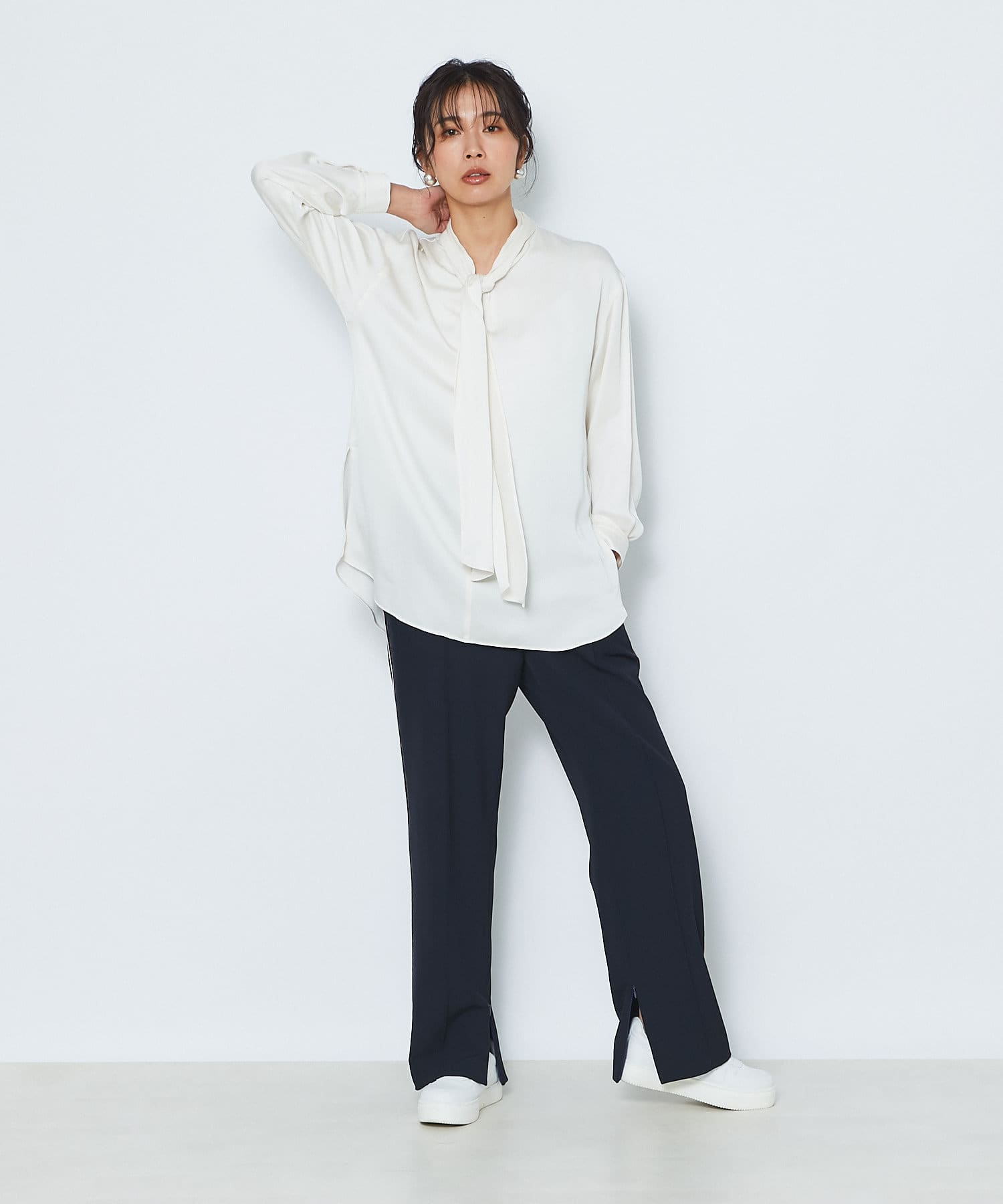 【LIVE紹介・上品な質感が魅力】スカーフ風ボウタイブラウス