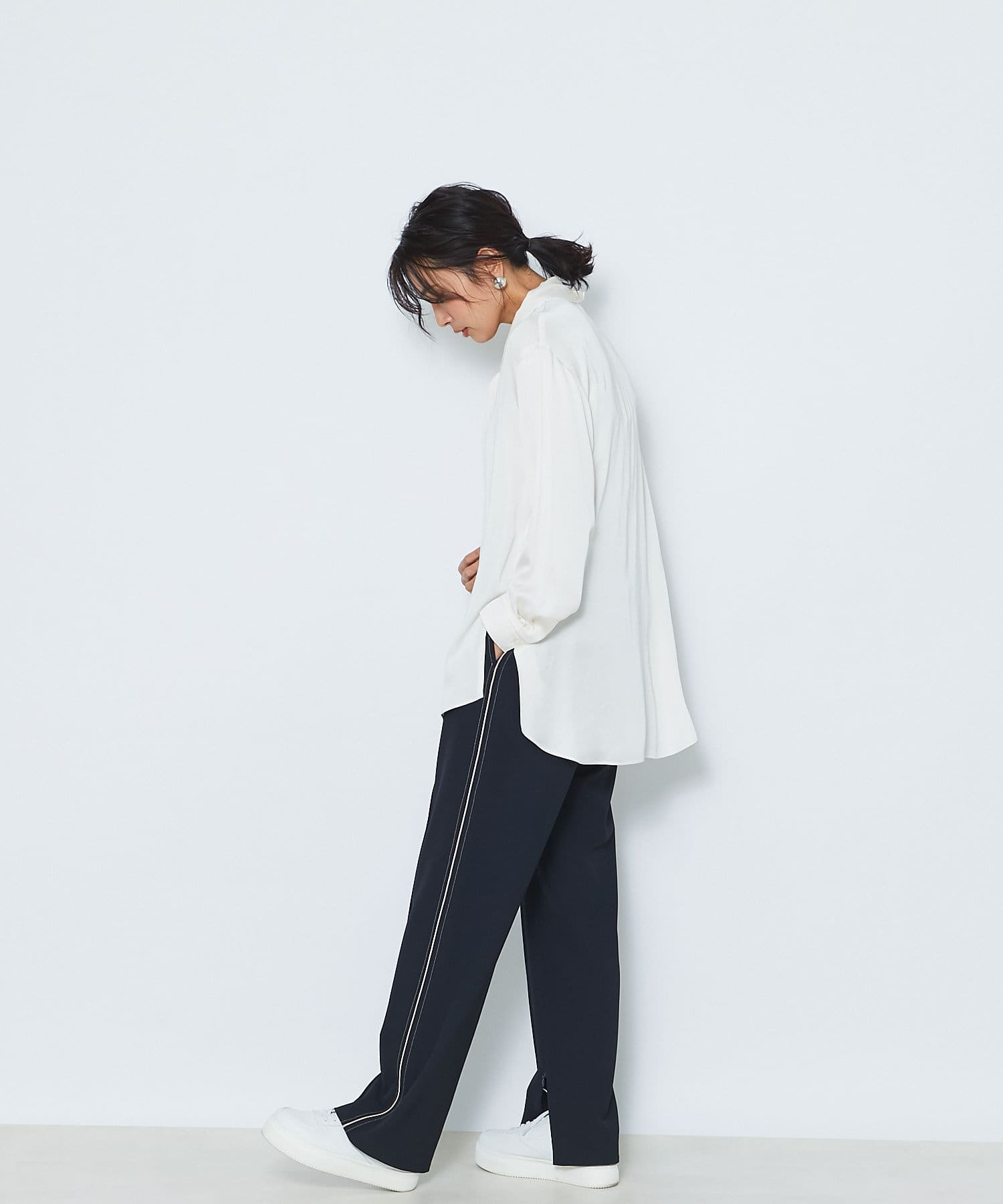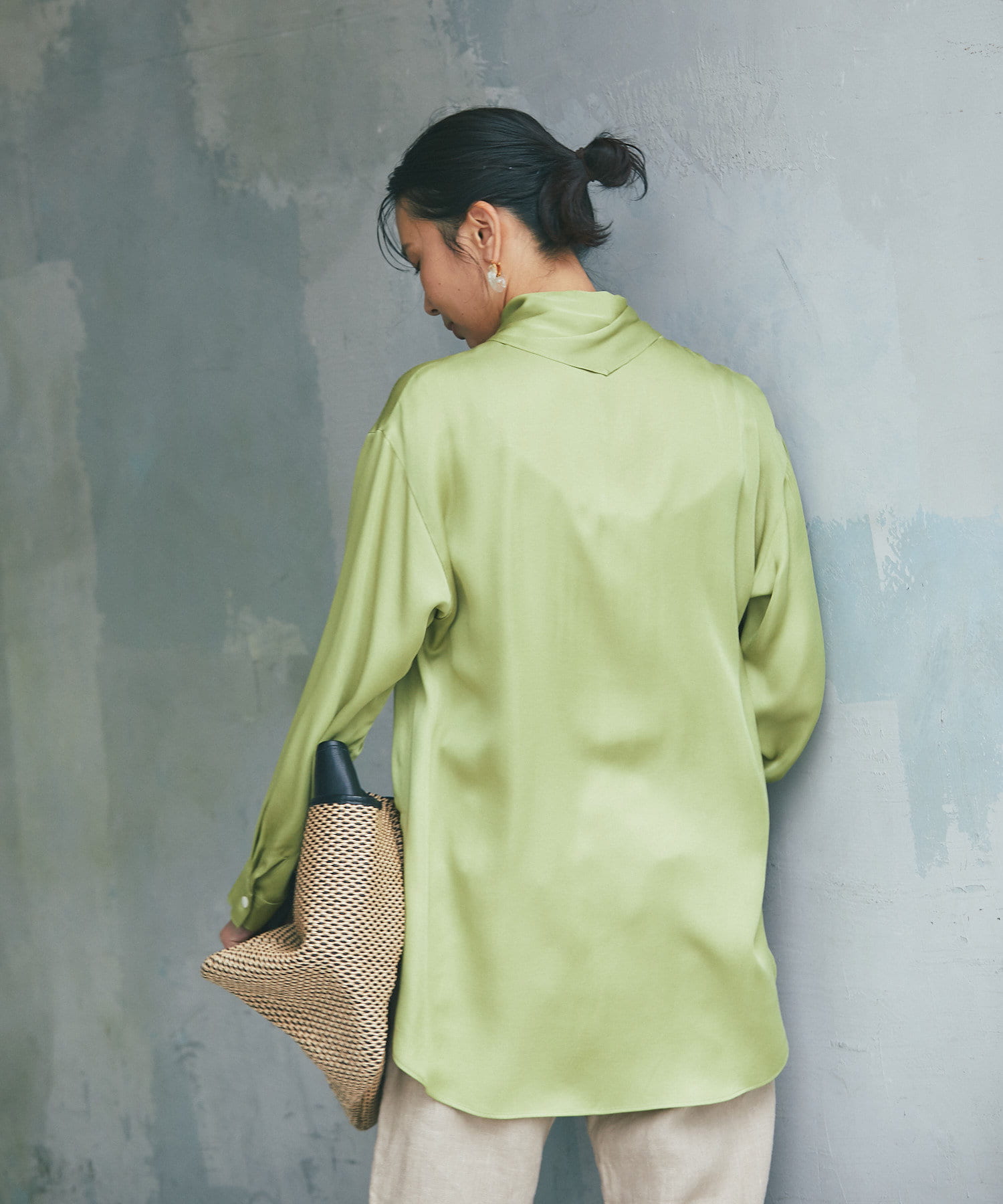 レーヨンとポリエステルのとても柔らかな生地感でドレープが上品な1枚。
