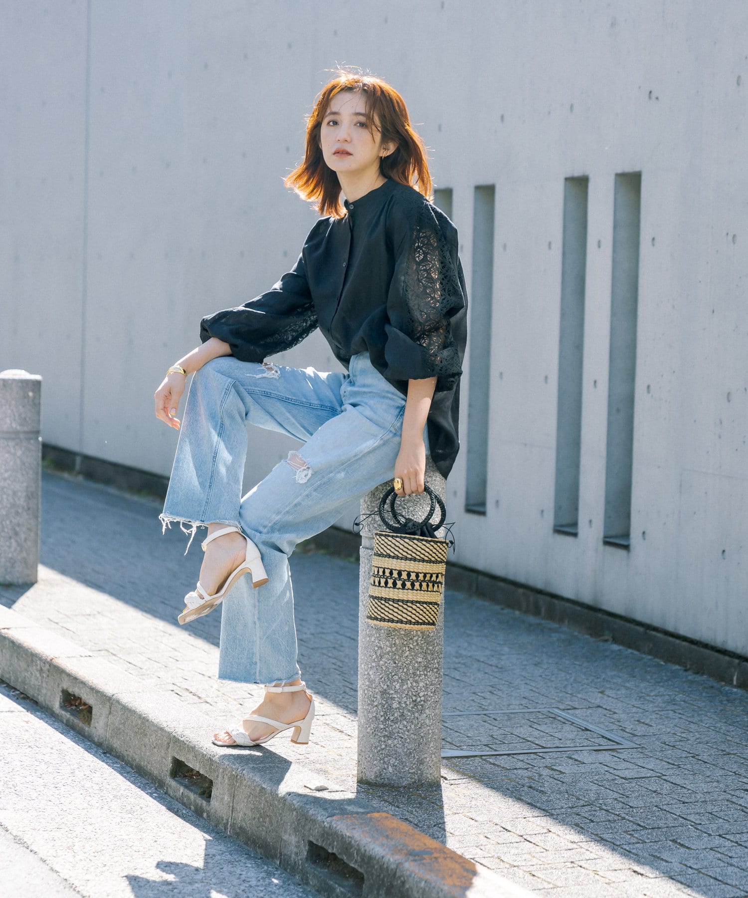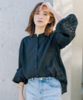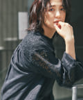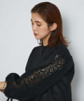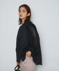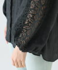 袖から肩にかけてあしらわれたレースが女性らしい素敵なブラウスです。