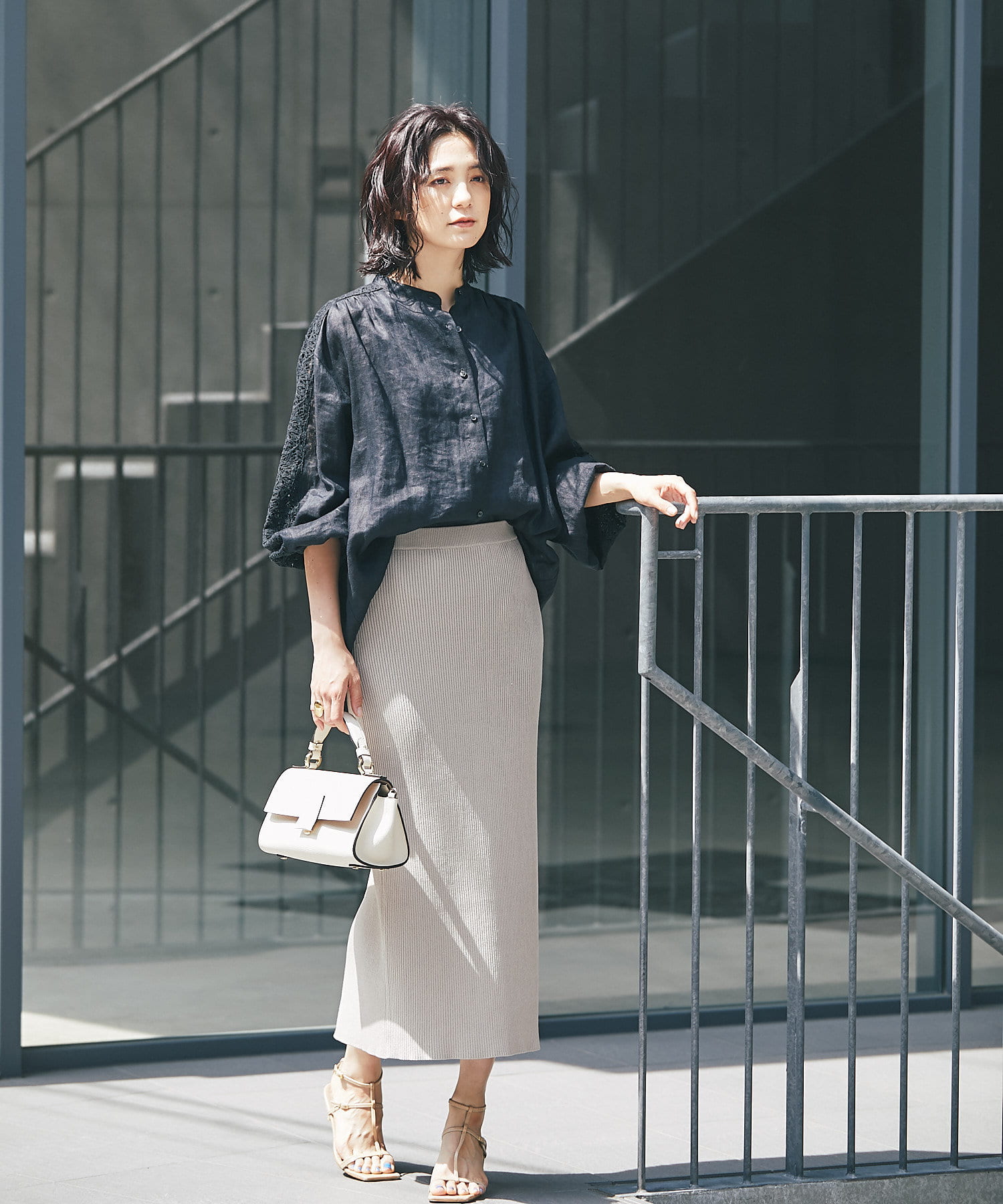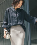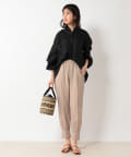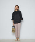 ふんわりとボリュームのあるブラウスは、タイトめなスカートやボトムスに合わせるとバランス良く整います。ボトムスがワイドな時はベルトマークでブラウジングして着用するのもおススメ。
