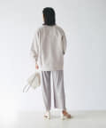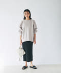 腰回りもすっぽりと隠れるので、安心。グレーベージュのカラーは透明感もプラスしてくれます。