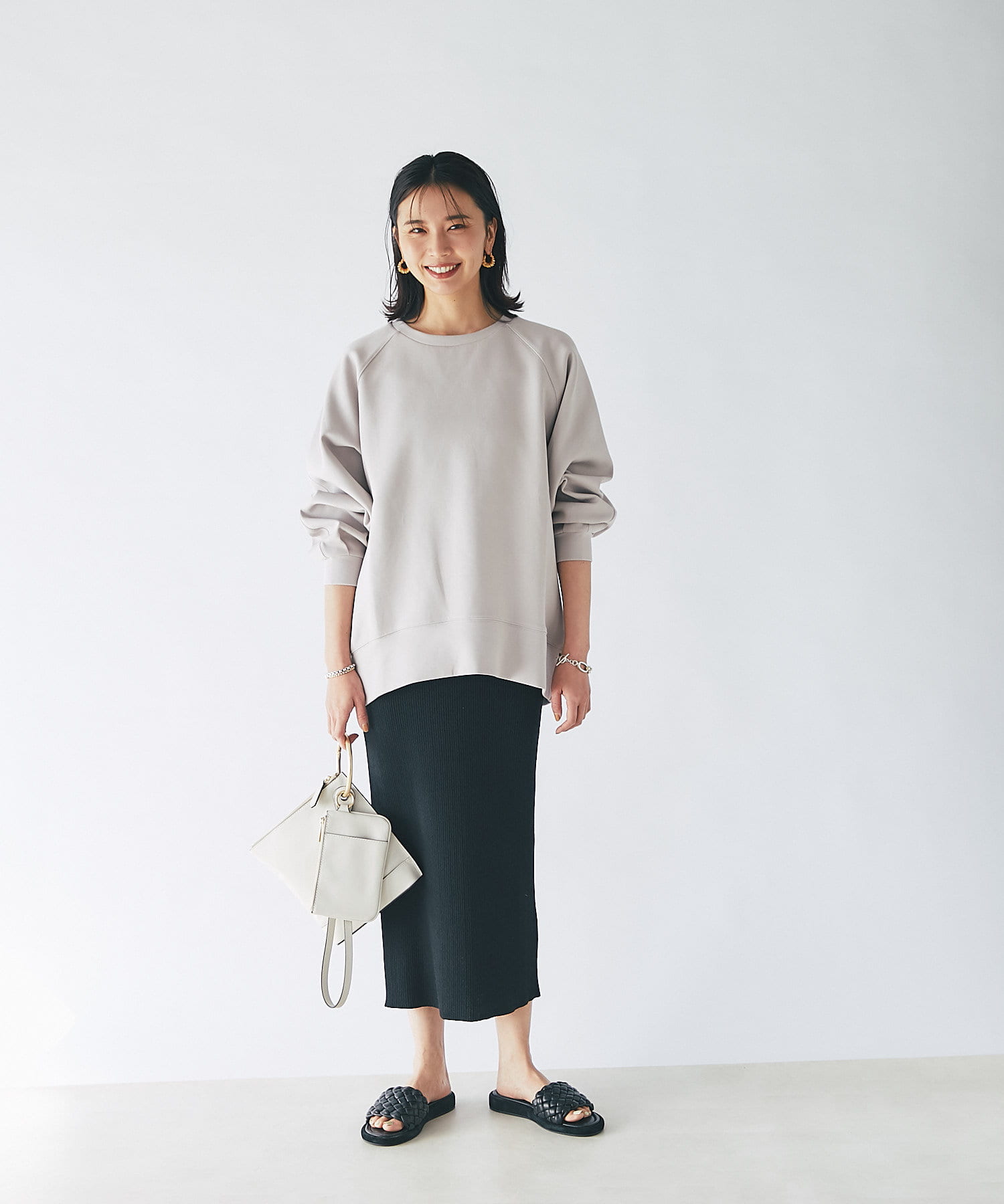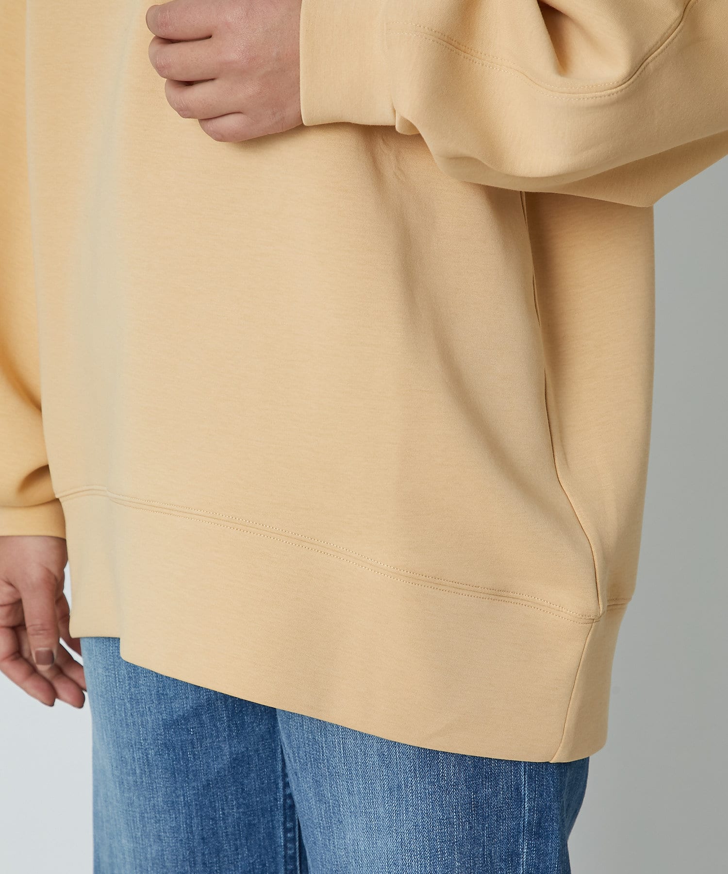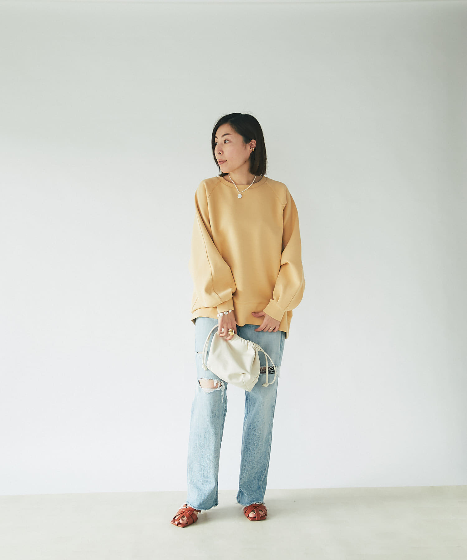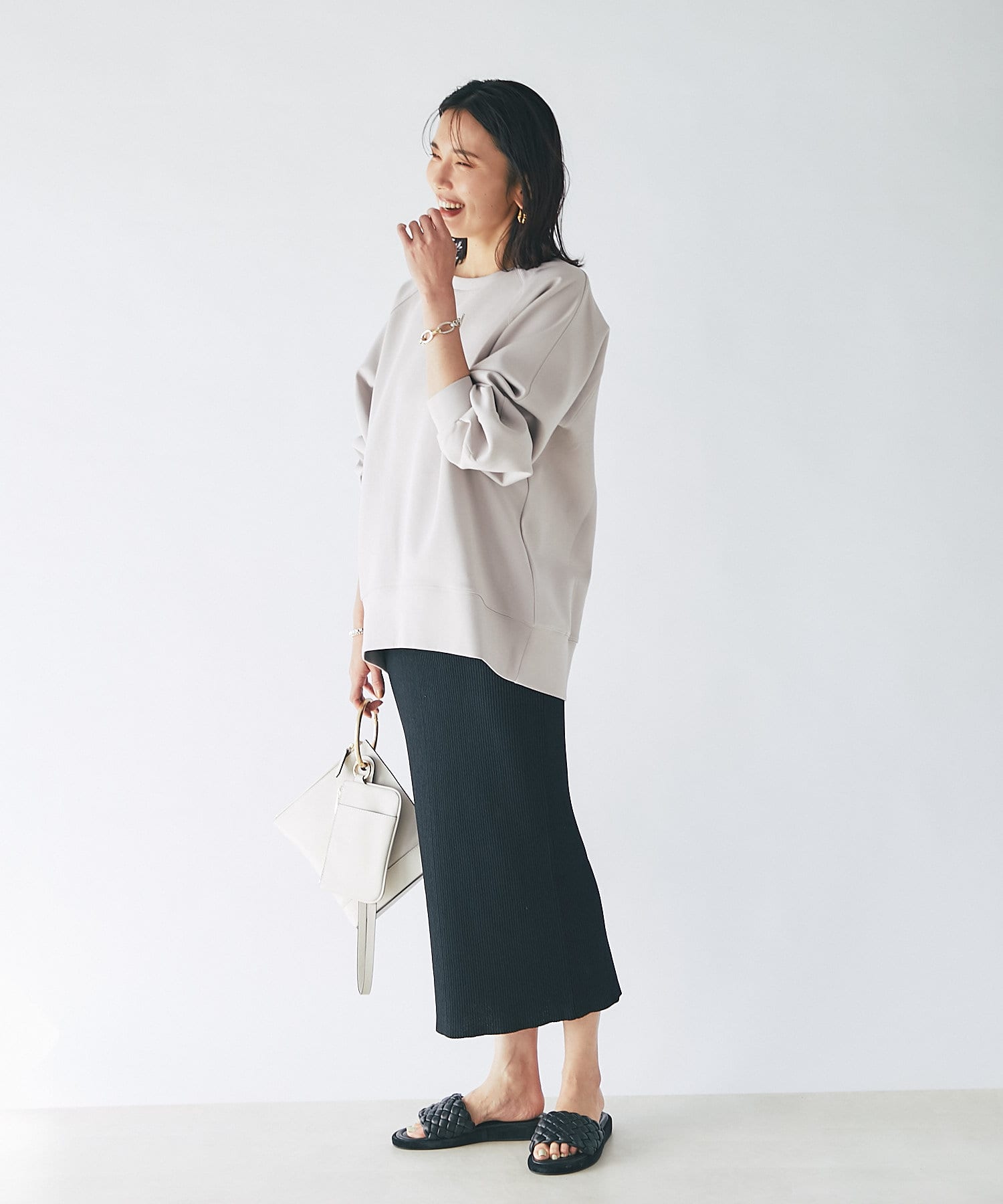 リラックス感のあるシルエットでボディーラインを拾わずに楽に着れるスウェットスタイリング。