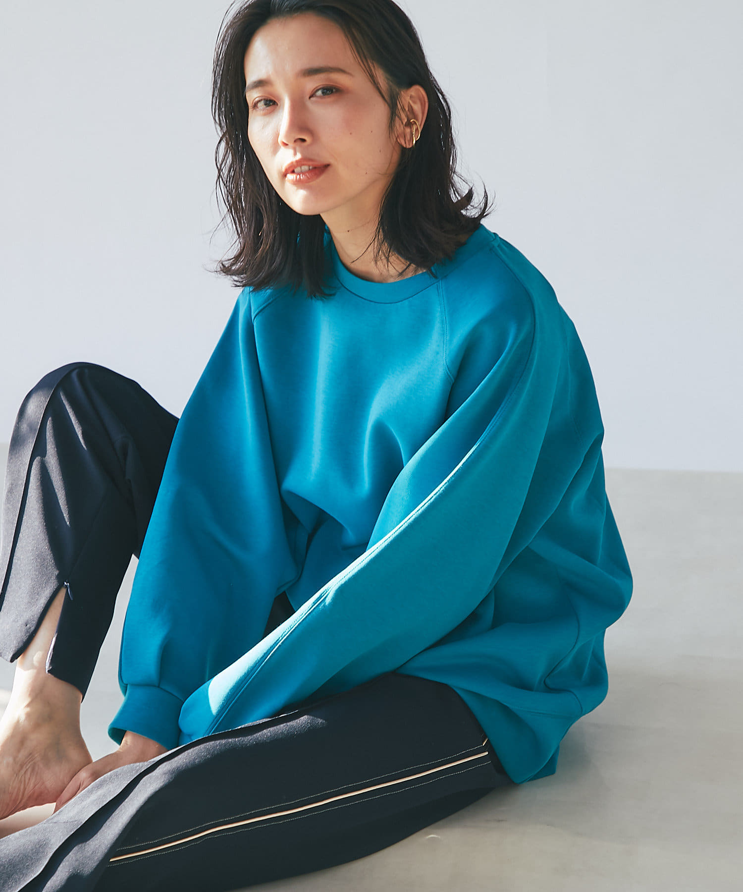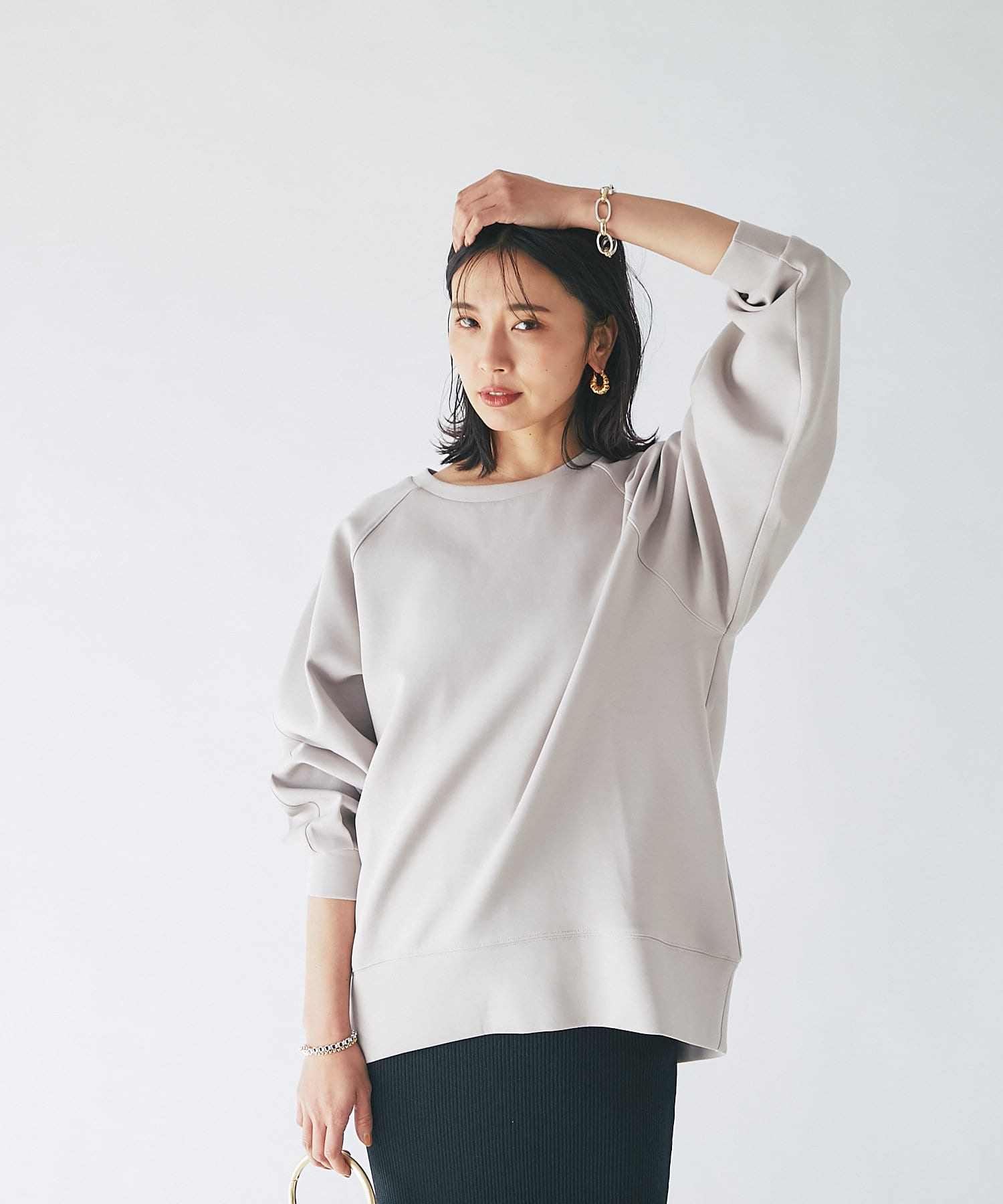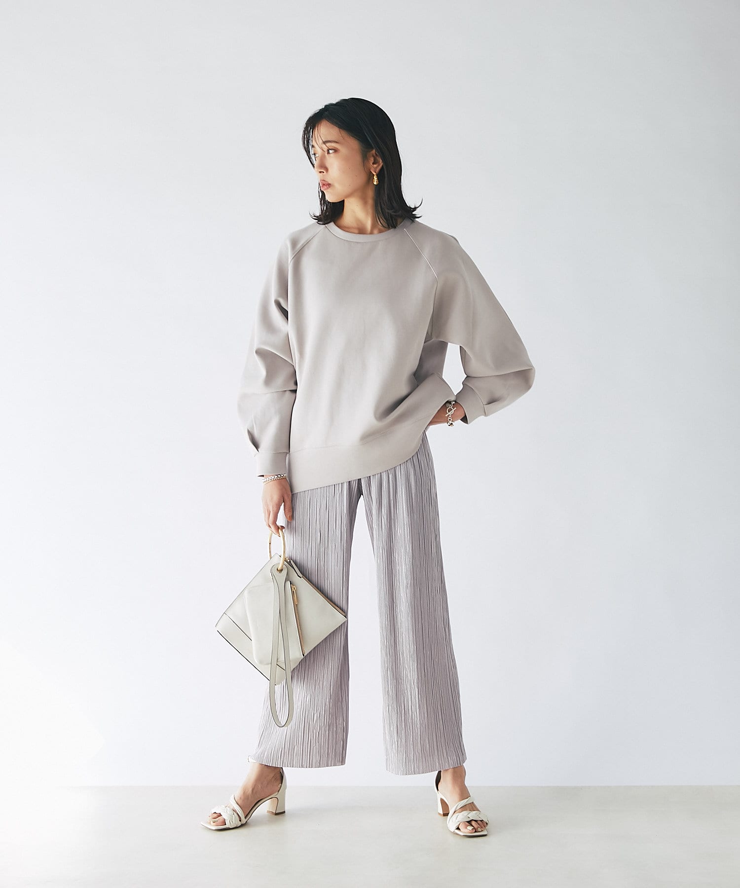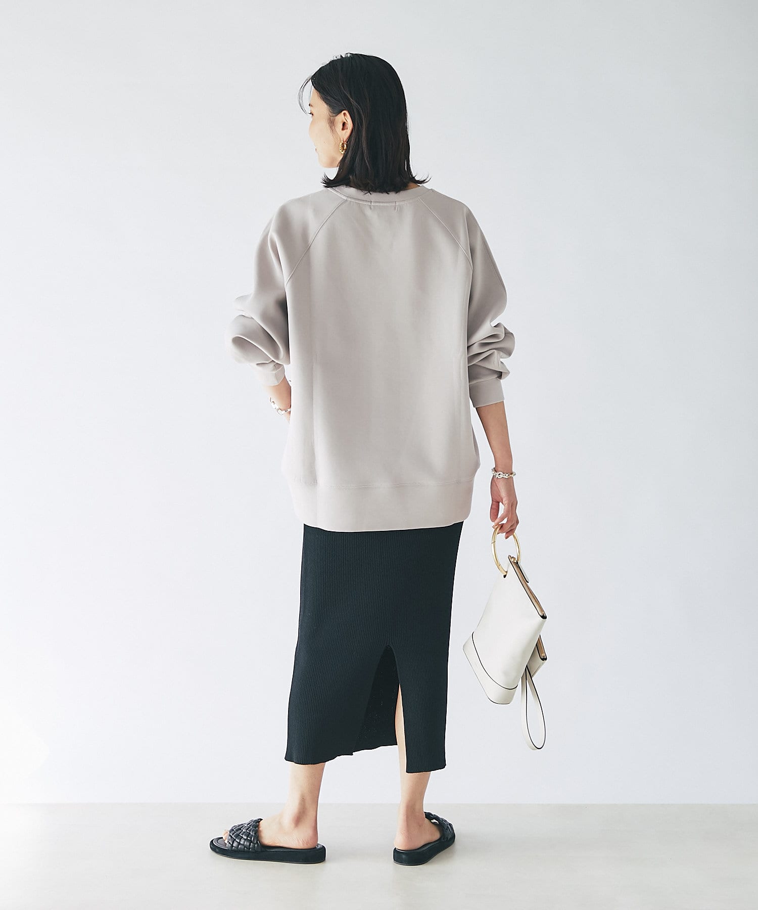 リラックス感のあるシルエットでボディーラインを拾わずに楽に着れるスウェットスタイリング。
