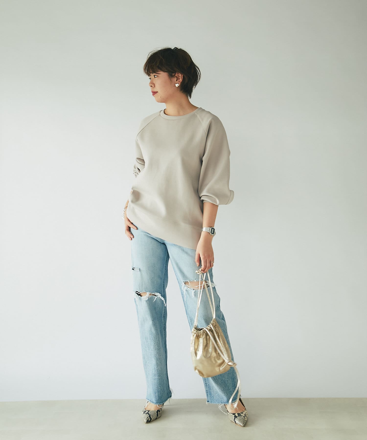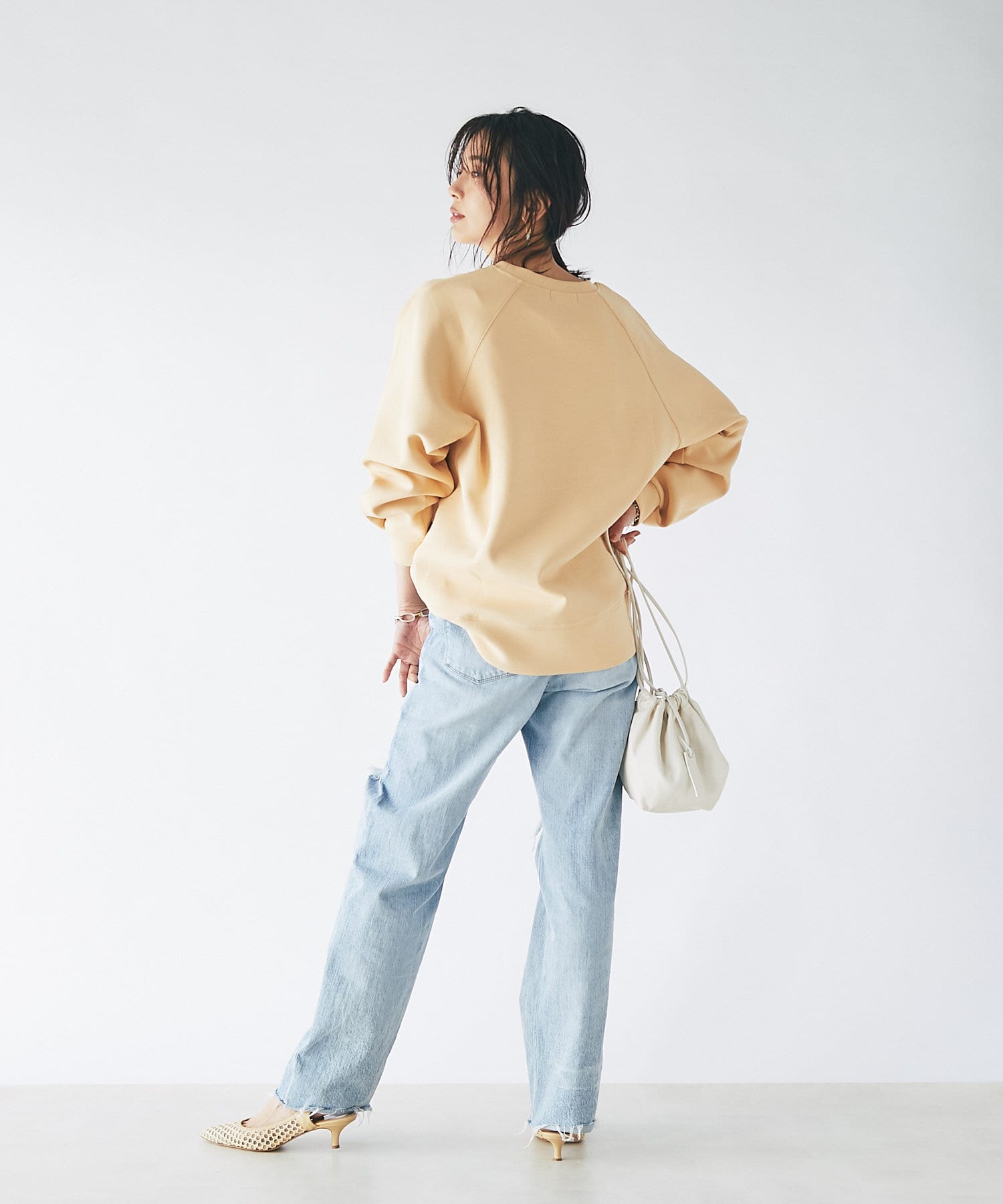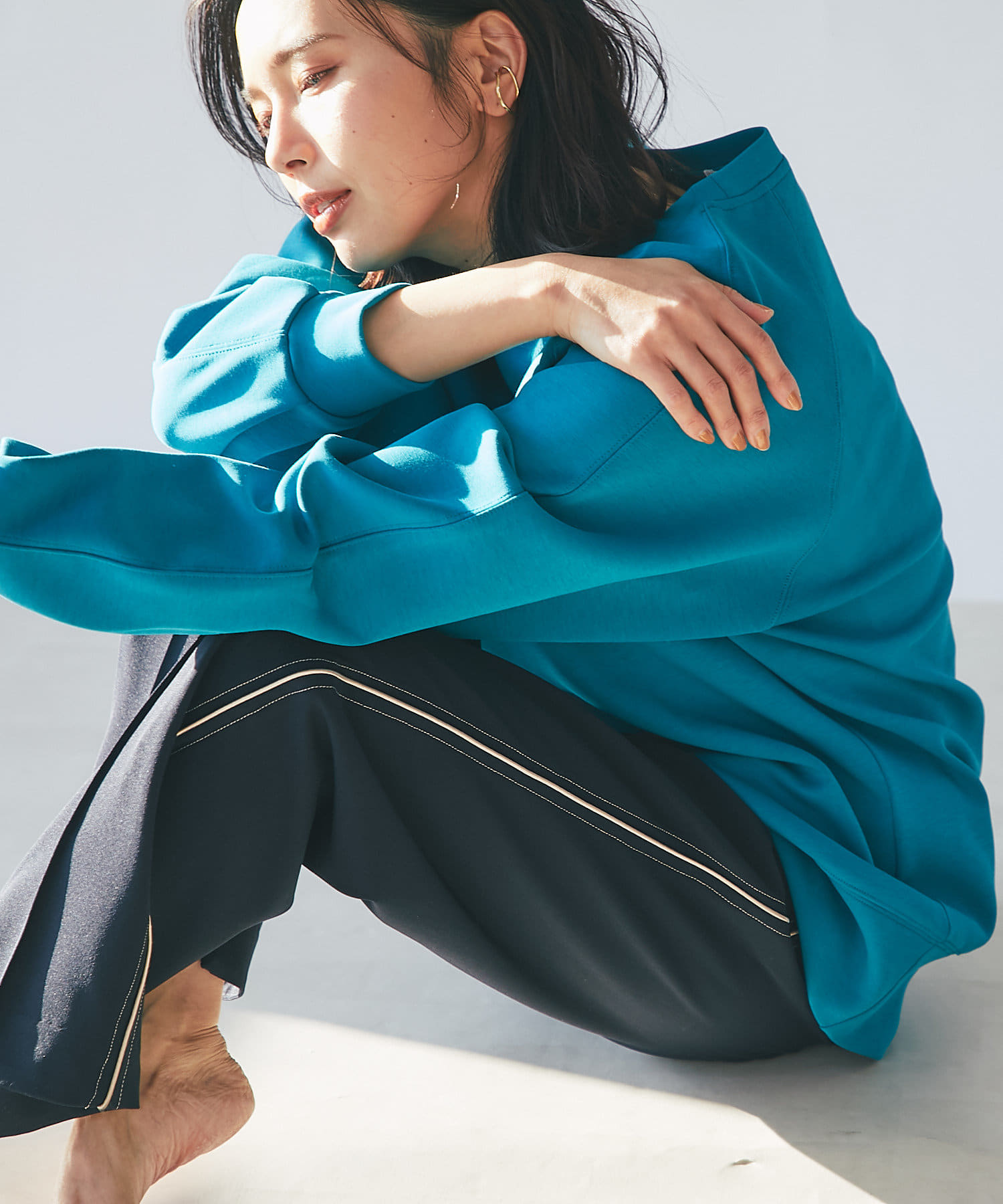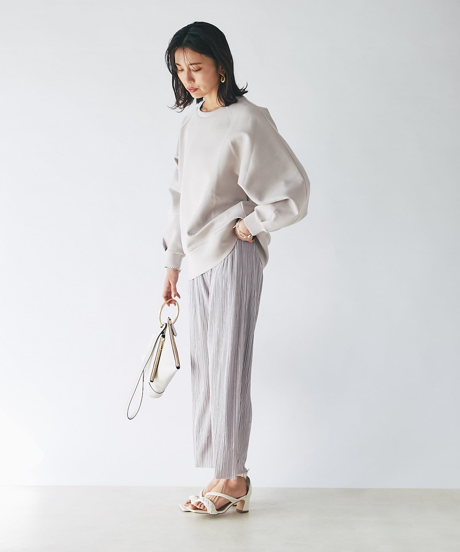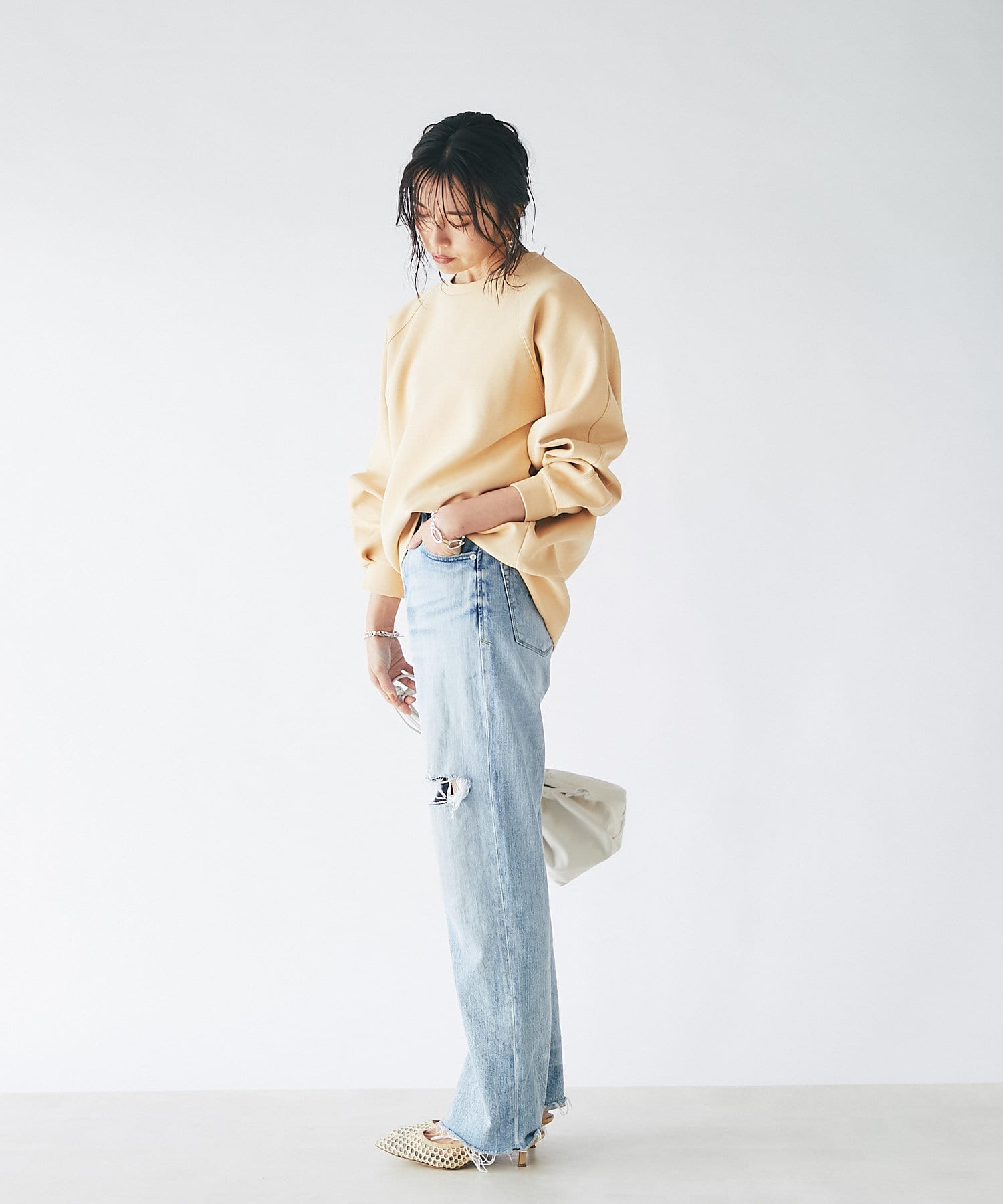 リラックス感のあるシルエットでボディーラインを拾わずに楽に着れるスウェットスタイリング。