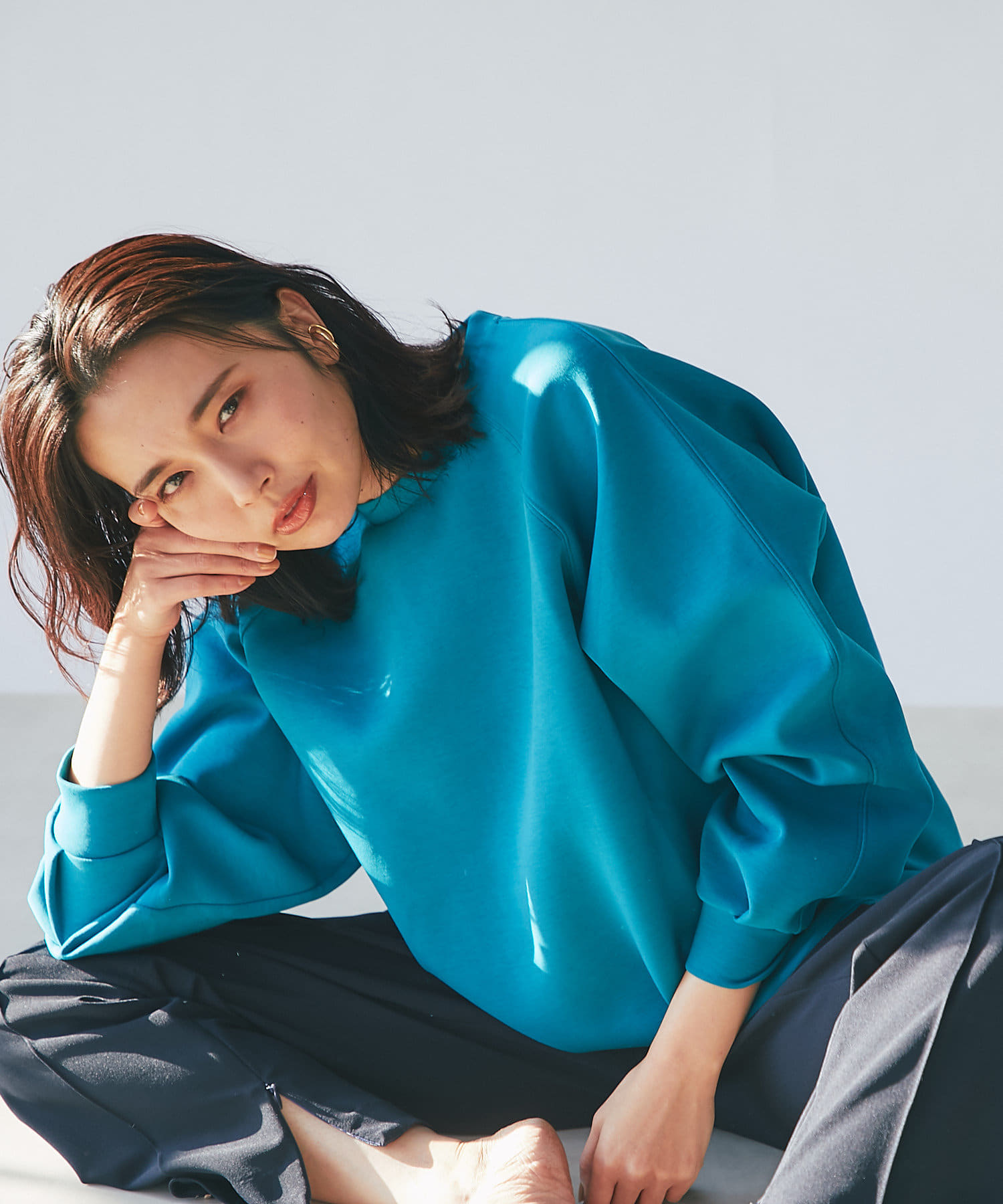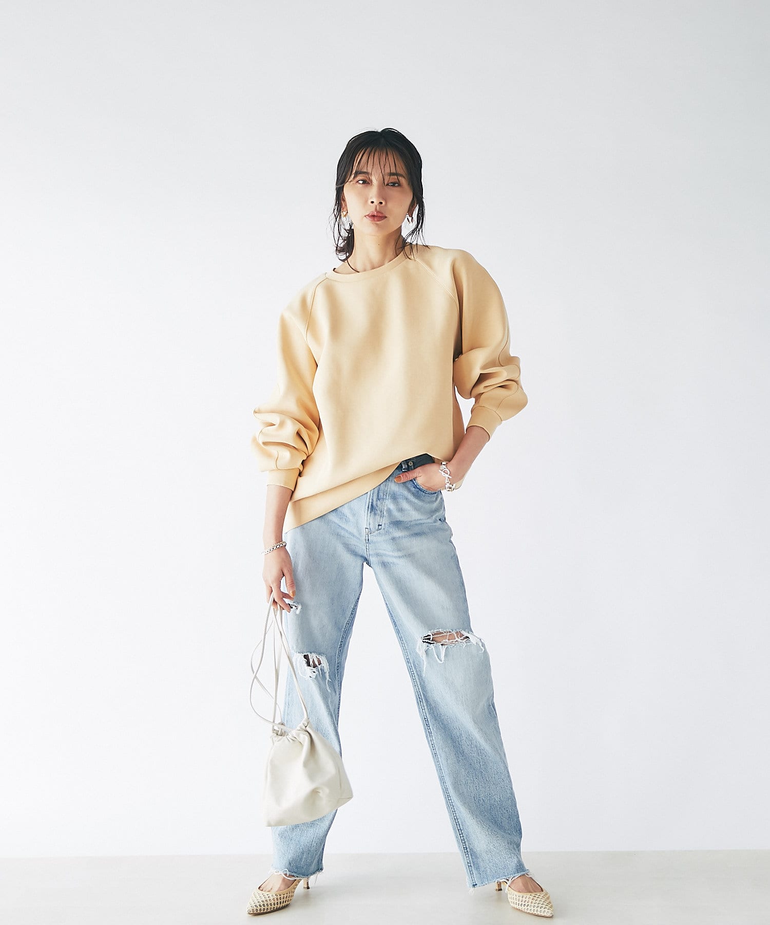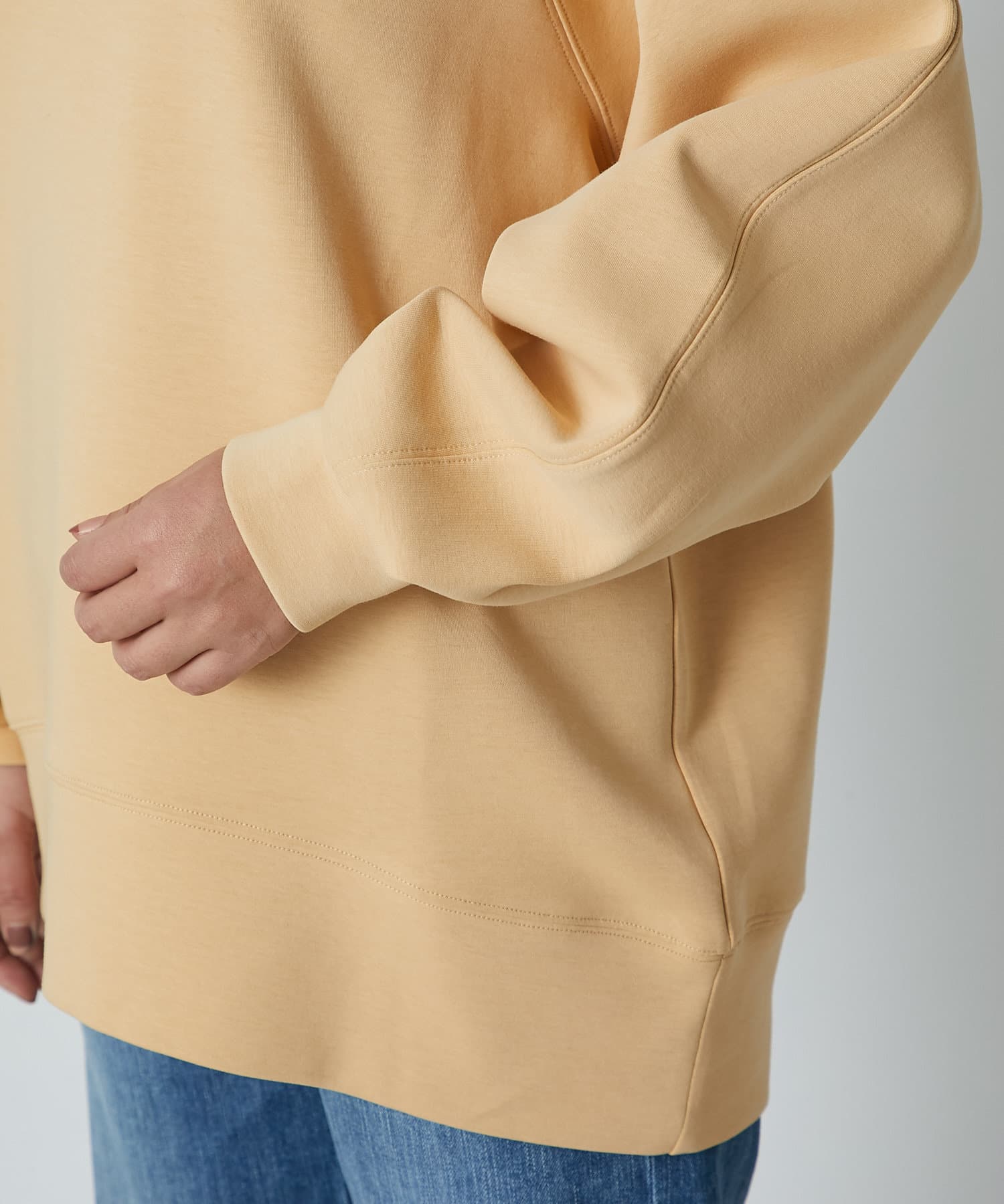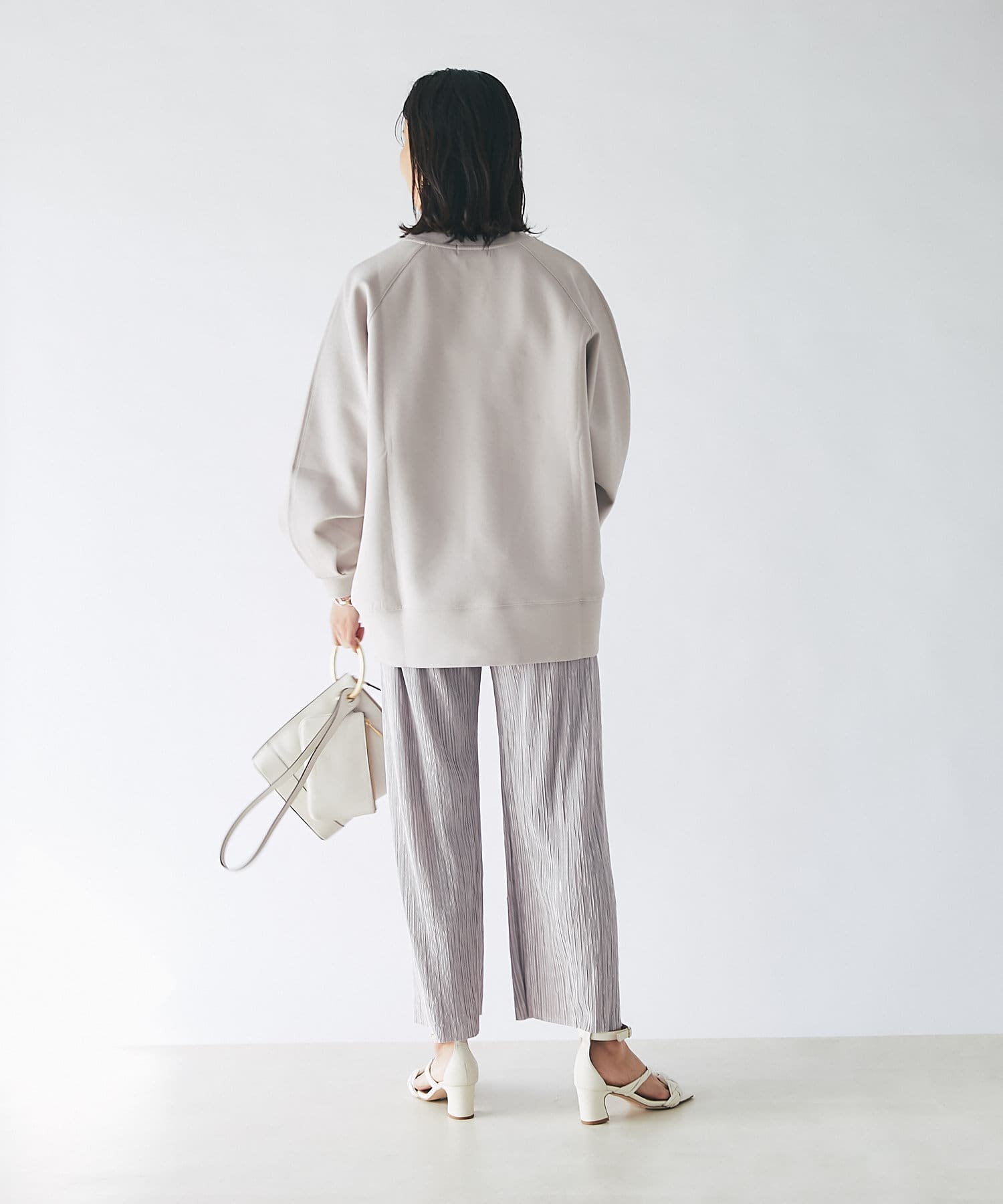 リラックス感のあるシルエットでボディーラインを拾わずに楽に着れるスウェットスタイリング。