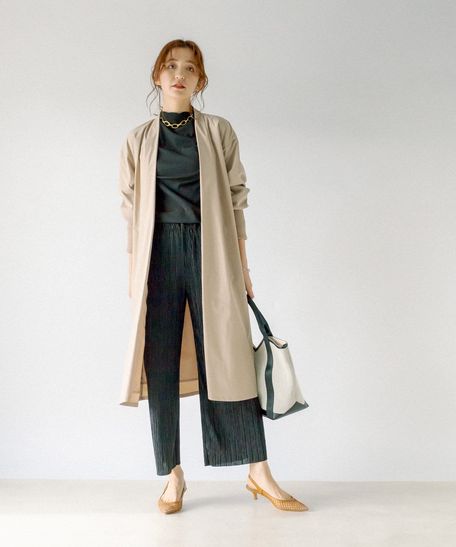 サッと羽織るだけでエレガントな動きが手に入るガウンコーデ。