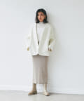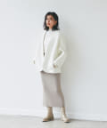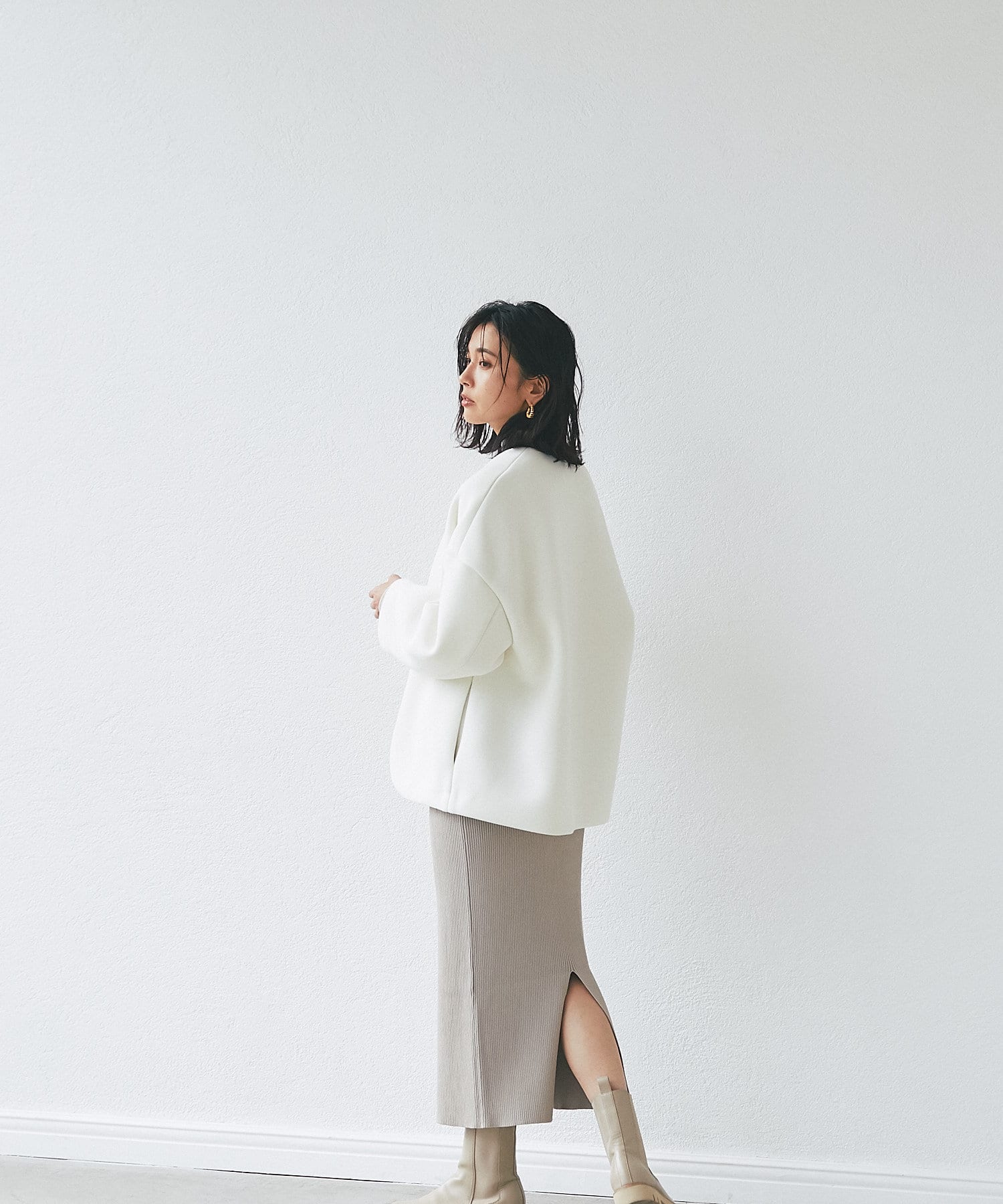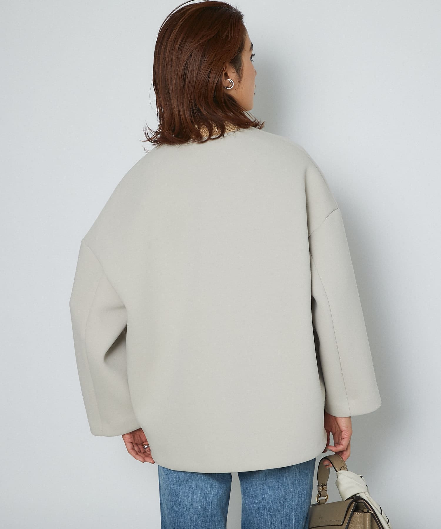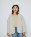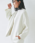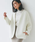 柔らかくふんわりした風合いが特徴のアウターは、前身ごろはホックで留める仕様になっており、普段のコーデに取り入れやすいシンプルなつくりも魅力的。ドロップショルダーで袖周りもゆったりしておりボリュームのあるブラウスでも、もたつかずに着用いただけます。曲線的なフォルムも女性らしさを際立たせ、普段のスタイリングを上品に仕上げてくれます。