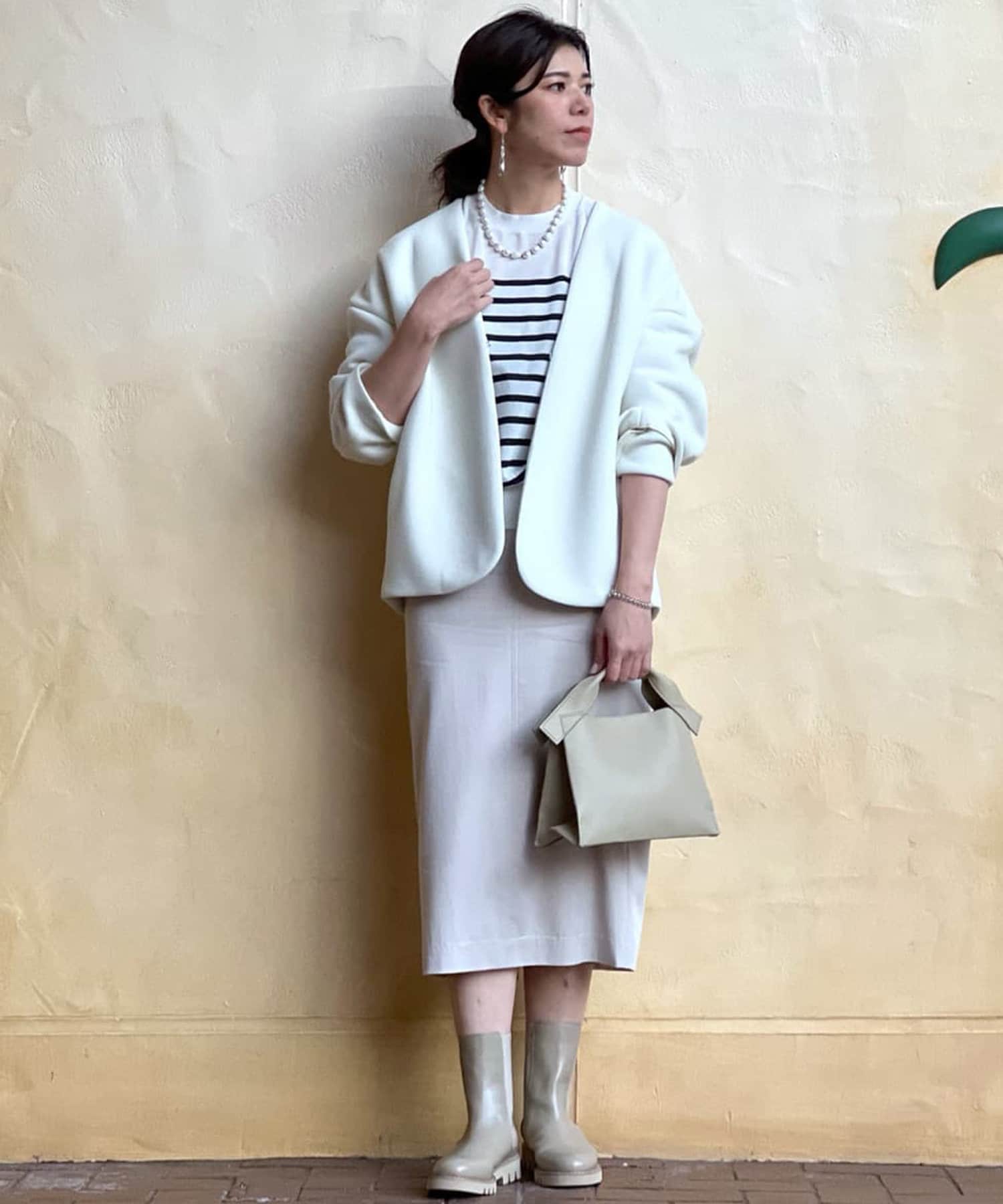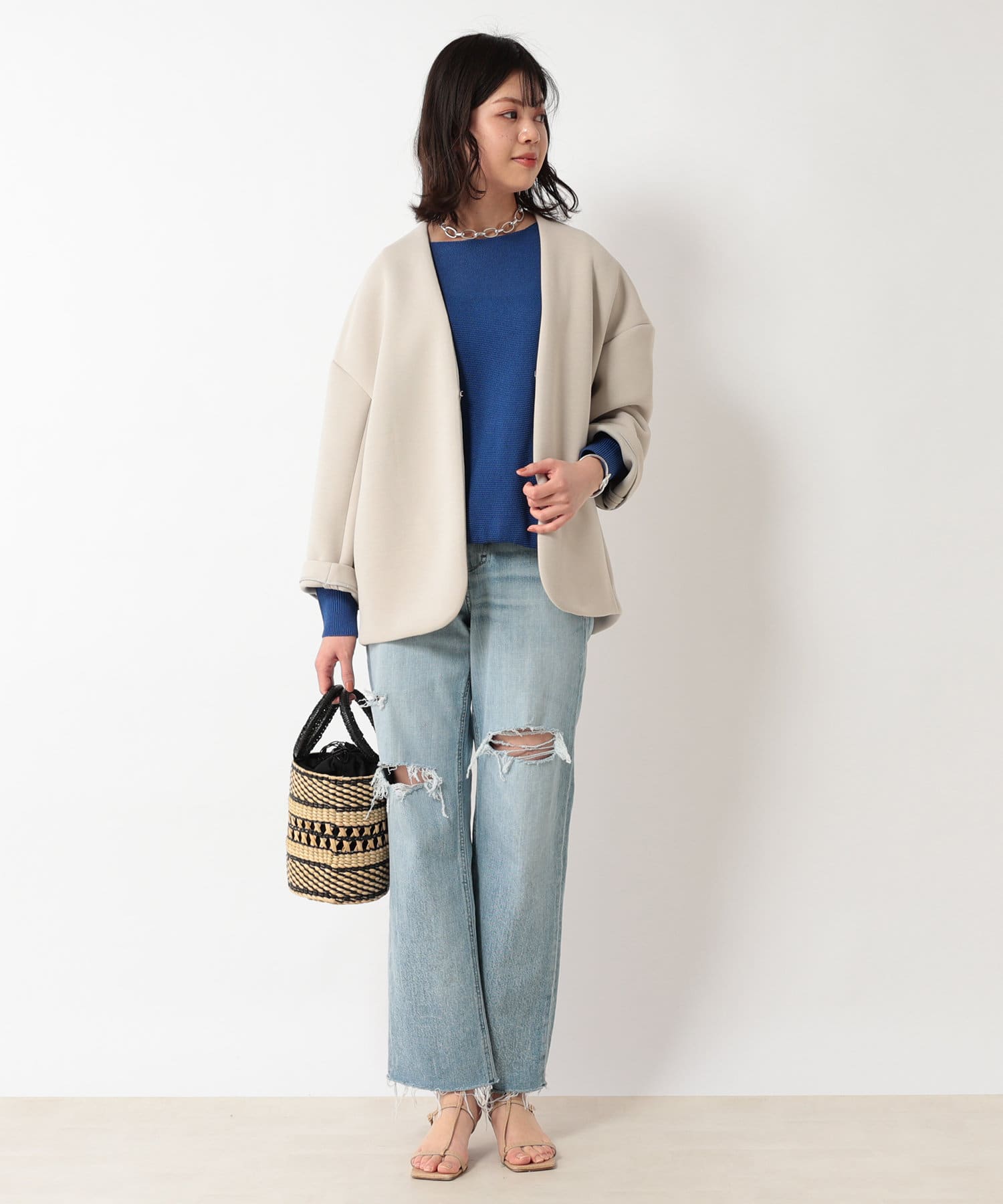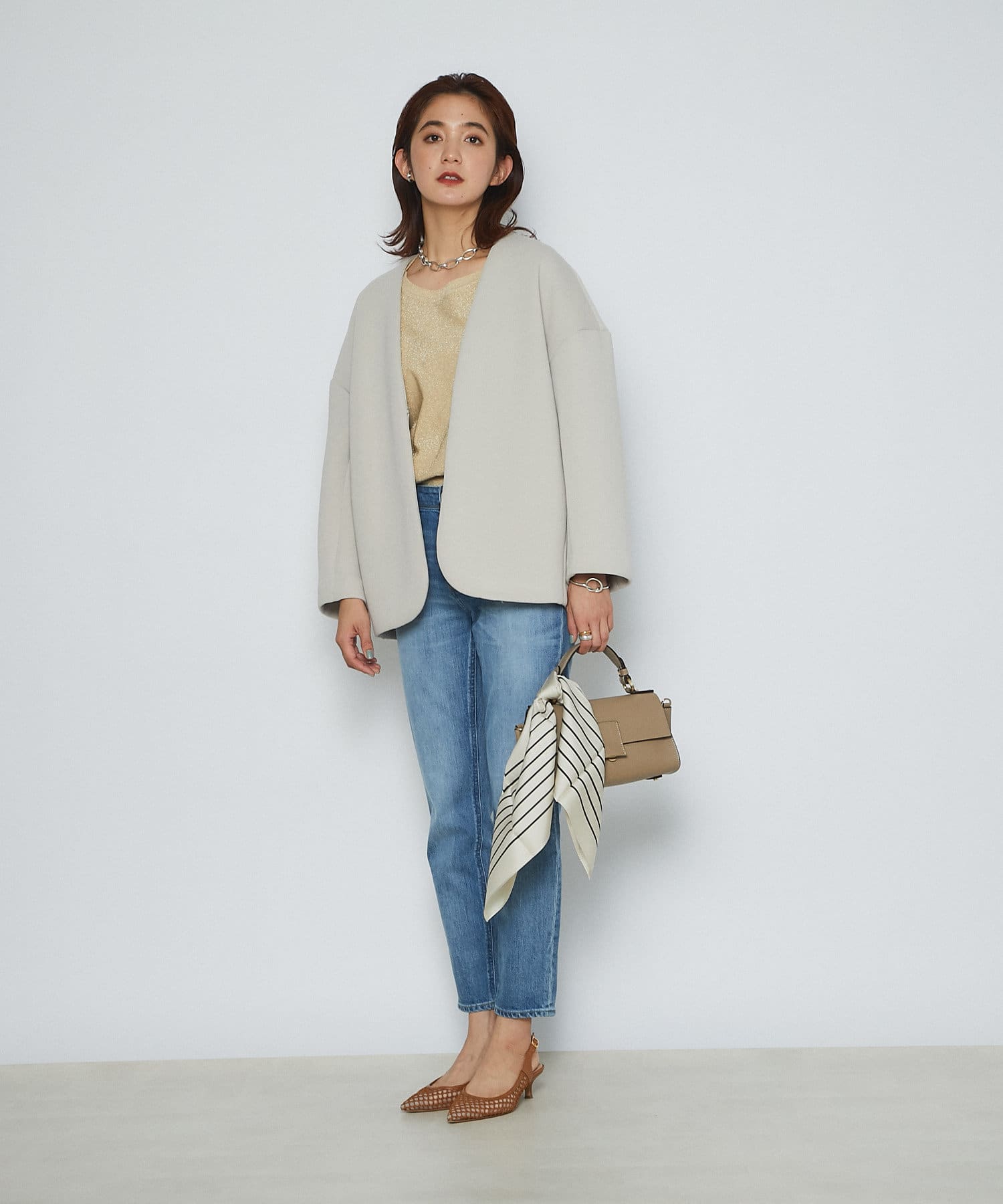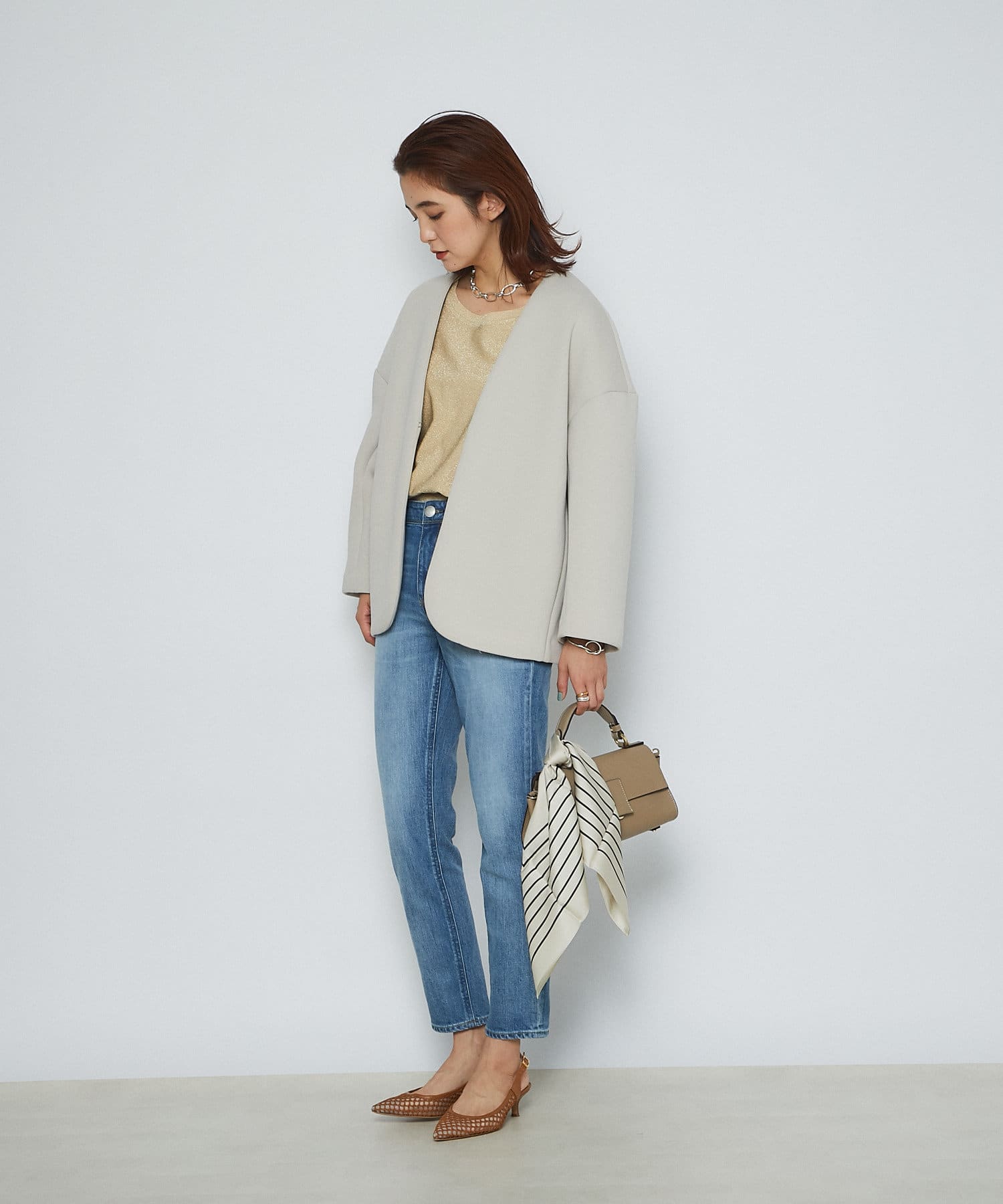 また、シンプルなデニムなどカジュアルなアイテムも品よくまとめあげてくれるため、ちょっとしたおでかけなどデイリー使いもしやすいのが嬉しいポイント。スカートに合わせるとより女性らしいフェミニンなスタイルに。様々なシーンで活躍してくれること間違いなしのアイテムです。