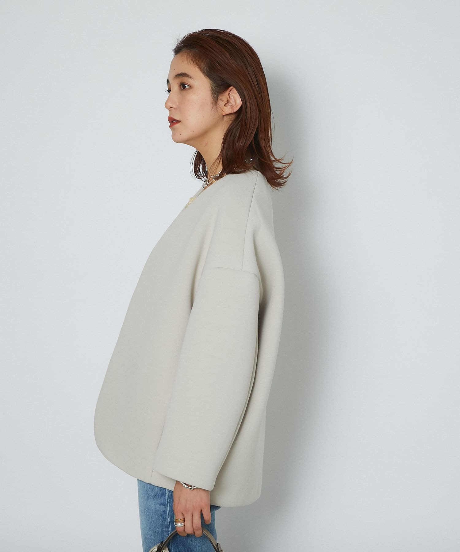 ・カーディガンよりもしっかりめ、パーカーよりきれいめ。丸みのあるシルエットも上品見え。
